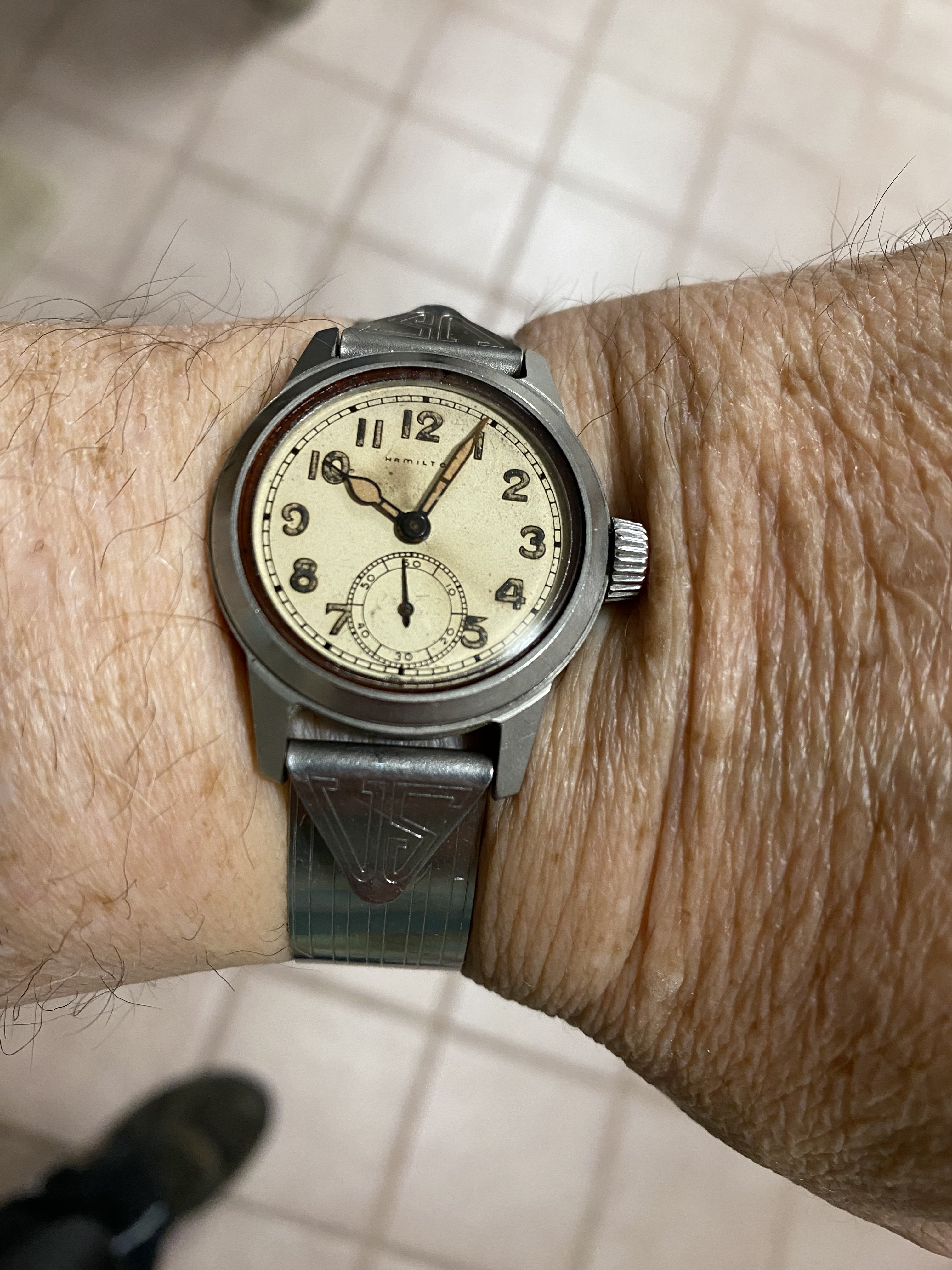 The photo shows him wearing a Albert pocket watch chain, and I can only assume he was wearing his English lever, fusee pocket watch in his pocket. This pocket watch is no longer in the family dammit! I have a pocket watch chain that was his, although it is clearly not the chain he wears in the picture. The chain I have is a Waldemar style, and being 9-karat gold, it would not be the chain he was wearing in the picture.