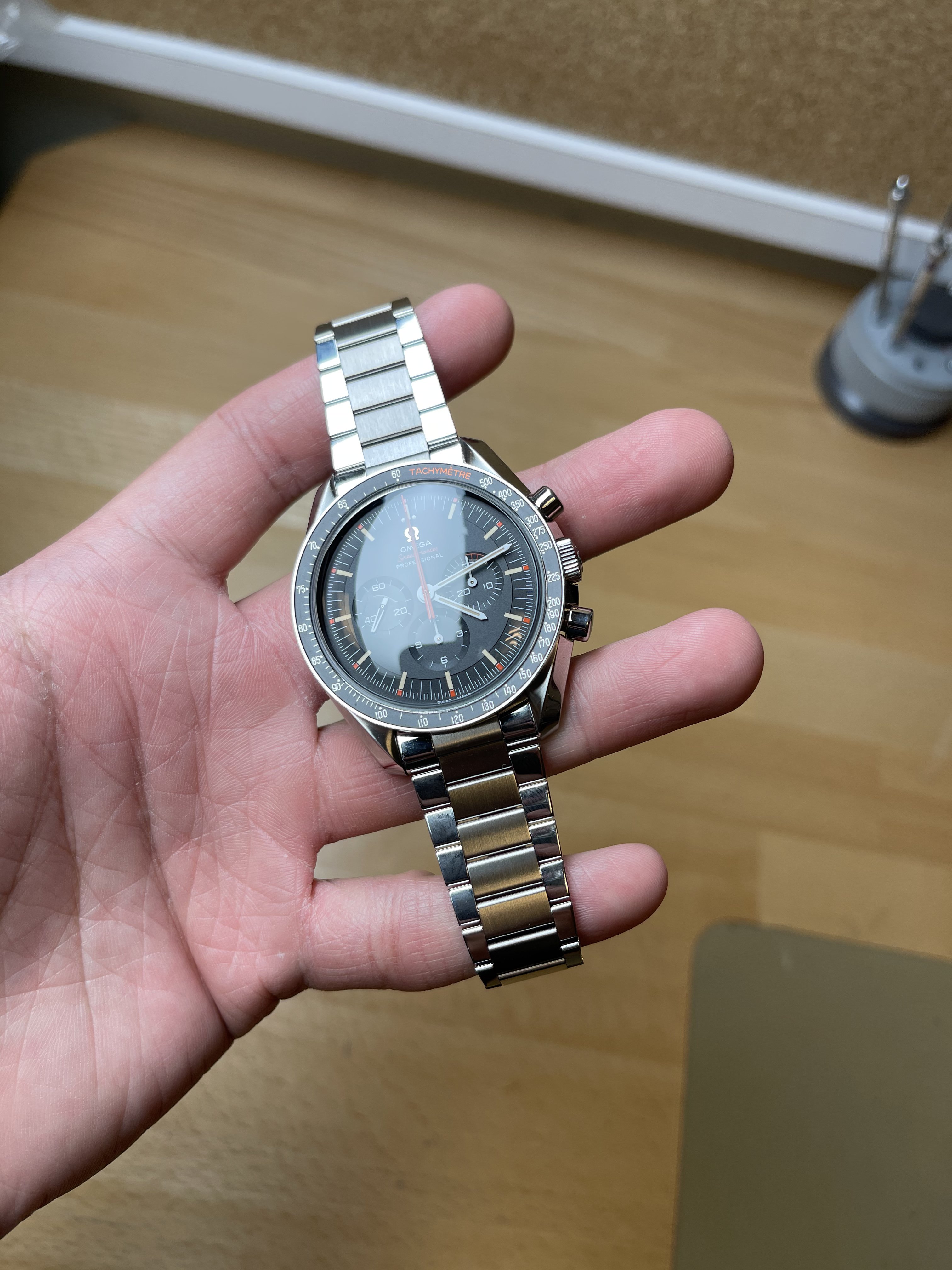 Posts 10,817 Likes 53,267 Walrus ·Jun 2, 2021 I don’t have a true moon watch just my mundane speedy date but since we are doing a moon shot (full ape) with AMC I needed to wear something with a link to space. No resist but no I don’t want AMC to hit resist at 40 anyway