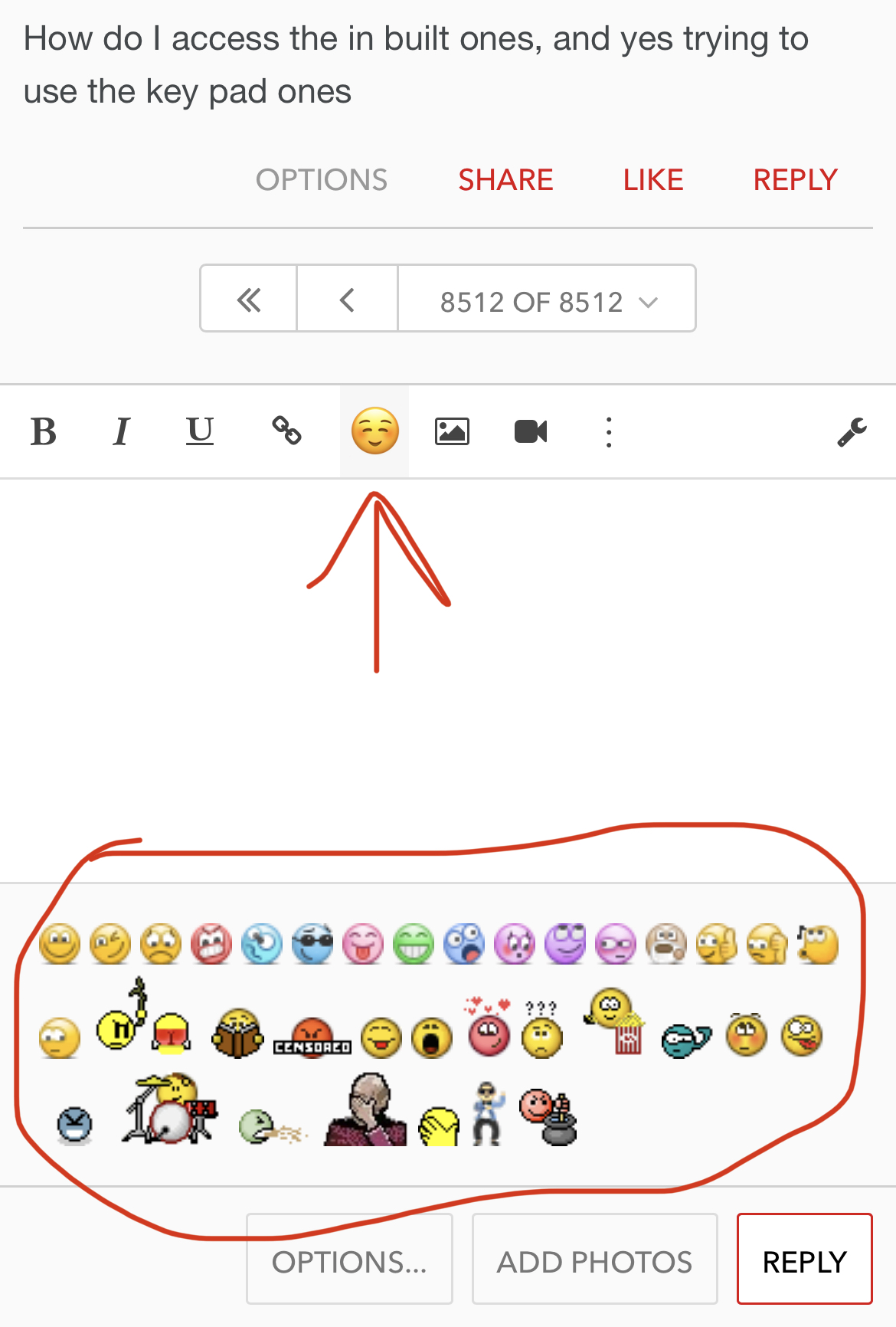 General question, why do some people get to post emoji’s but when I tap one they don’t appear?