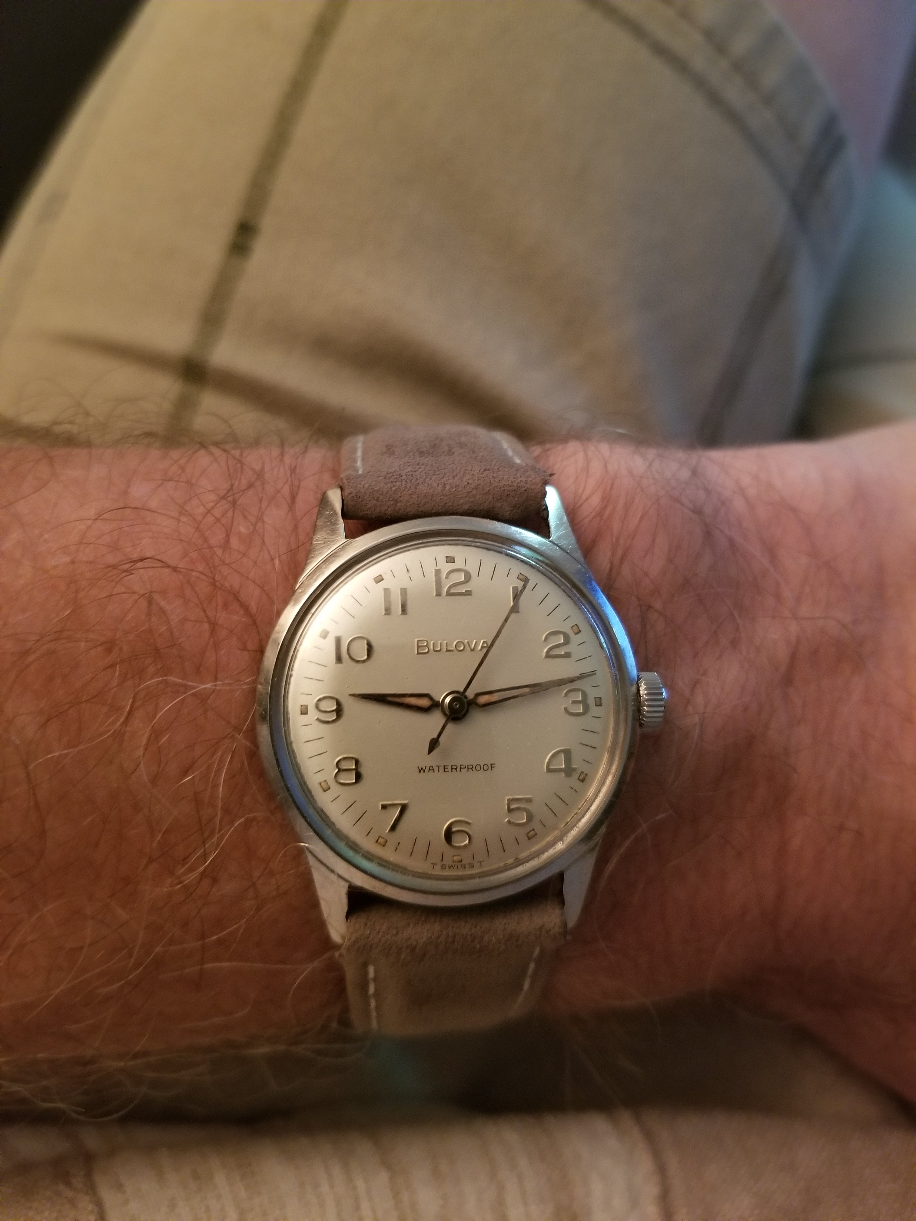 Posts 745 Likes 6,438 McKinley ·Jun 5, 2021 Manccessorizing, if you even can with a simple SS case and white dialed watch, with my little Bulova Sea King A from 1963.