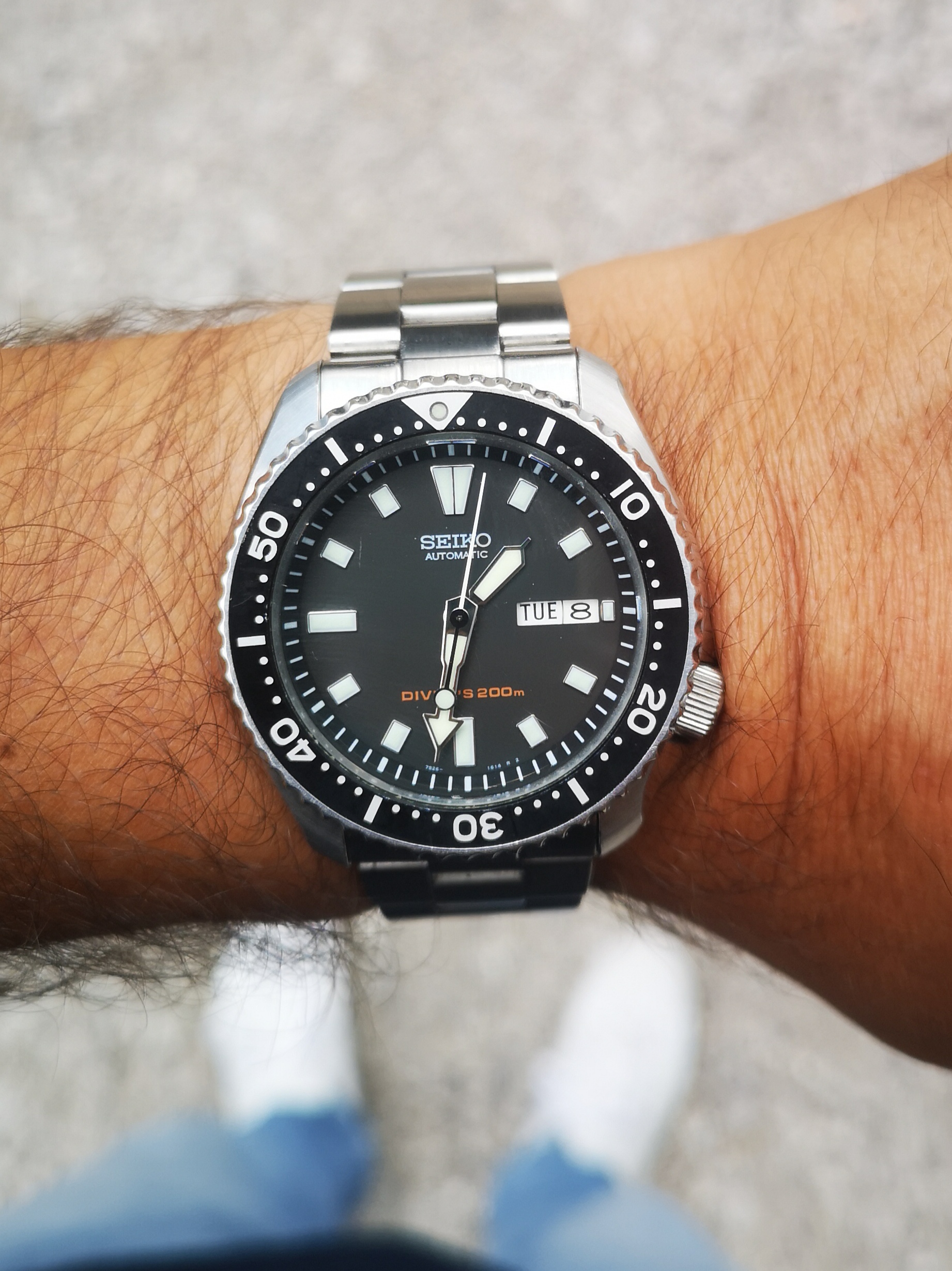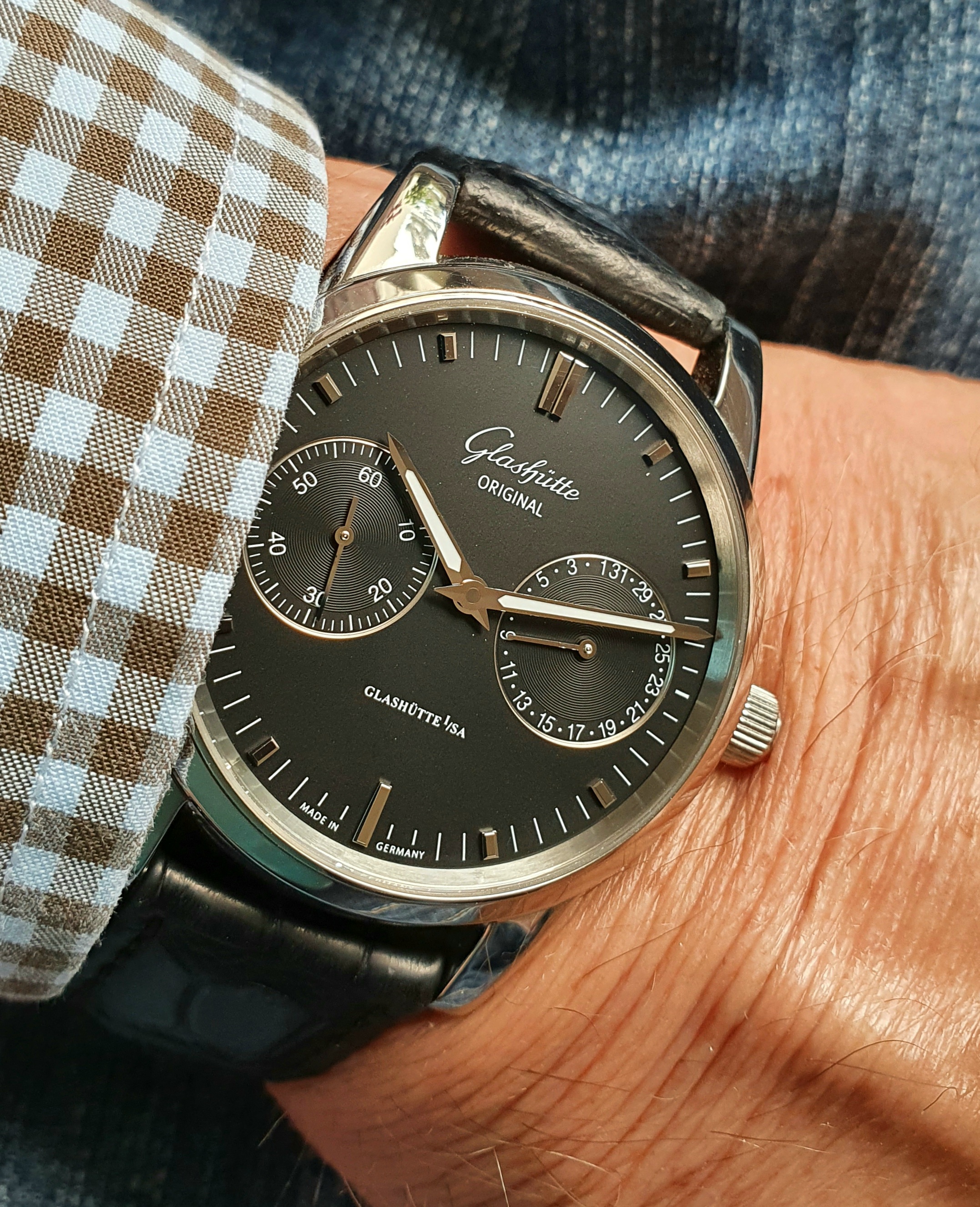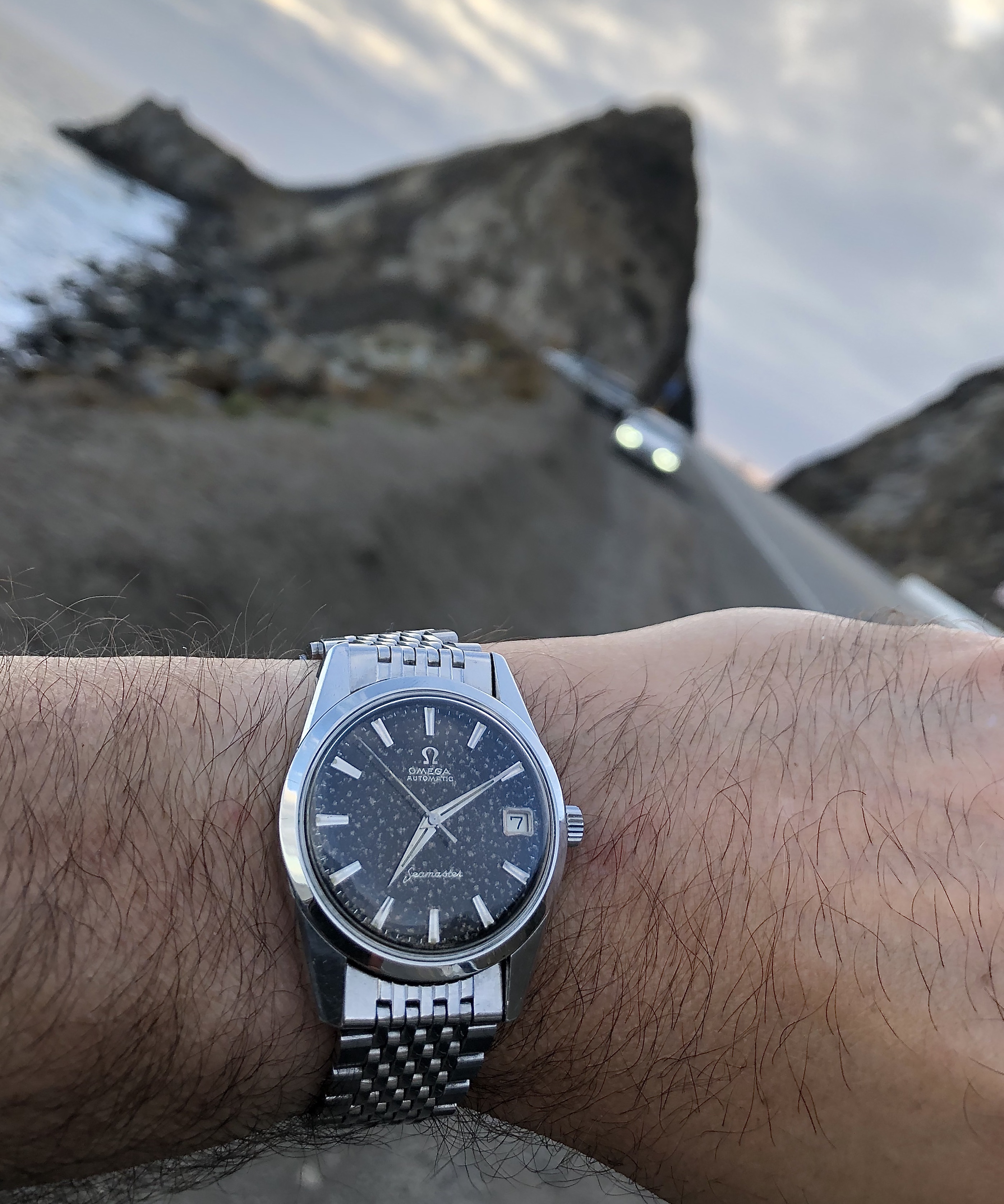 Thanks. I like the look too, but it's brushed stainless. I need to polish the dang scratch out of the crystal that only seems to show on photos (you know how it is). I'll probably polish the crystal in place, but if I lift the crystal off for any reason, I'll grab a couple of photos.