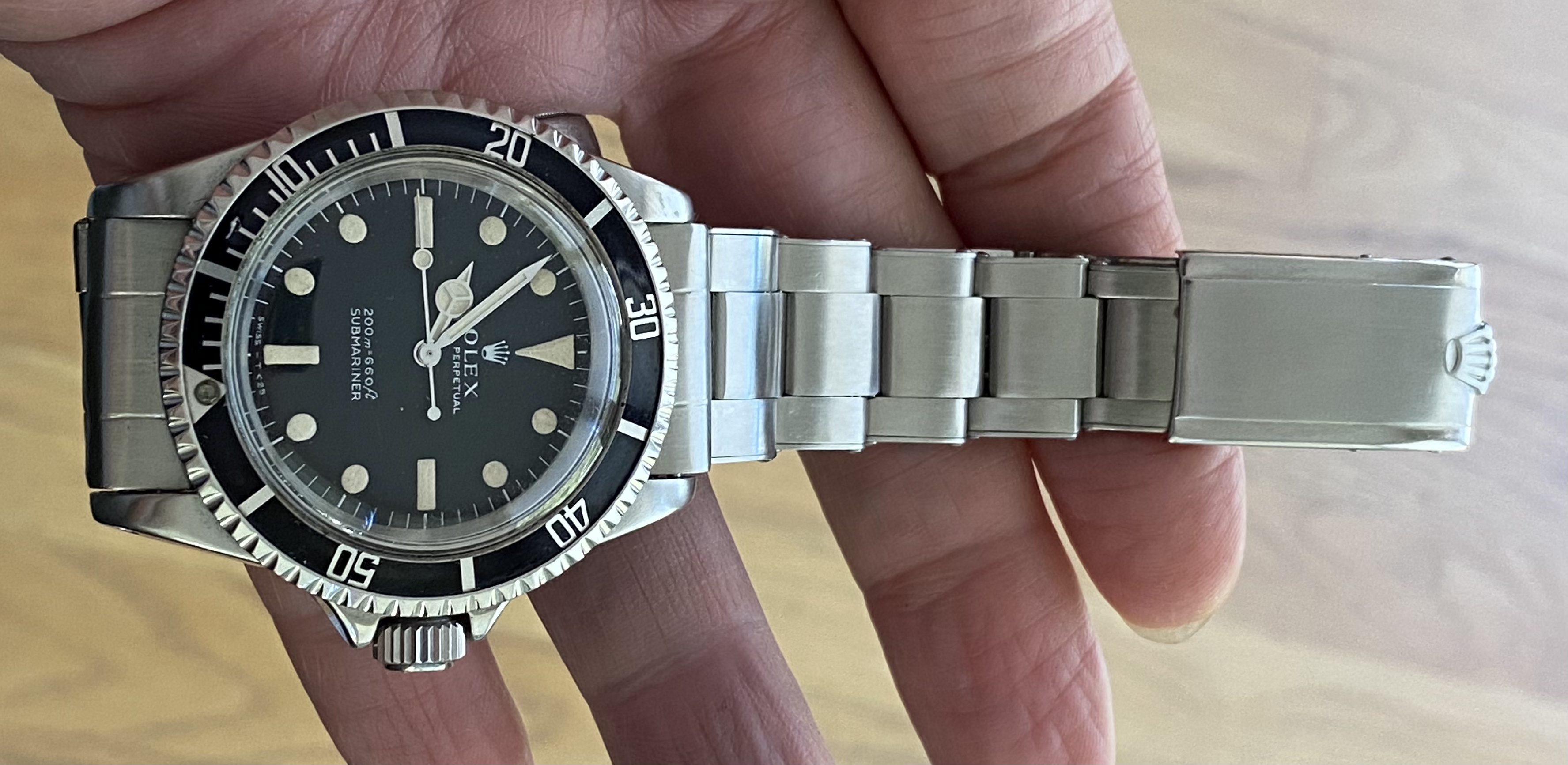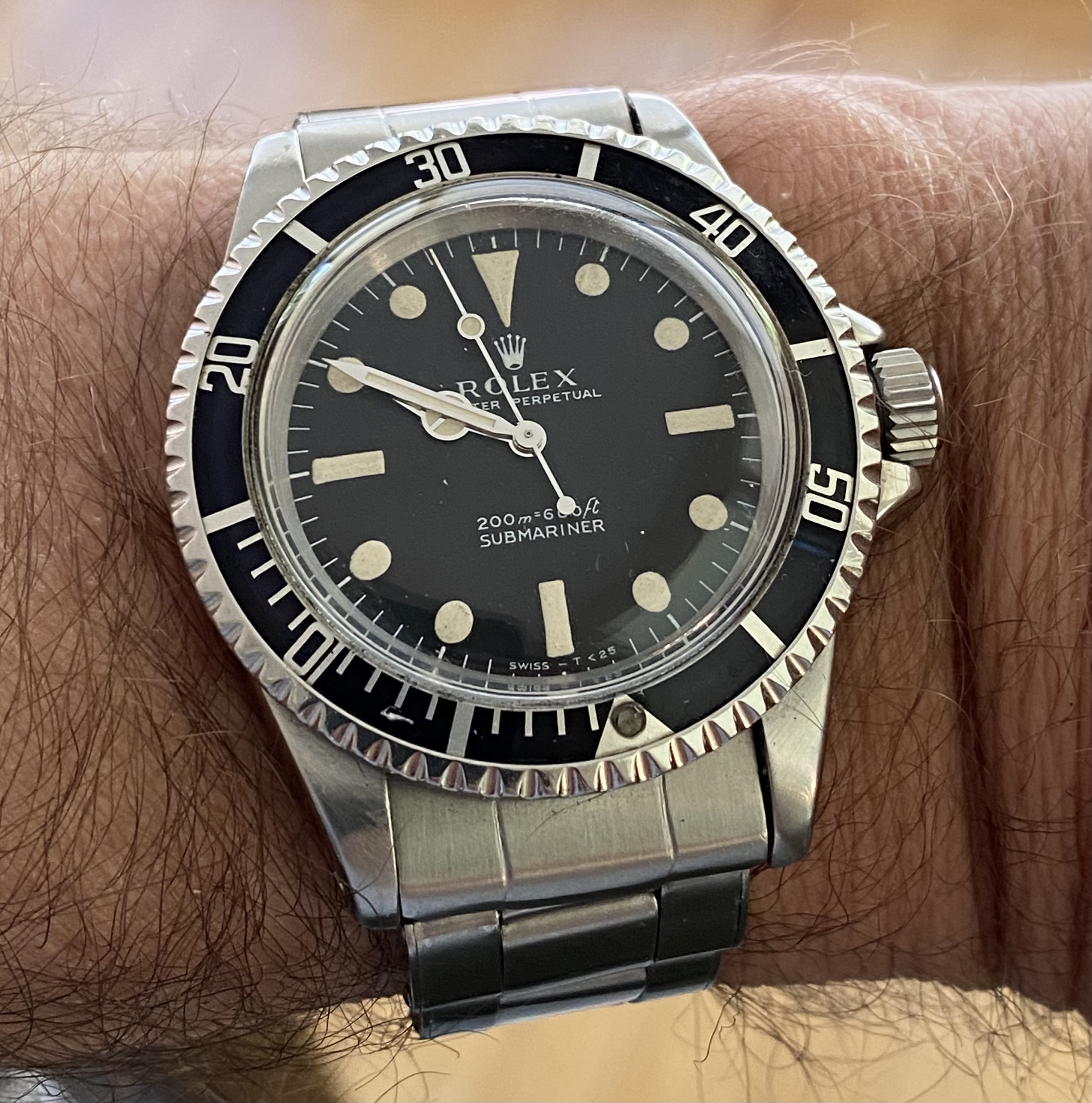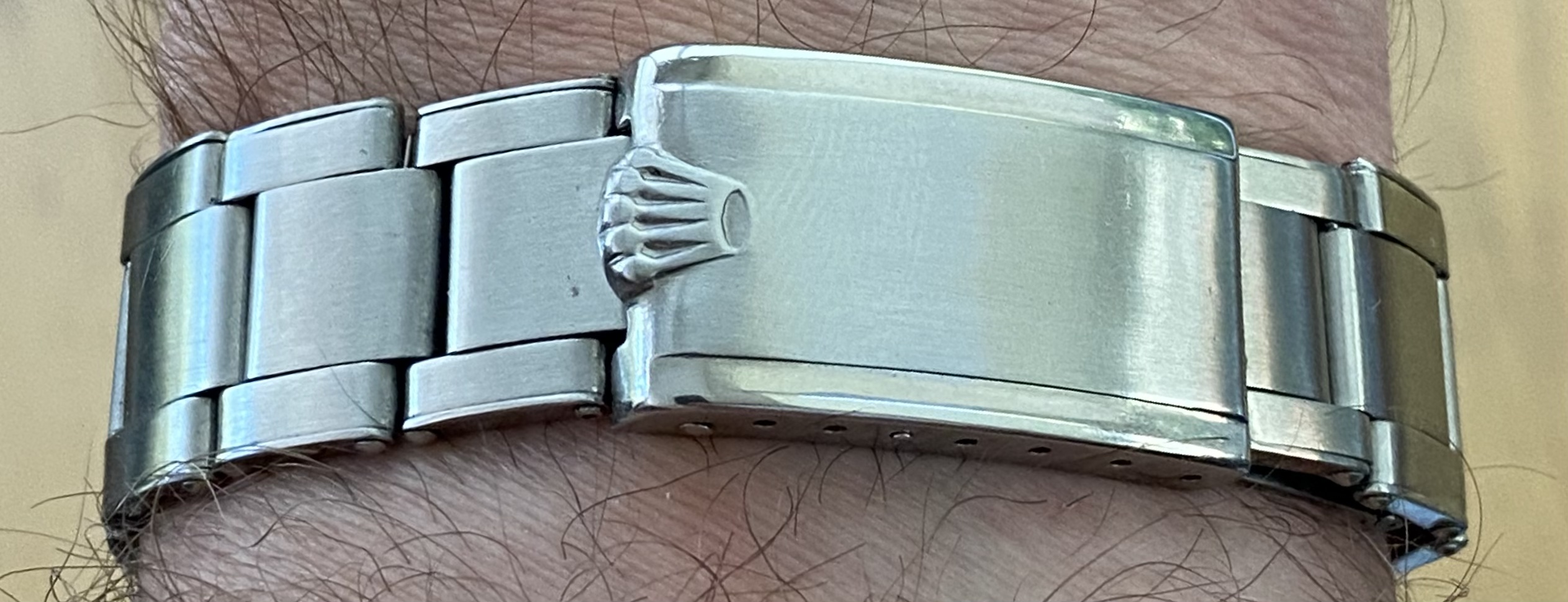 Posts 2,520 Likes 17,832 airansun ·Jun 11, 2021 Continuing my conversion to rivet, I found a very nice expanding rivet bracelet for my 5513 from IV-67. The bracelet is marked 1-67. I call this my cooking watch, as I wear it when I’m preparing food. Sometimes, like today, it’ll stay on my wrist for most of the day. These 60’s Rolexes are my proof that Rolex used to know how to design a beautiful, graceful watch, unspoiled by excess of any sort.