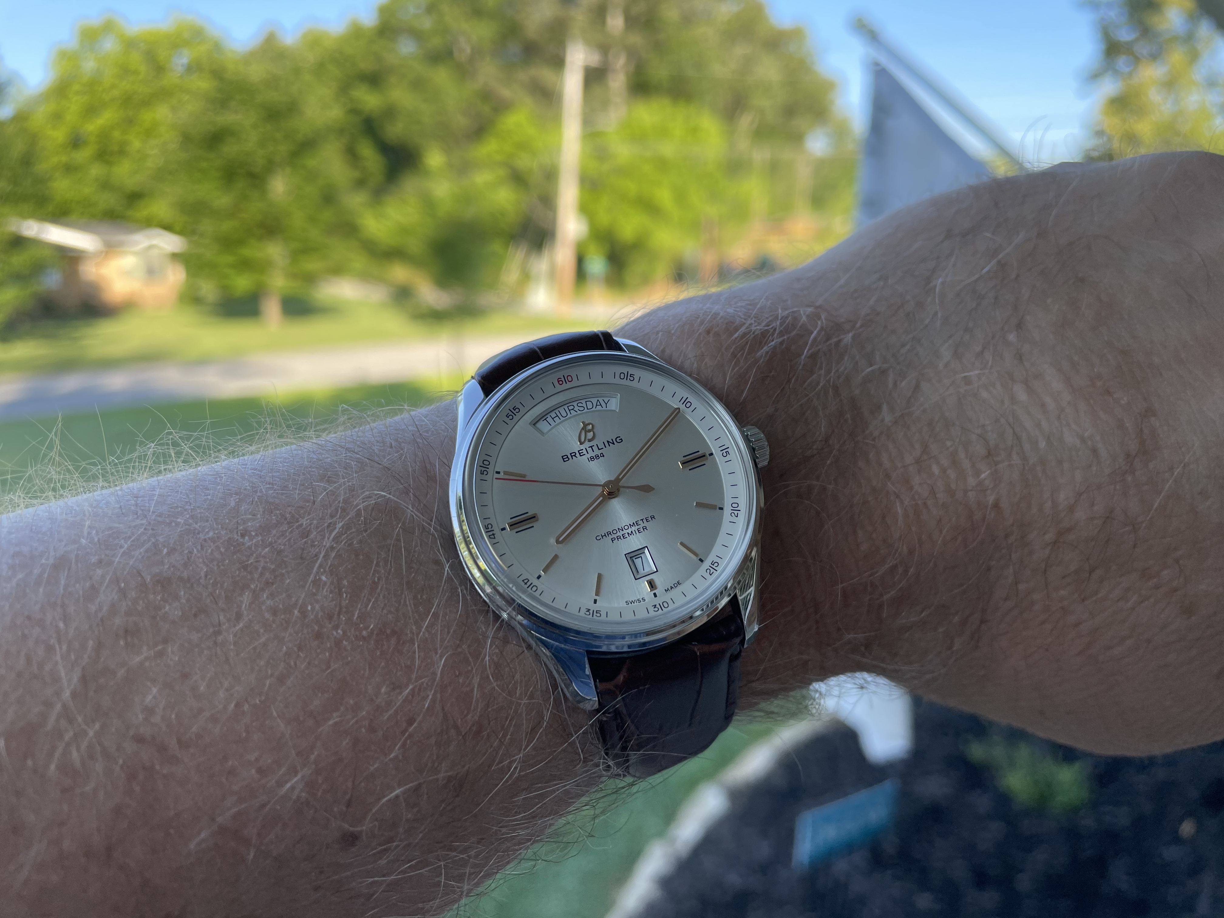 C Posts 1,579 Likes 15,222 ChiefMark ·Jun 17, 2021 Breitling today. I think I like this model for being the black sheep of the lineup. It’s a poor man’s day-date. 😜