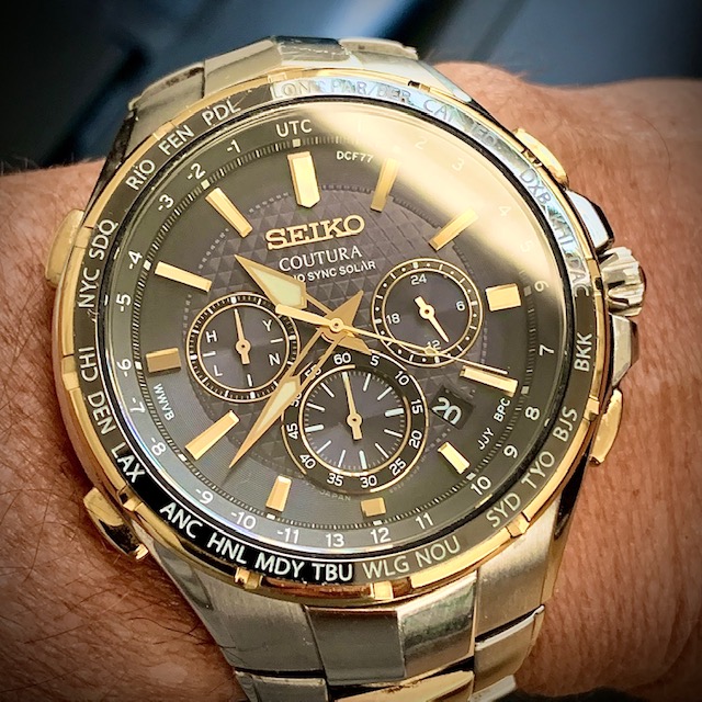 Objectively speaking, this watch is a bit of a monstrosity at 46mm+ and is something I would never choose for myself. But my Dad absolutely loved this watch and loved talking about its techiness: solar-charged, radio-synced, etc. And my Dad was one of the original techies. He was the first in his family to leave the four-generation farmstead and go to University, eventually earning a doctorate degree. He worked for much of his career in the defense industry, but not on the engineering side: he worked initially in contract management and then became adept at running and programming the room-sized computers that were used in the 60s and 70s. He programmed in COBOL and FORTRAN. I remember when he took me on a tour of one of his computer installations and pointed out a hard disk drive that could store up to 1-Megabyte of data! (less than the storage requirement of a single iPhone image), and the whole apparatus was the size of a washing machine.