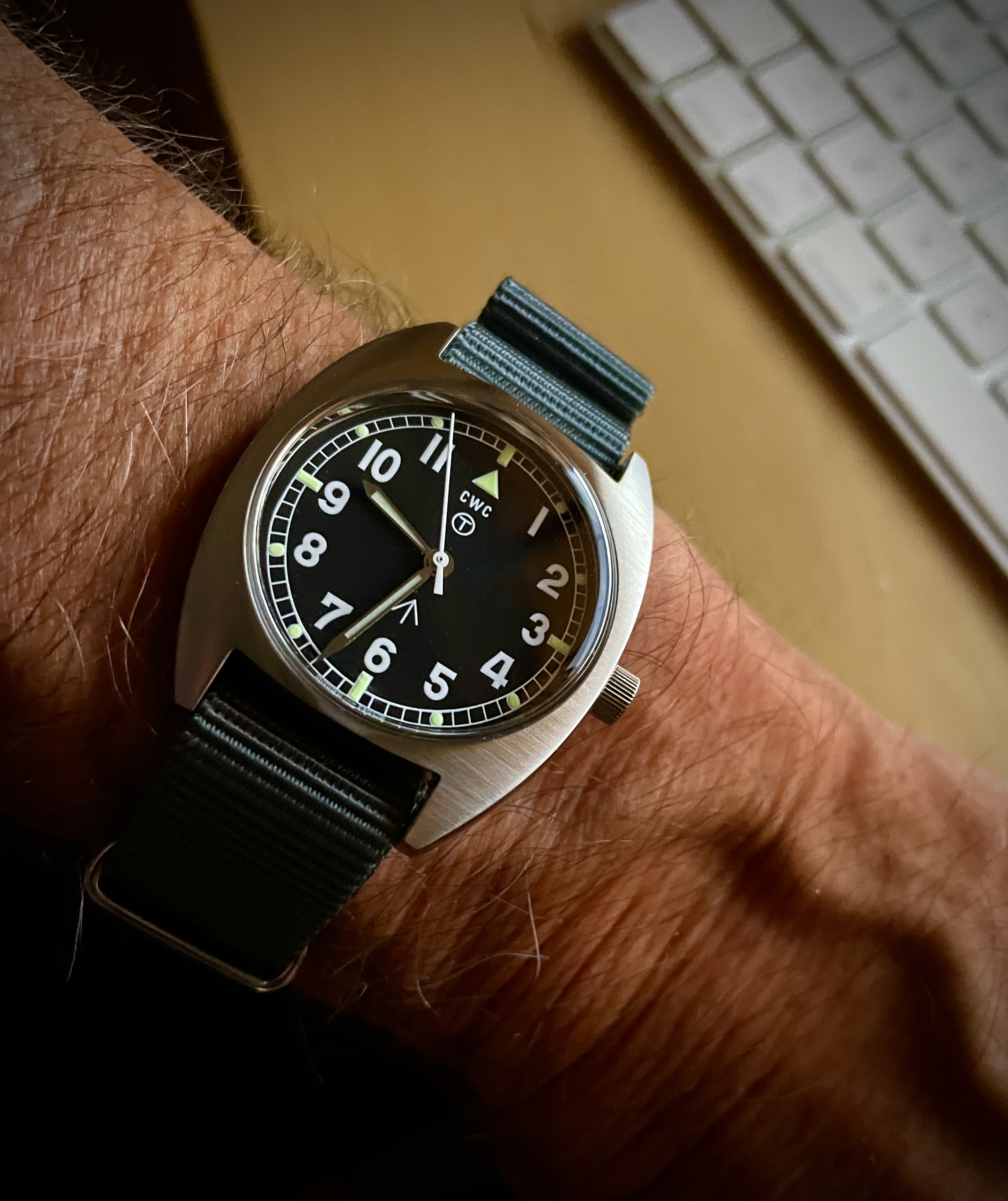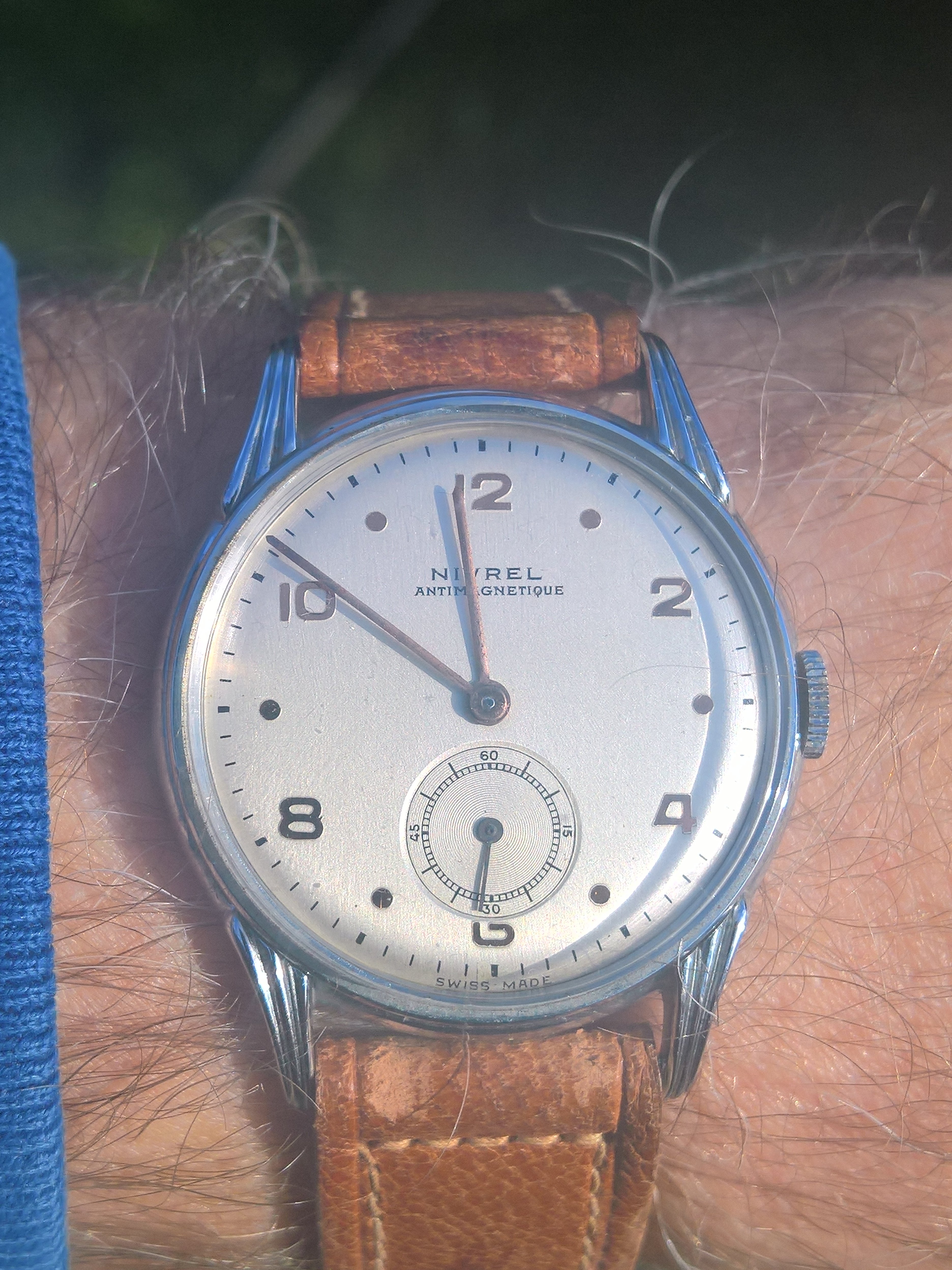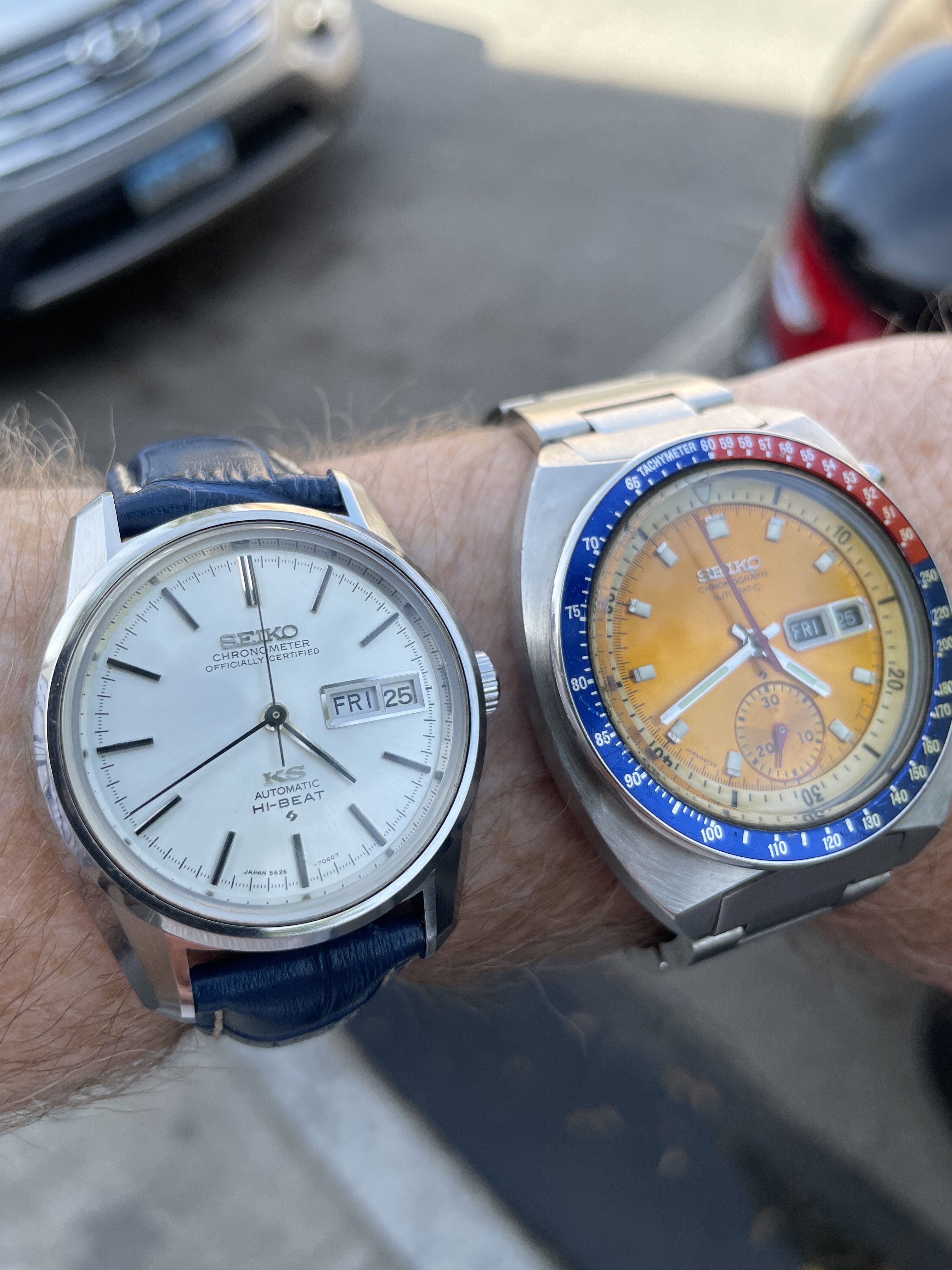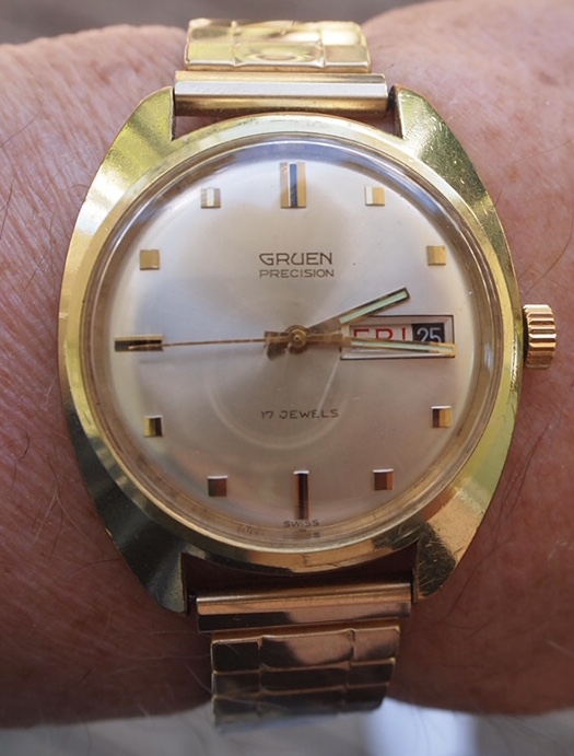Back from camping, and parked the “sacrificial” Seiko until the next time. Back to collectible watches. I haven’t shown this one for a while. My late ‘60s Gruen day/date. Unique in a way, in that it has a manually wound movement, not an automatic as might be expected. This one I retrieved from the bottom of a musty box full of detritus. I’m glad I found it.
