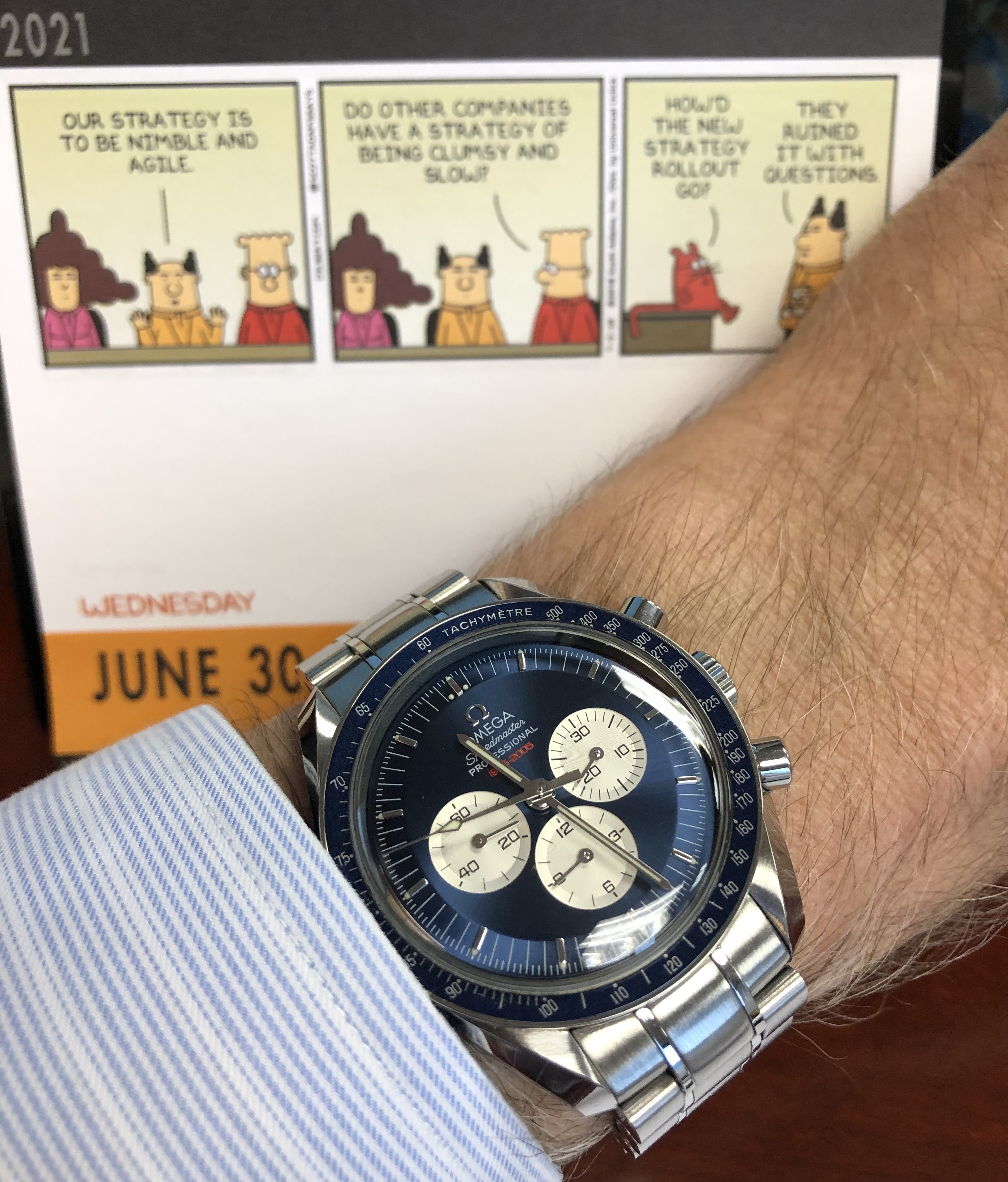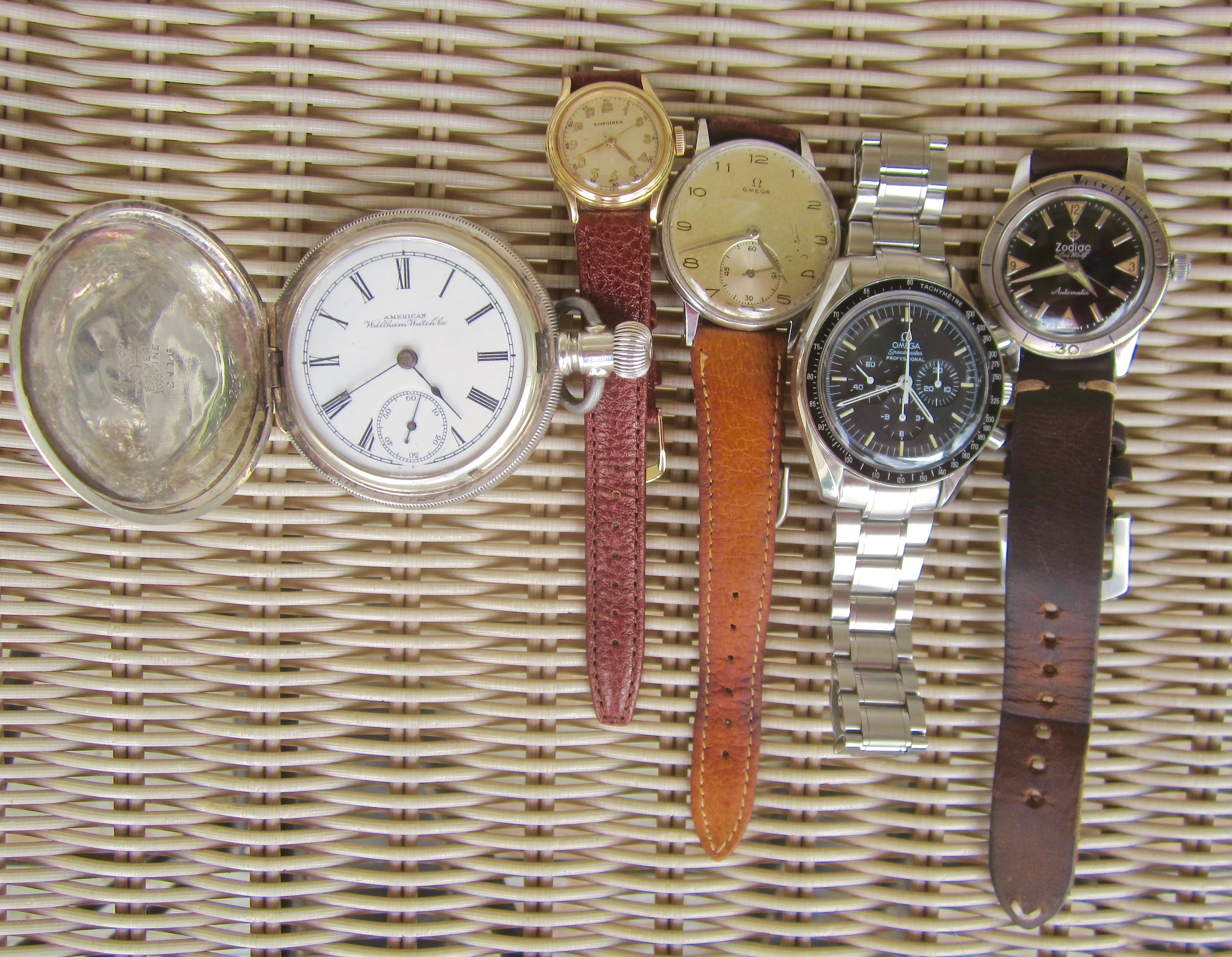 Look-y! A batch of watch favorites are back from scheduled servicing. Was delivered yesterday, but had already donned the Zodiac. So, its Speedy Wednesday here and with a relatively rare appearence on its bracelet for summer in Texas.