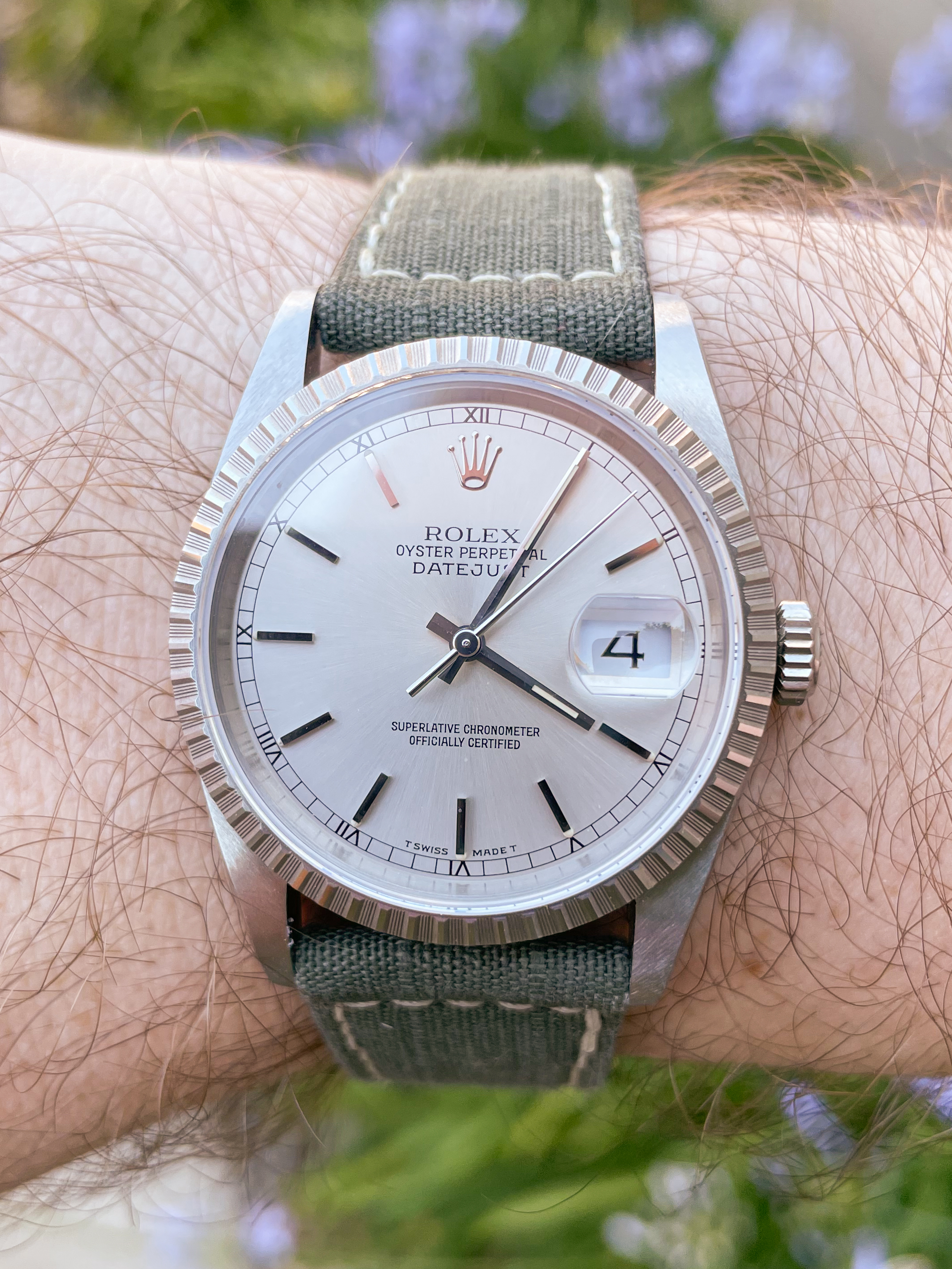 Yes it is. Indoors out of direct sunlight it often looks black or very dark grey. And in direct sunlight outside the dial is a beautiful lush but matte green. The matte is a nice contrast to the polished white gold hour markers
