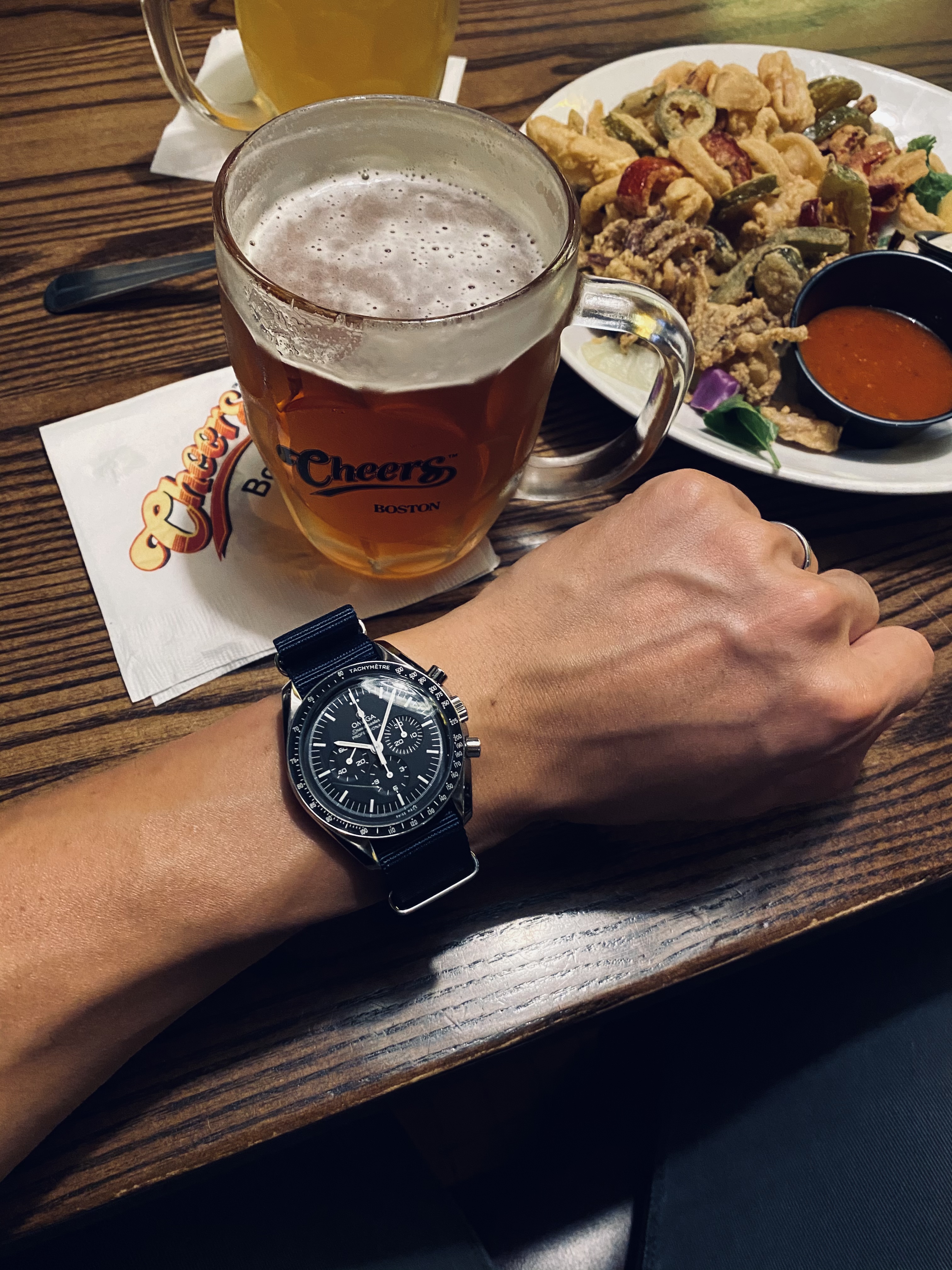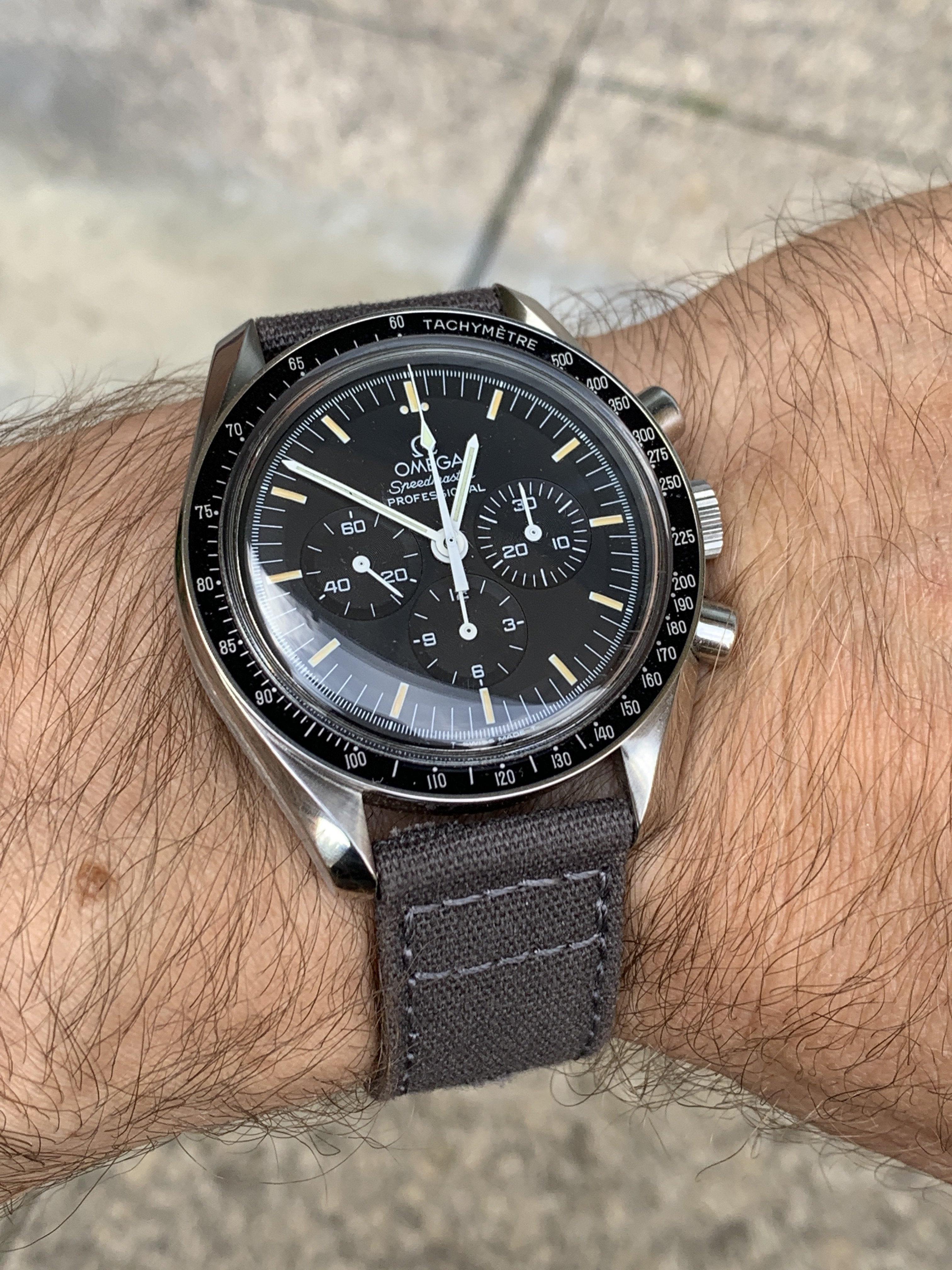 As heatwave continues, rare outing of Speedmaster on fabric strap. full disclosure - I wear it just because today is only +25C and windy. Otherwise I鈥檇 have diver.