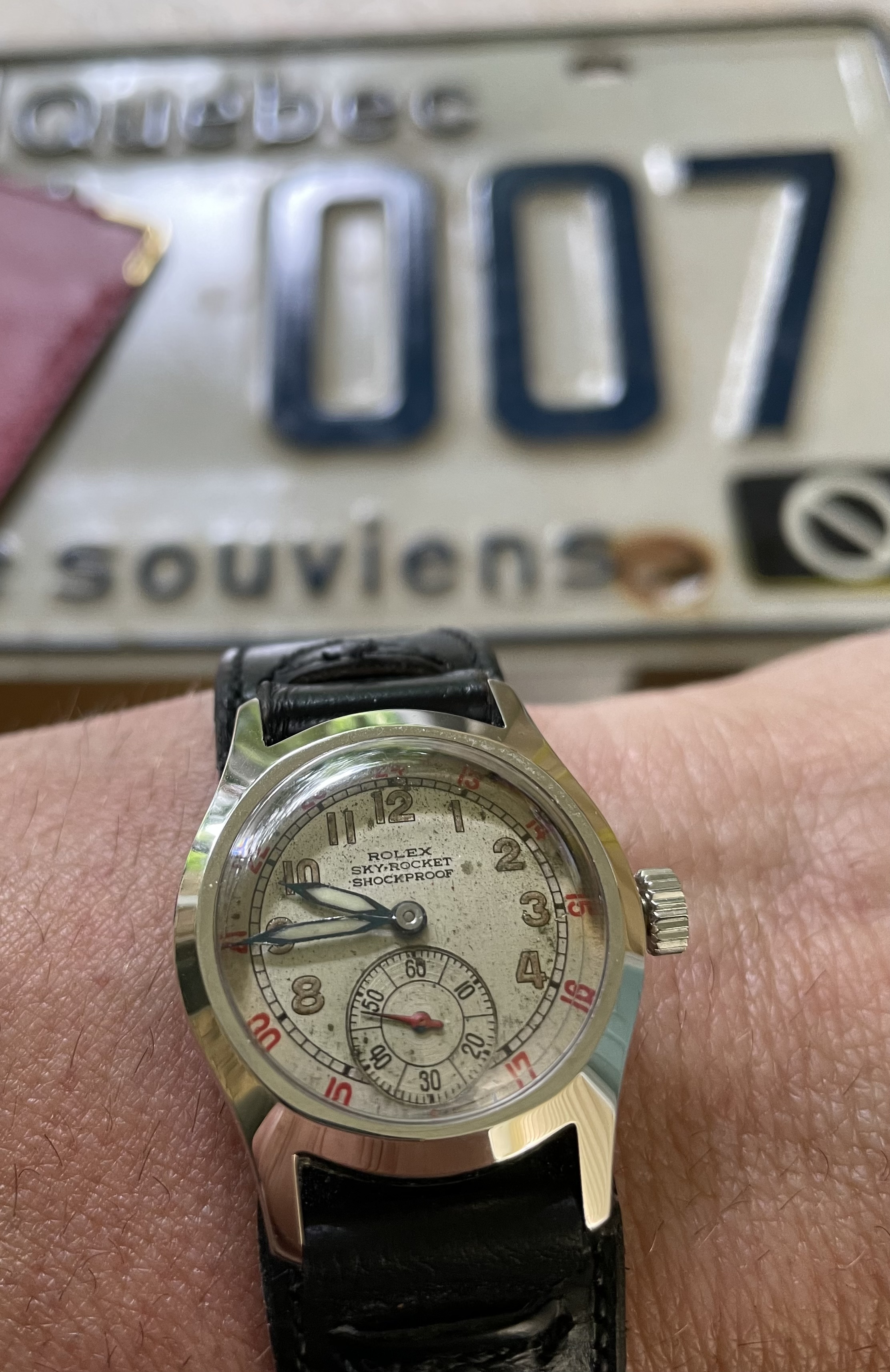My Rolex Royalite Observatory (chronometer, circa mid 1940s) sends salutations. Adjusted to 6 positions, temperature, isochronism, Oyster case, manually wound. About the same vintage as your Skyrocket.
