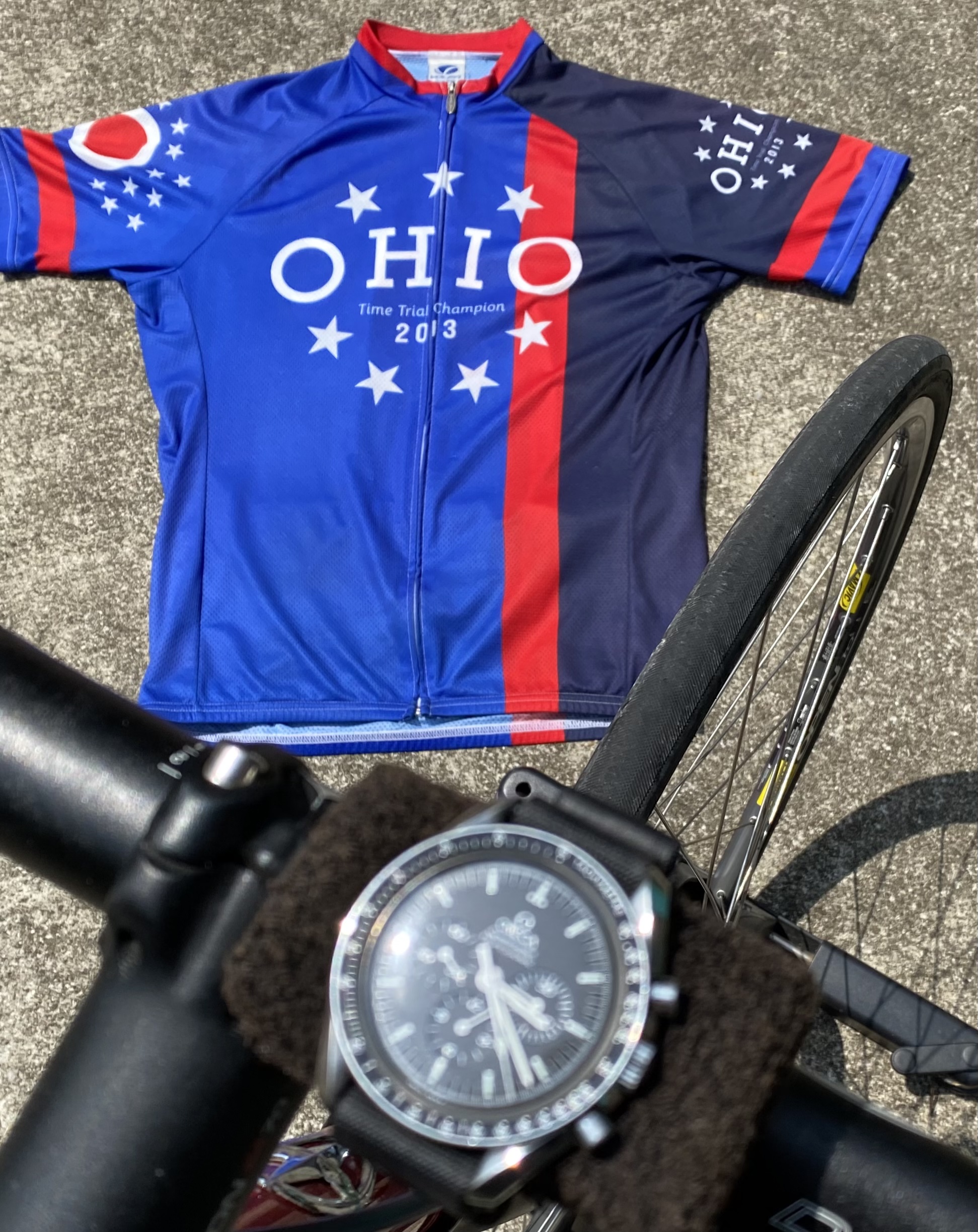 Speedy Thursday! Once again using the old 1861 to time a +50 minute effort on my old Schwinn Sprint fixed gear time trial bike today. Also, wore my old Ohio time trial state championship jersey today since I won the jersey riding my old Schwinn Sprint fixed gear…and the TDF is going on…