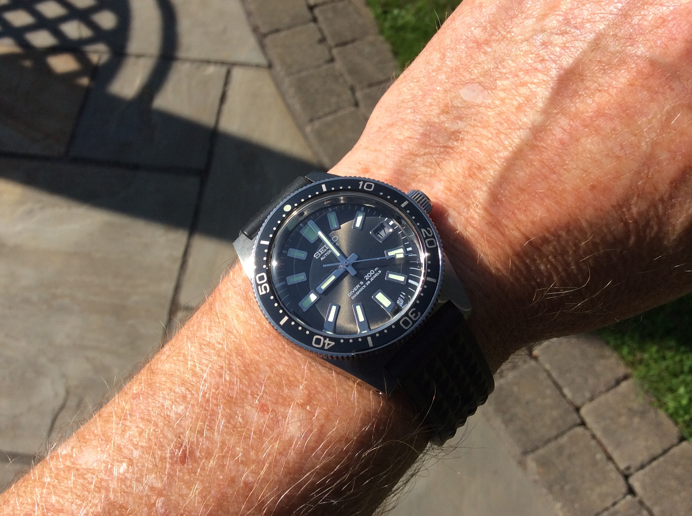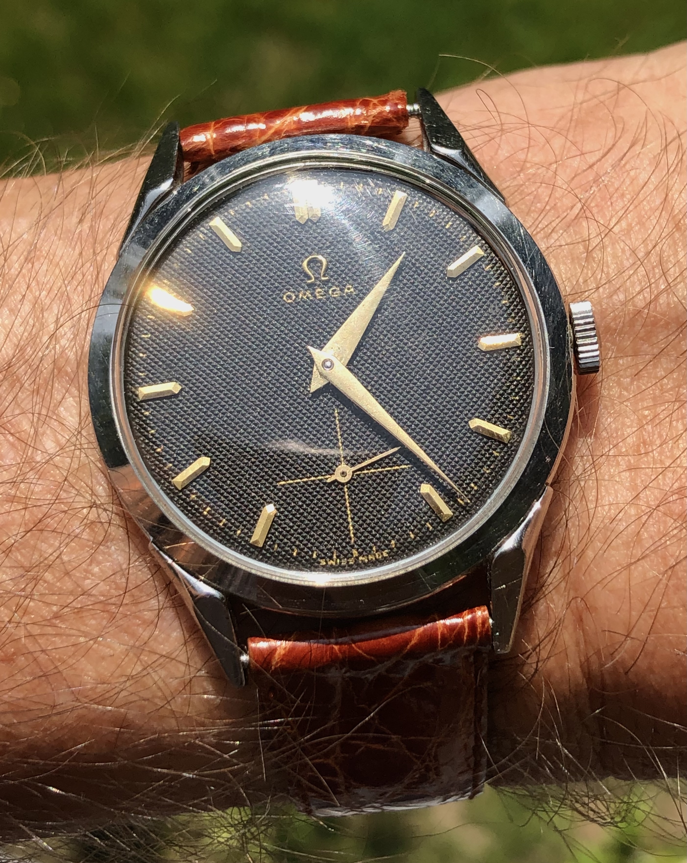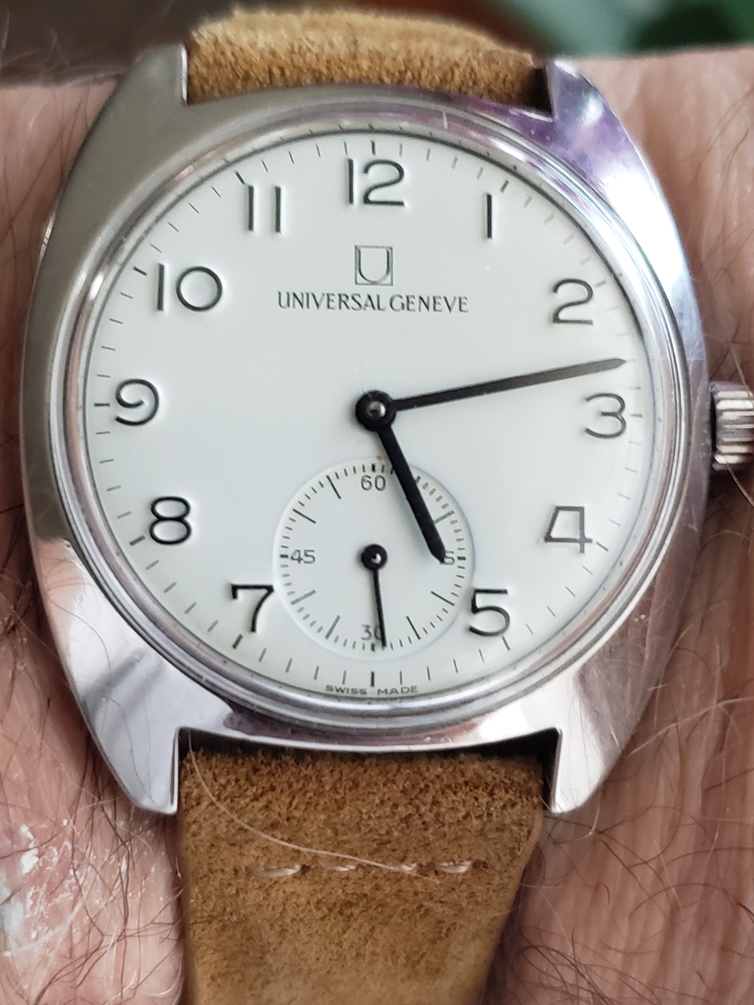 Down by my lap and way underexposed as you can see by the darkness of my wrist and background. WRUW material! The POLM with it’s reflective dial luvs this type of exposure, by the way.