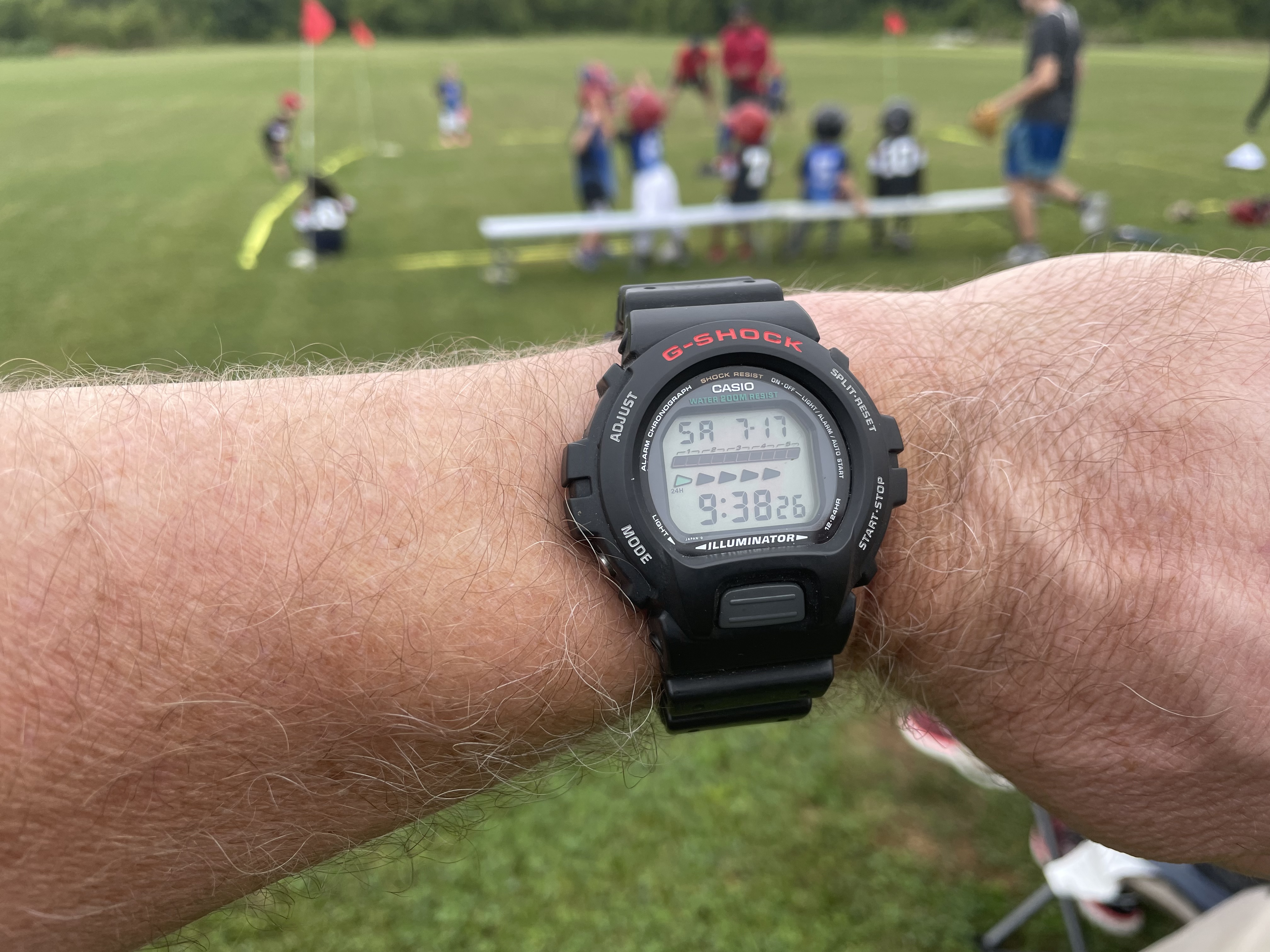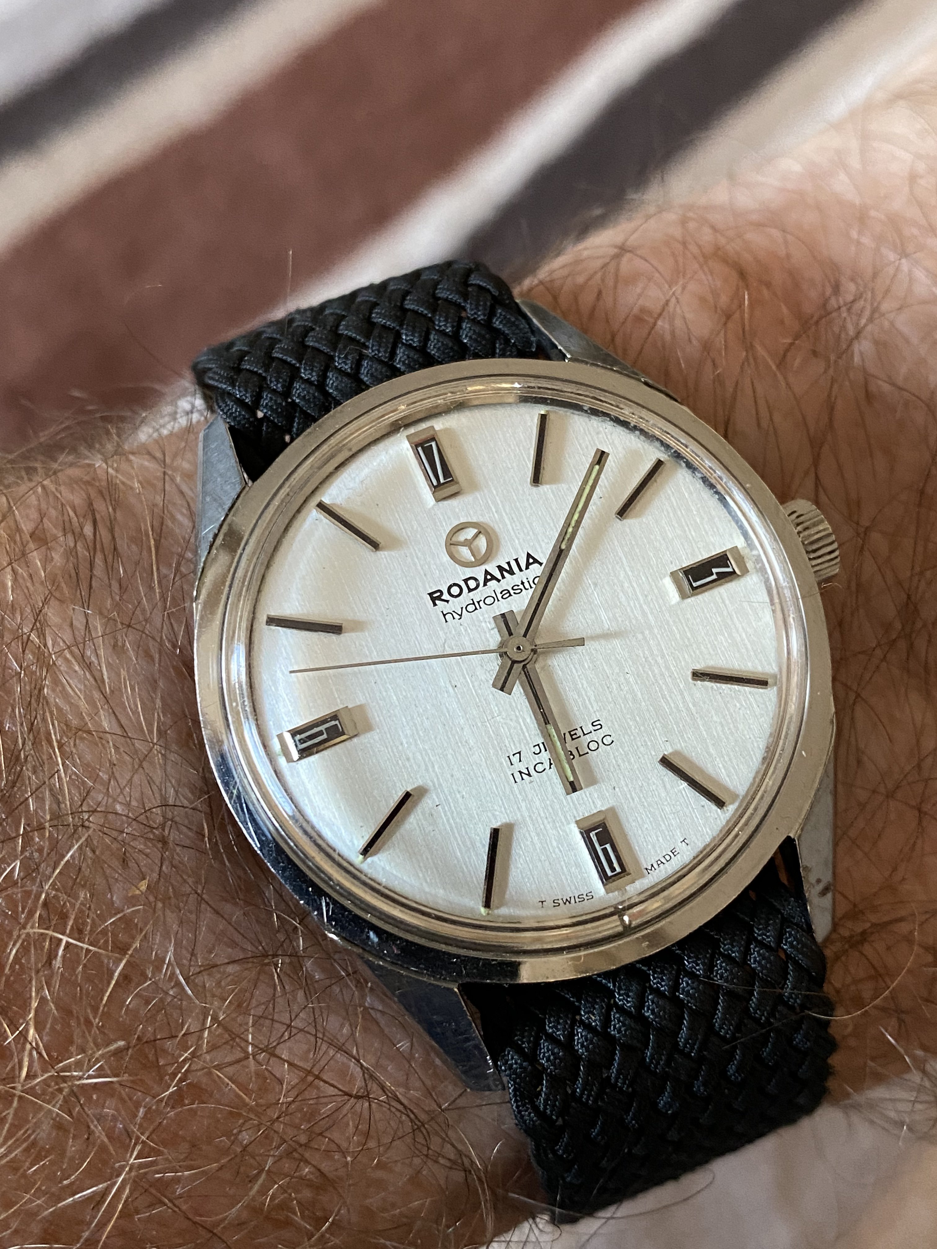rushing to get ready for work…no harm done to the watch or the tile….just an exclamation from Mrs P who was in another room and rushed in to see what got broken (this has happened expensively in the past)