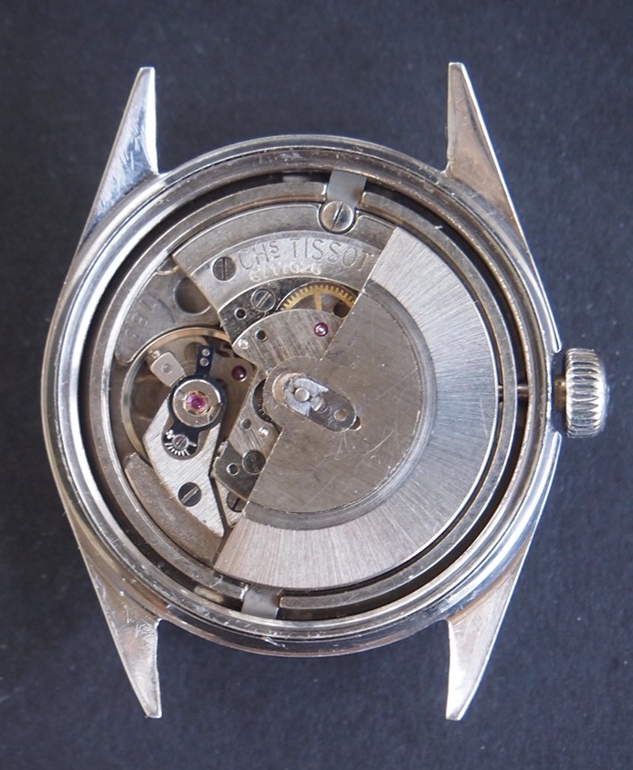But while I was rummaging, I happened upon a Tissot automatic parts watch I’d forgotten I had. I knew of another Tissot in my stash as well. The one pictured was without a calendar, balance complete and balance cock gone, along with the auto wind mechanism. The other was a calendar model, complete, except it needs calendar pieces which are unavailable anywhere. 90% of the parts of these movements are completely interchangeable.