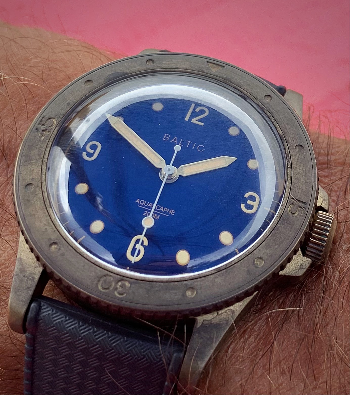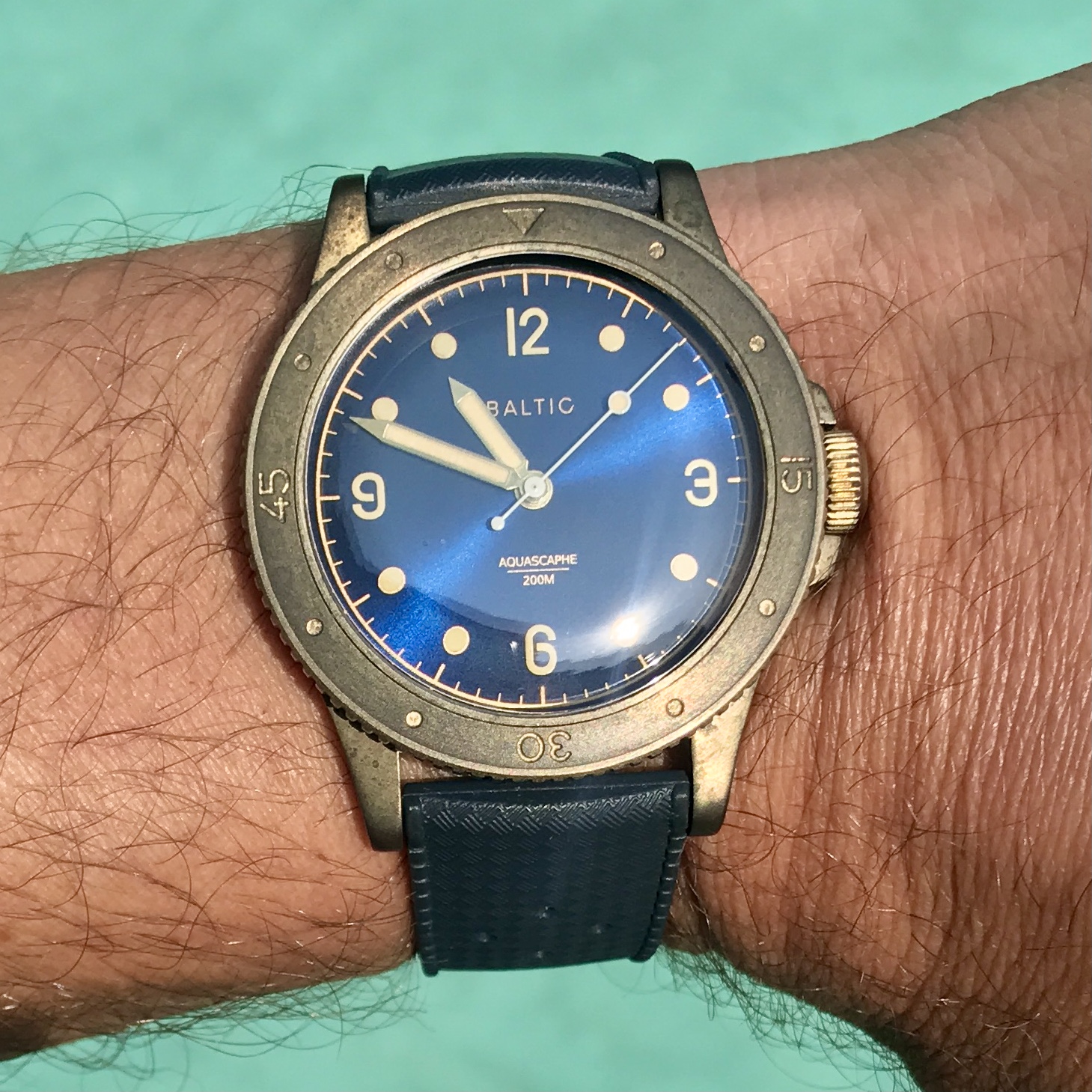 I’ve been traveling back-and-forth to where he lived, but I did take my bike, and one watch; I got in a nice ride with the first sweat proof watch of mine that caught my eye as I hurriedly packed, but this Aquascaphe is pretty darn photogenic in the right light…
