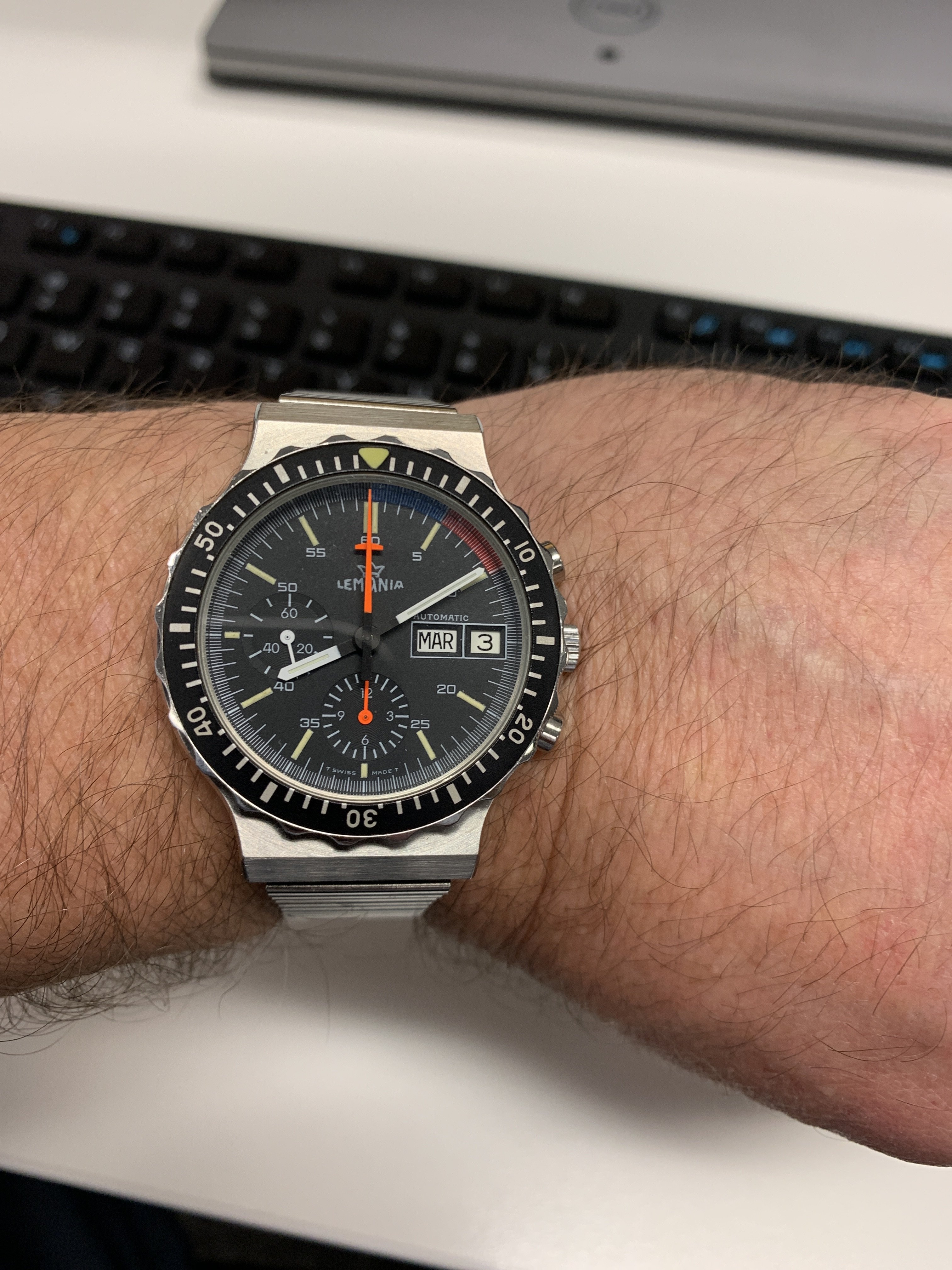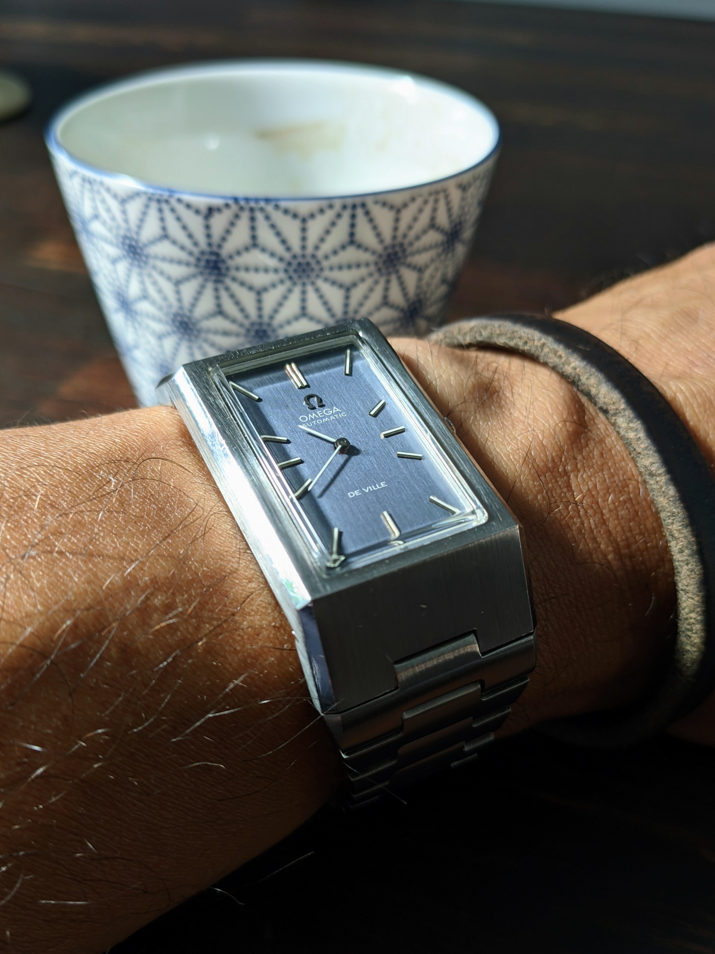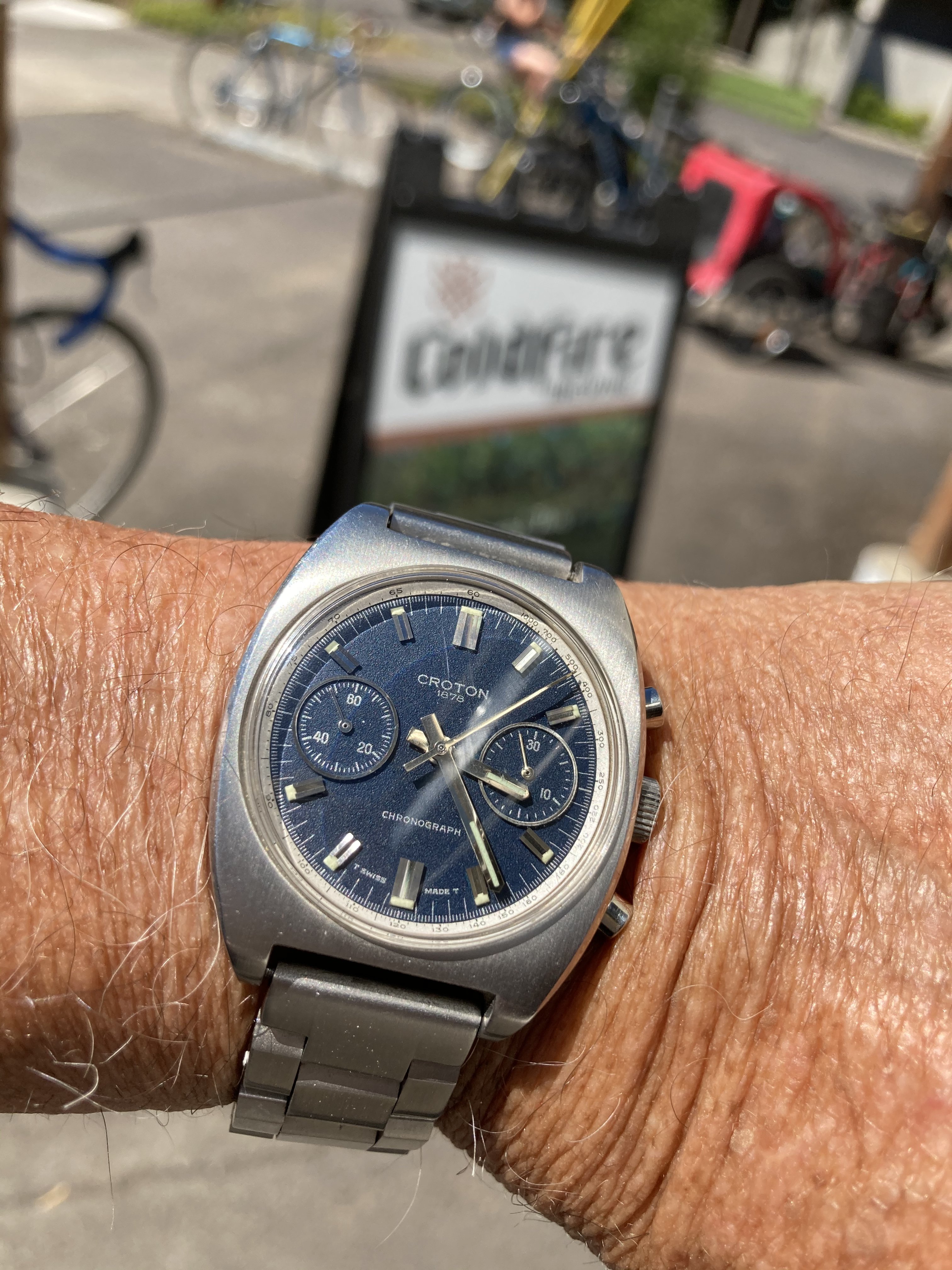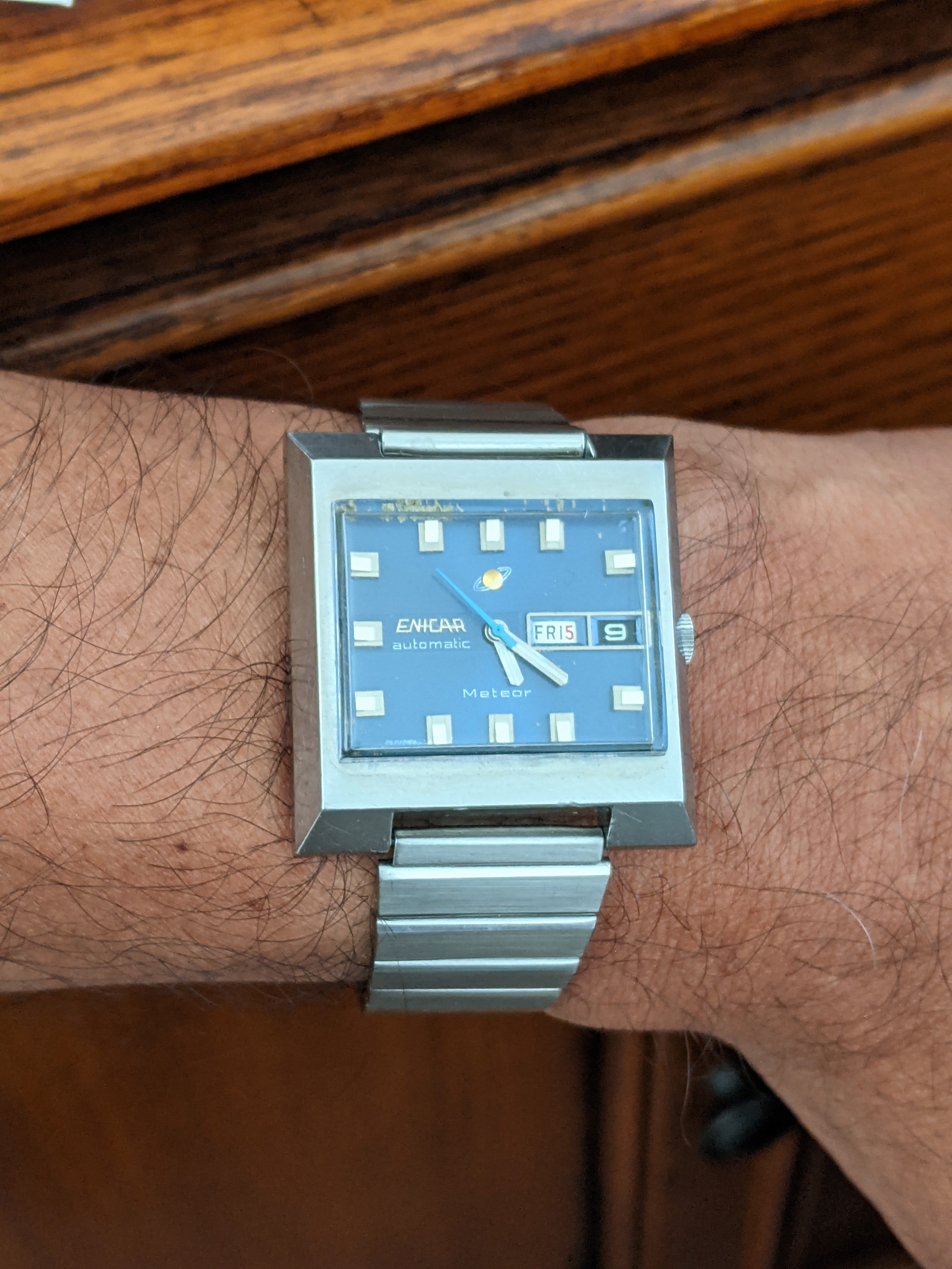 This funky 70s enicar today... Love that silky blue dial, some blemishes on the edge notwithstanding