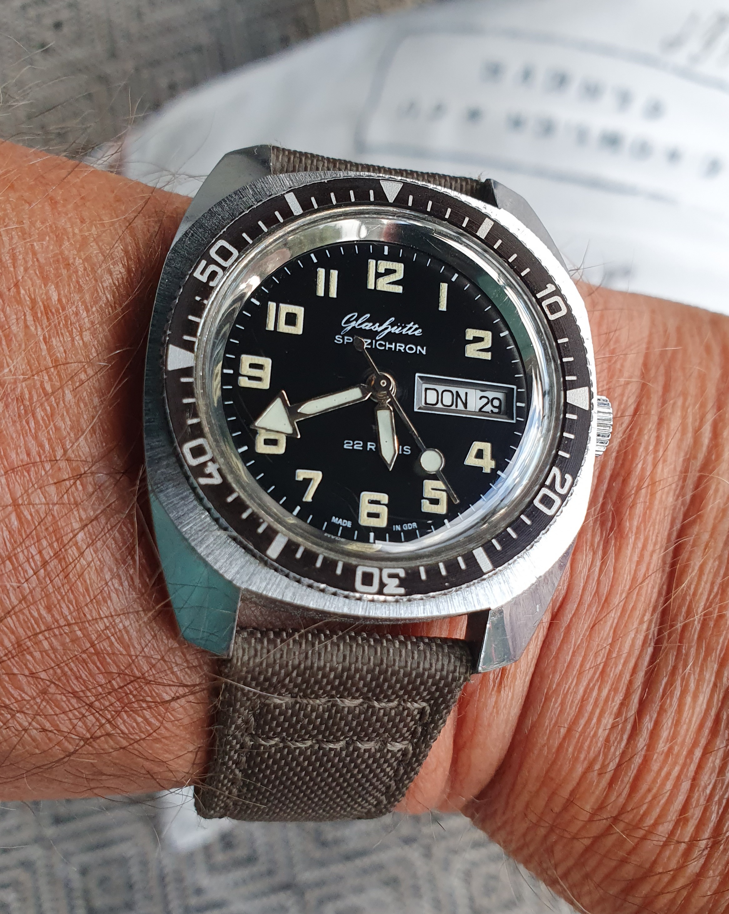 I really like this watch. Want to put it back on leather as it I think it it makes the dial pop but I’ve been saying that for six months and have yet to do it. These are very well made nice looking watches and when first released I think you could get them a little under 300 usd.]