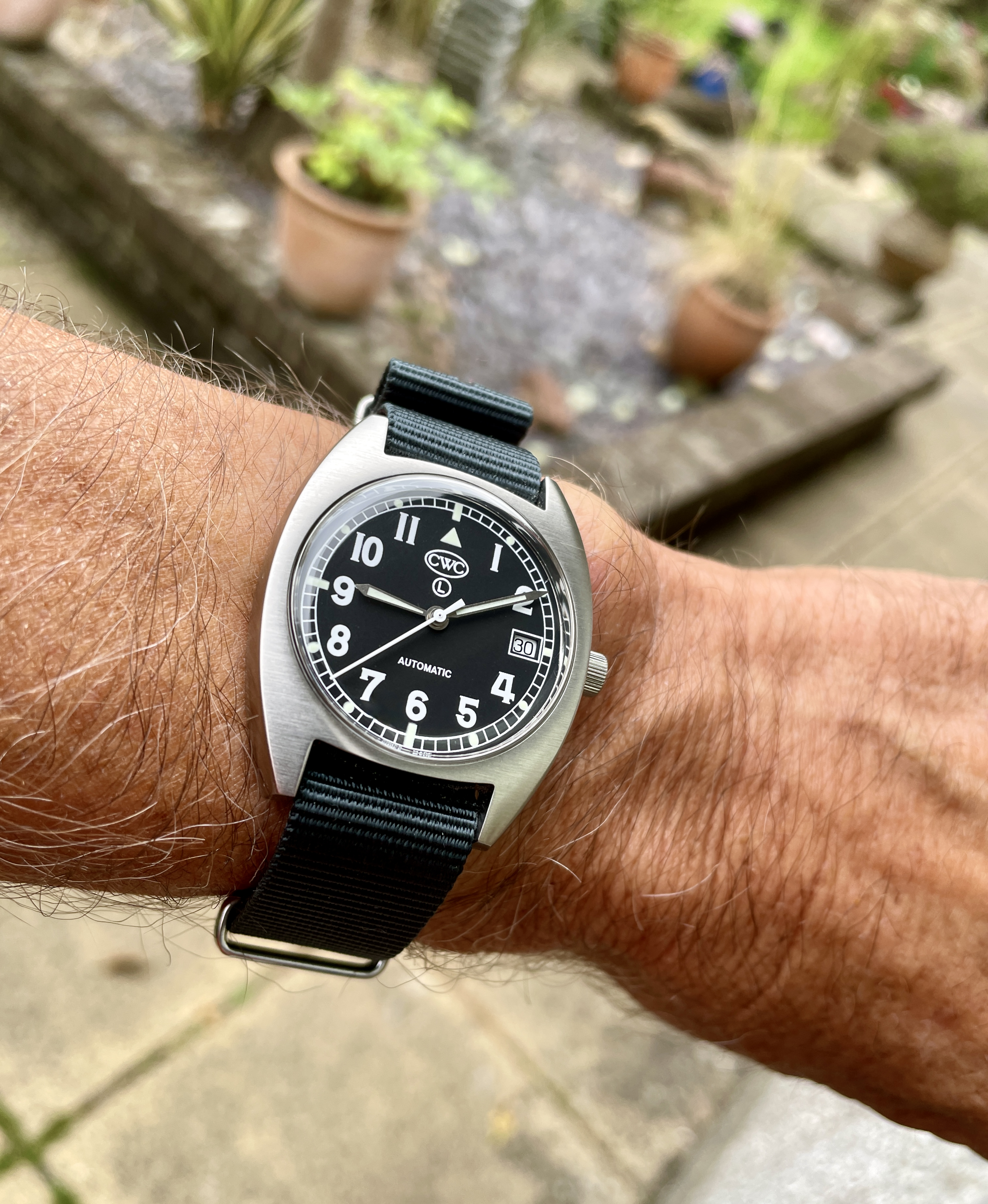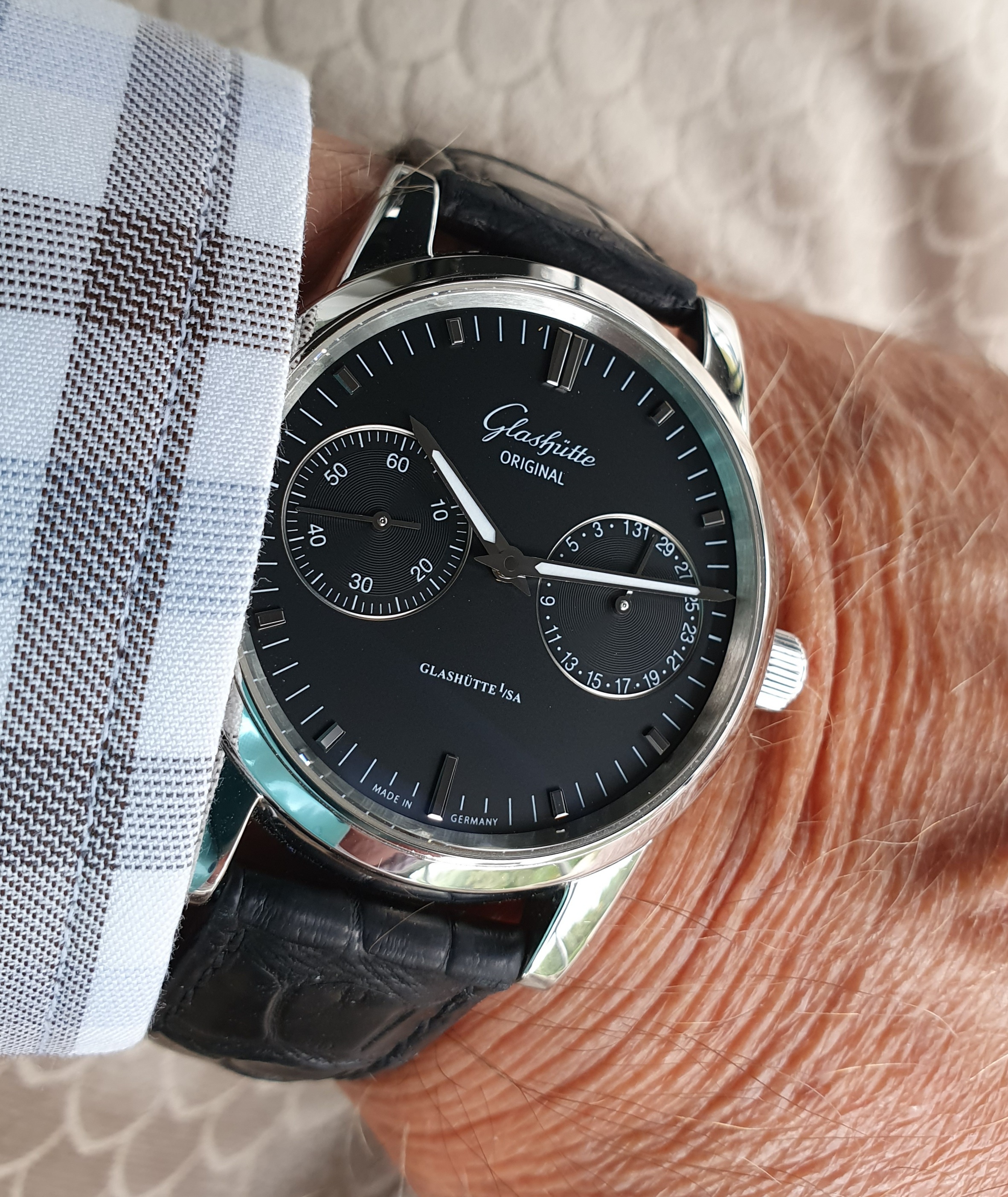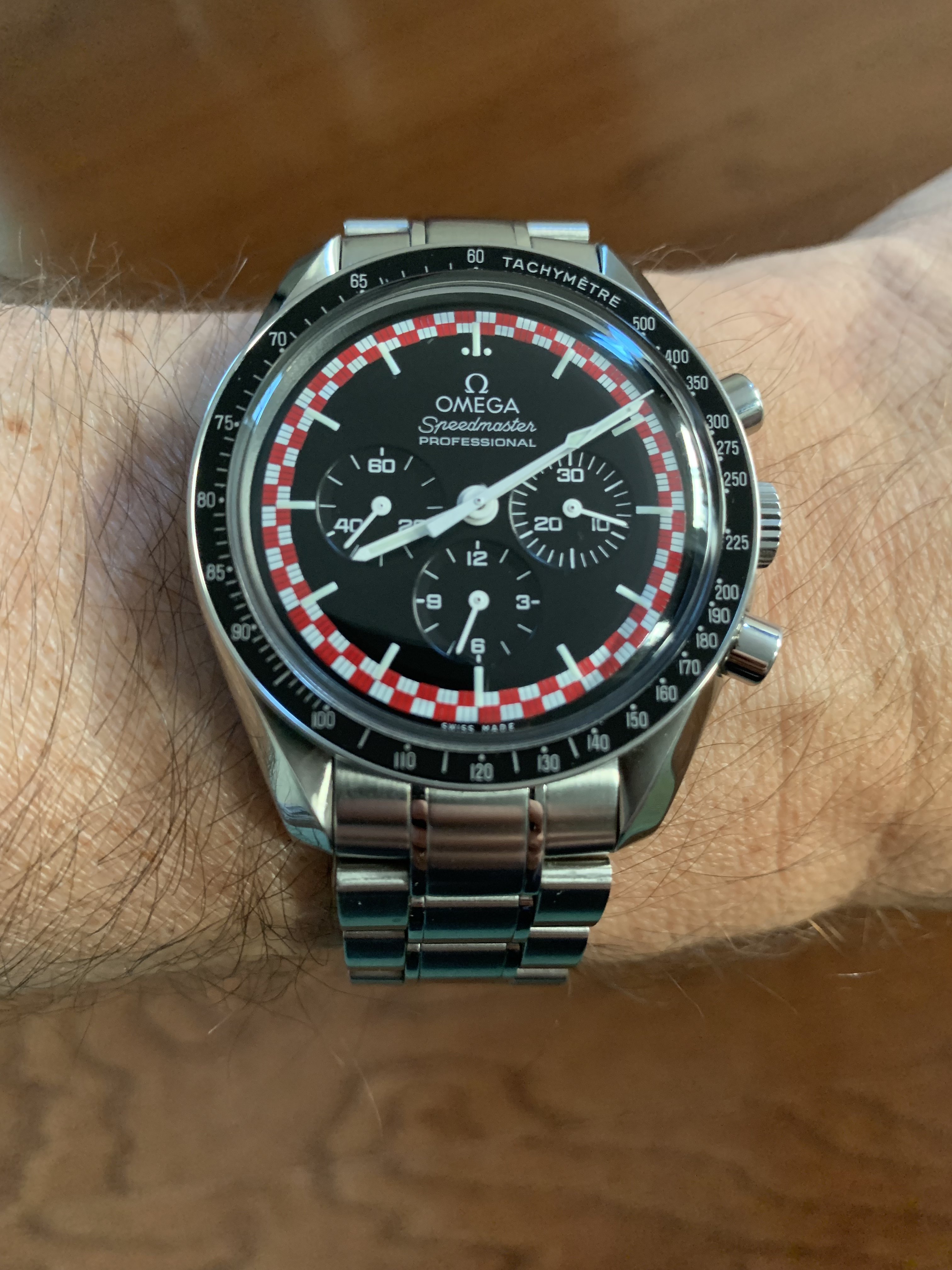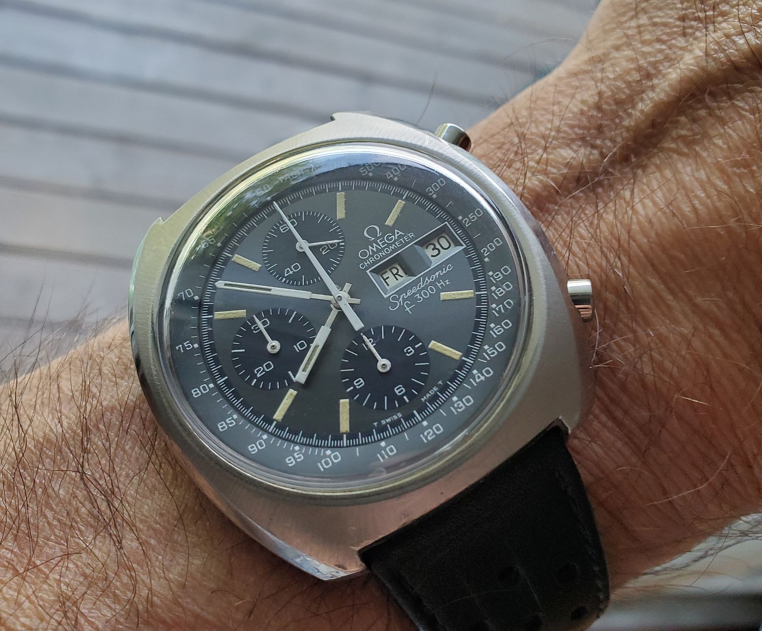 ·Not wearing this (a wee bit too small for me). Estate sale from up the street. It was tarnished and in bad shape. Cleaned it up as best as I could and am giving it to a friends daughter (13 years old who enjoys watches). Hand-wound and working fine. Total cost: $6.00. )
