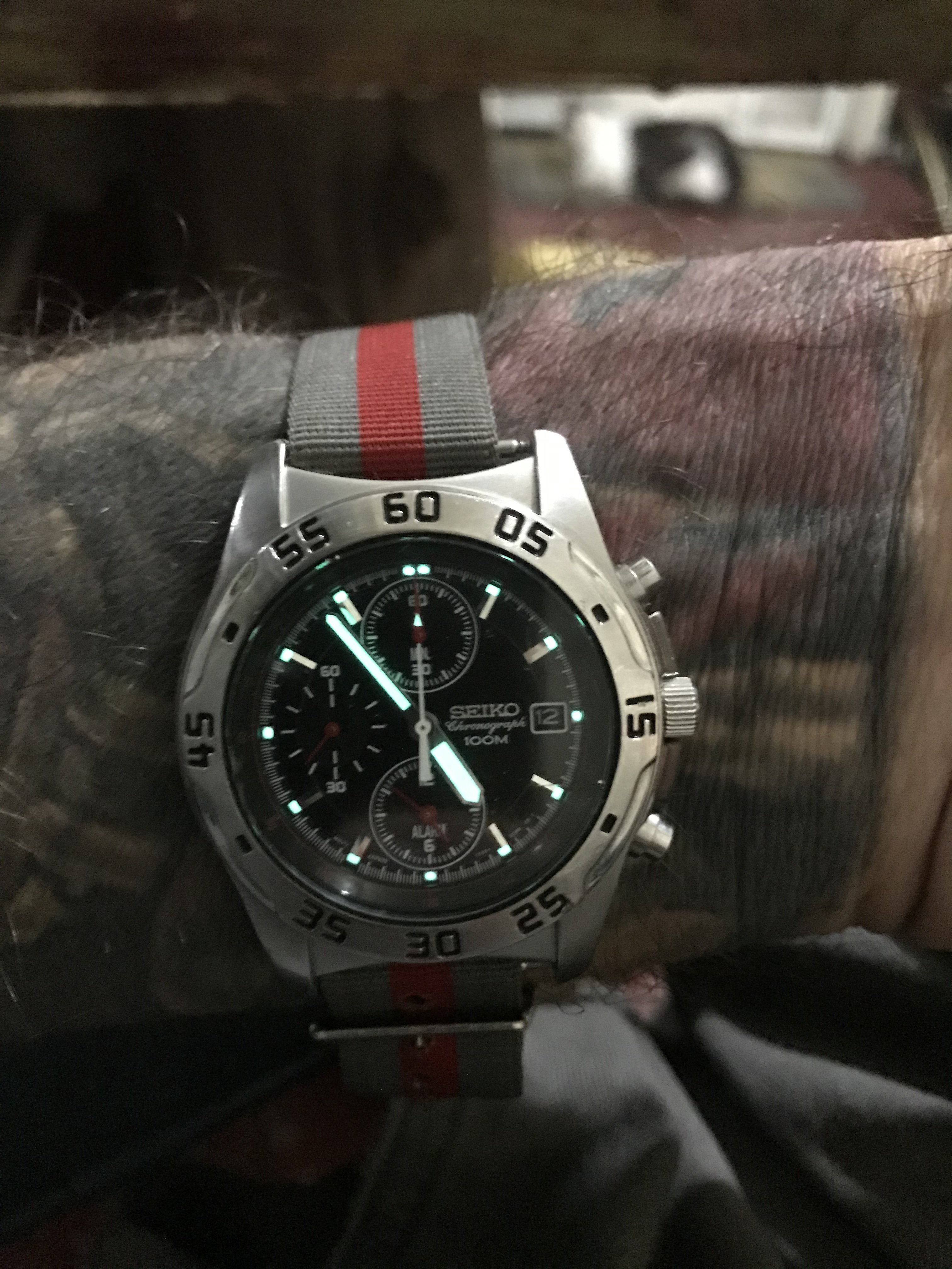 Seiko 100m Quartz Alarm Chronograph underneath. GMT function?
