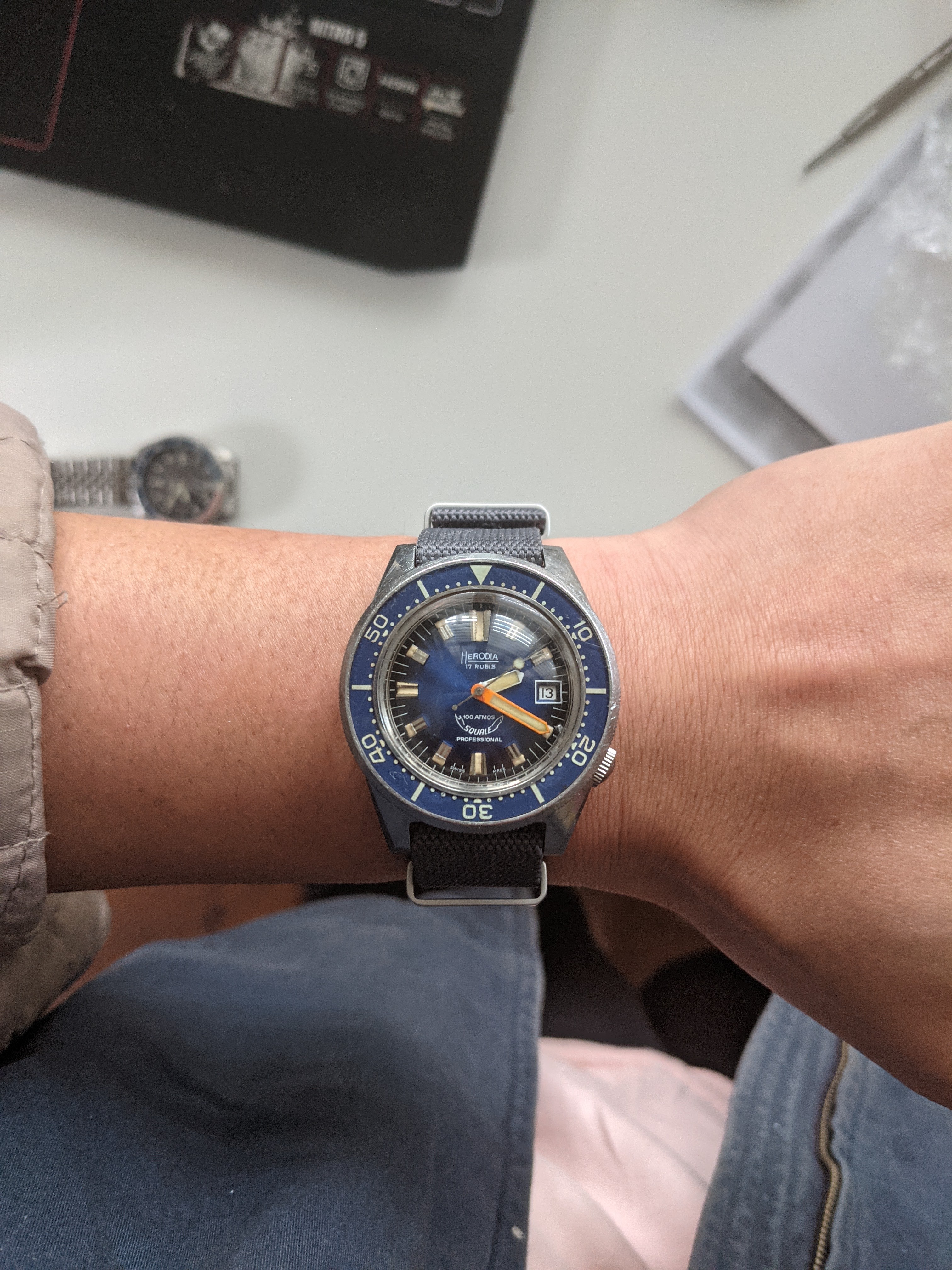 Well, I said farewell to the two watches, today (Thursday). The fellow I spoke of, whom I met about 35 years ago when I sold him a Rolex for his father, came today to pick up the two watches in the story. I was custodian of these watches for those 35 years. I recalled the family name, went to our phone directory, and by luck, It was his phone I reached. He was thrilled to retrieve the 83-year old J W Benson wrist watch that had been his grandfather鈥檚, then his father鈥檚, and also his father鈥檚 57-year old Accutron. When he got here, he was wearing a Smart watch! I hope he enjoys these family watches.