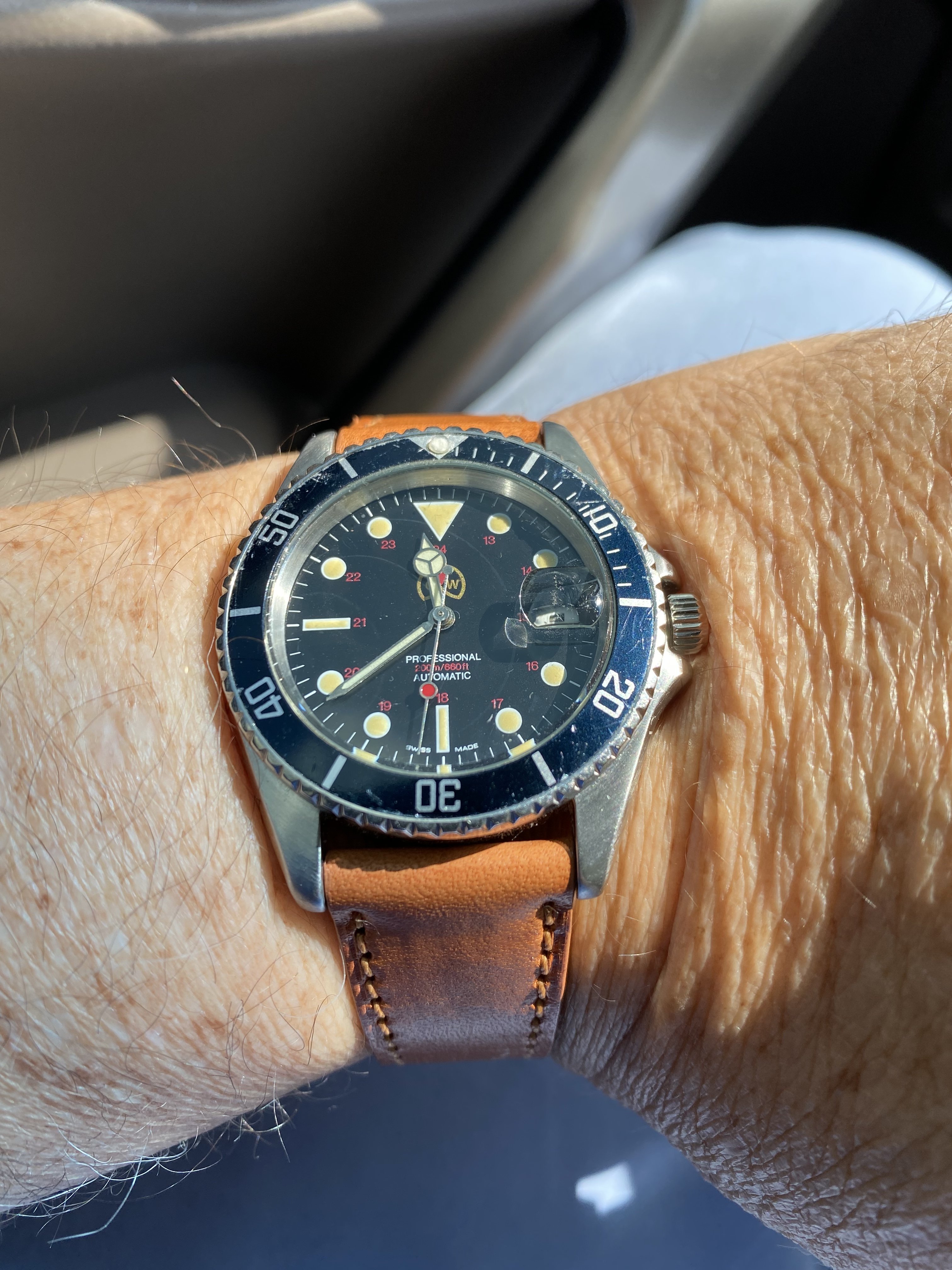 Posts 553 Likes 2,760 Omega D ·Aug 16, 2021 gbesq Arrived this morning. It was a long wait from Slovenia to the US, but worth it. 1959 Seamaster 14389-1 in nearly NOS condition. A great eBay find. 😀😀😀 Very nice