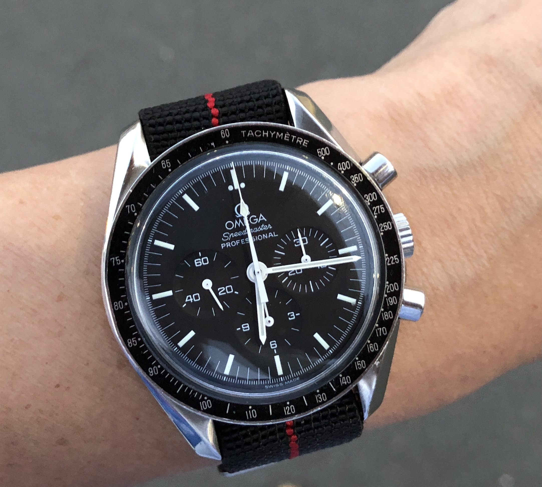 Posts 3,942 Likes 45,393 styggpyggeno1 ·Sep 7, 2021 Guess this is one of the few SLA033: s with wear. I wear it on a NOS Tropic.