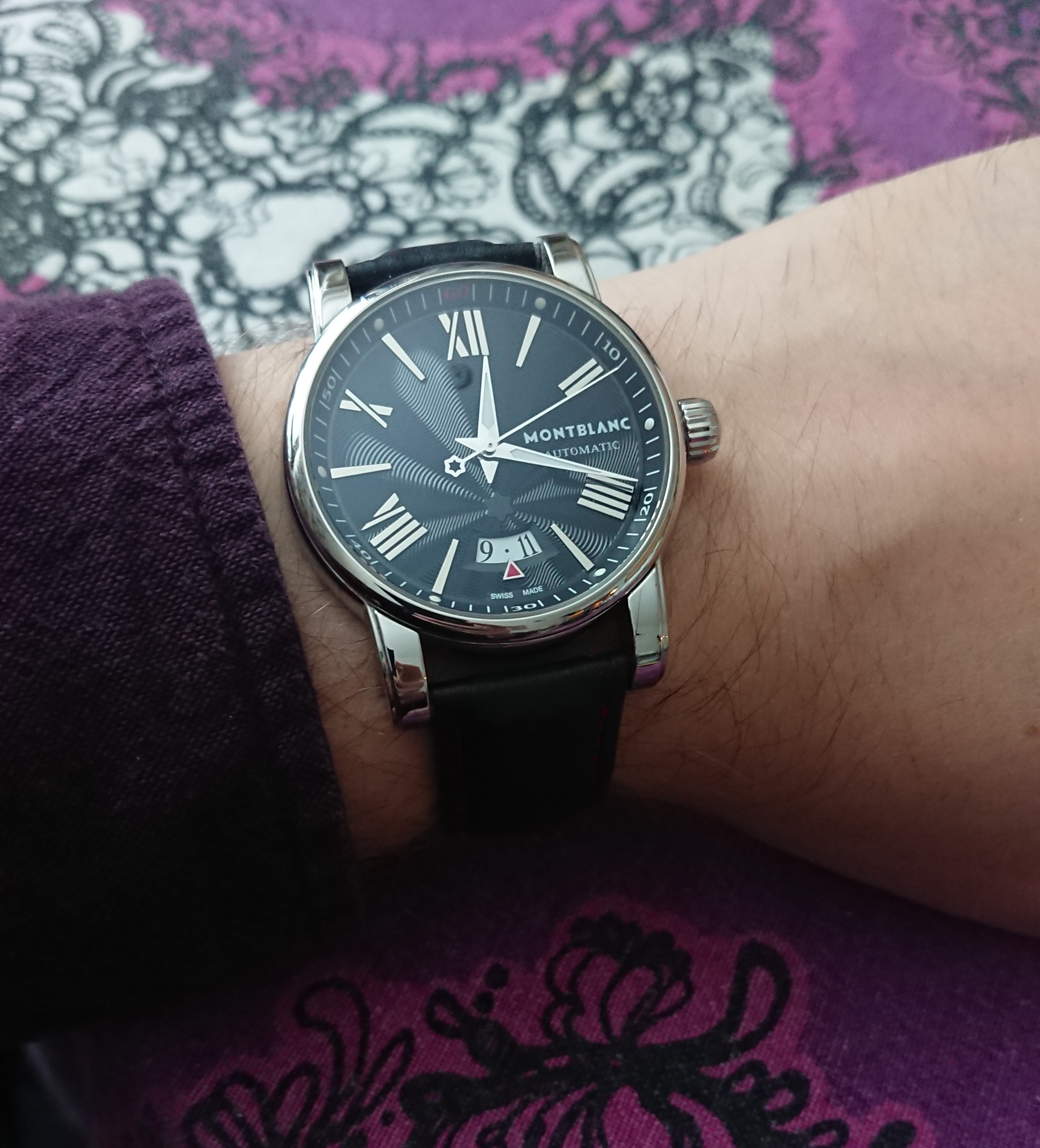 Going old school today with a Montblanc. This was my first mechanical watch and I wore it regularly for over ten years. Doesn't get much wrist time these days because vintage watches have corrupted my brain 😁 It just wears too large, 41mm diameter with 49mm lug-to-lug. Handsome watch with nice details though.