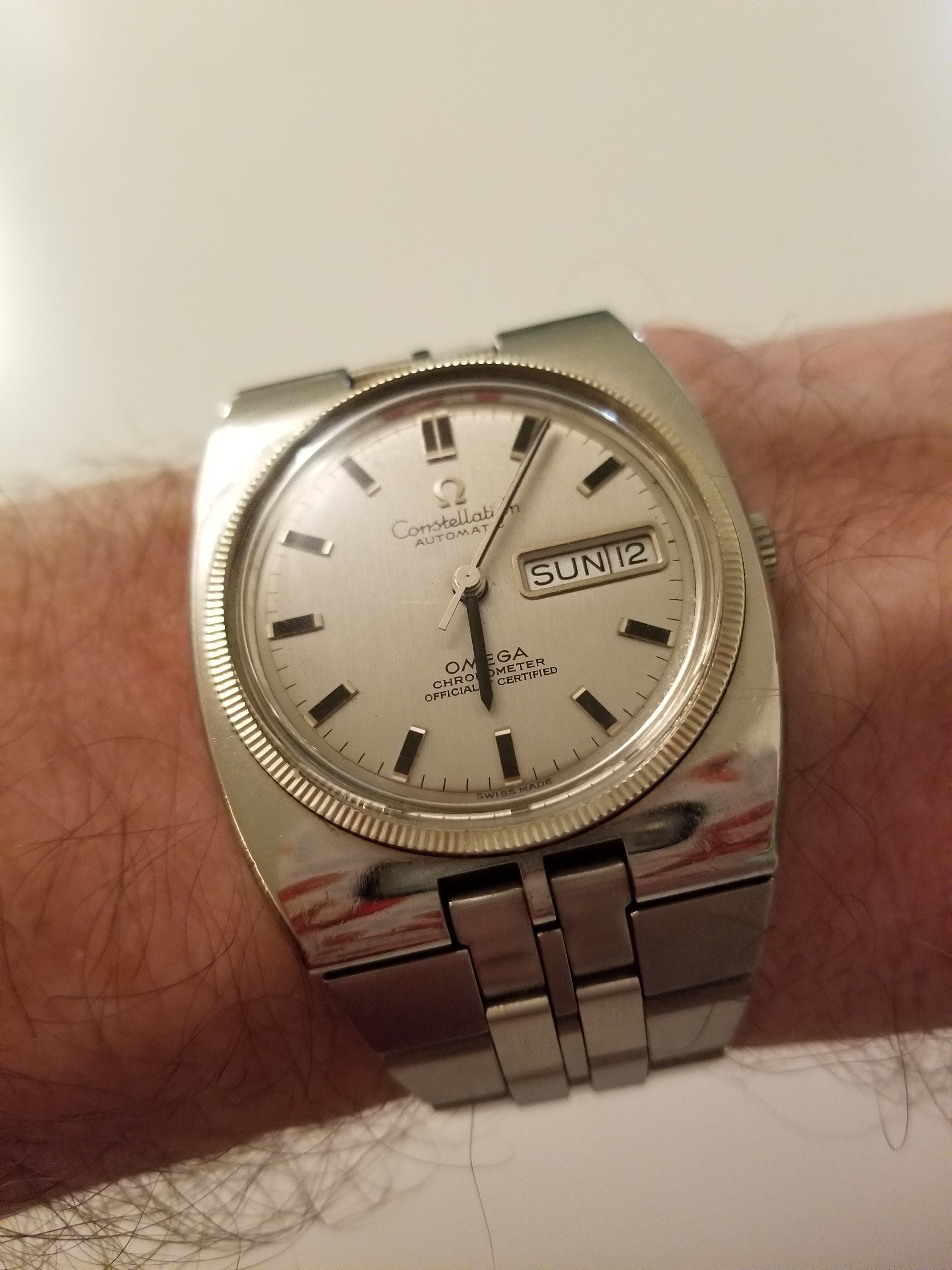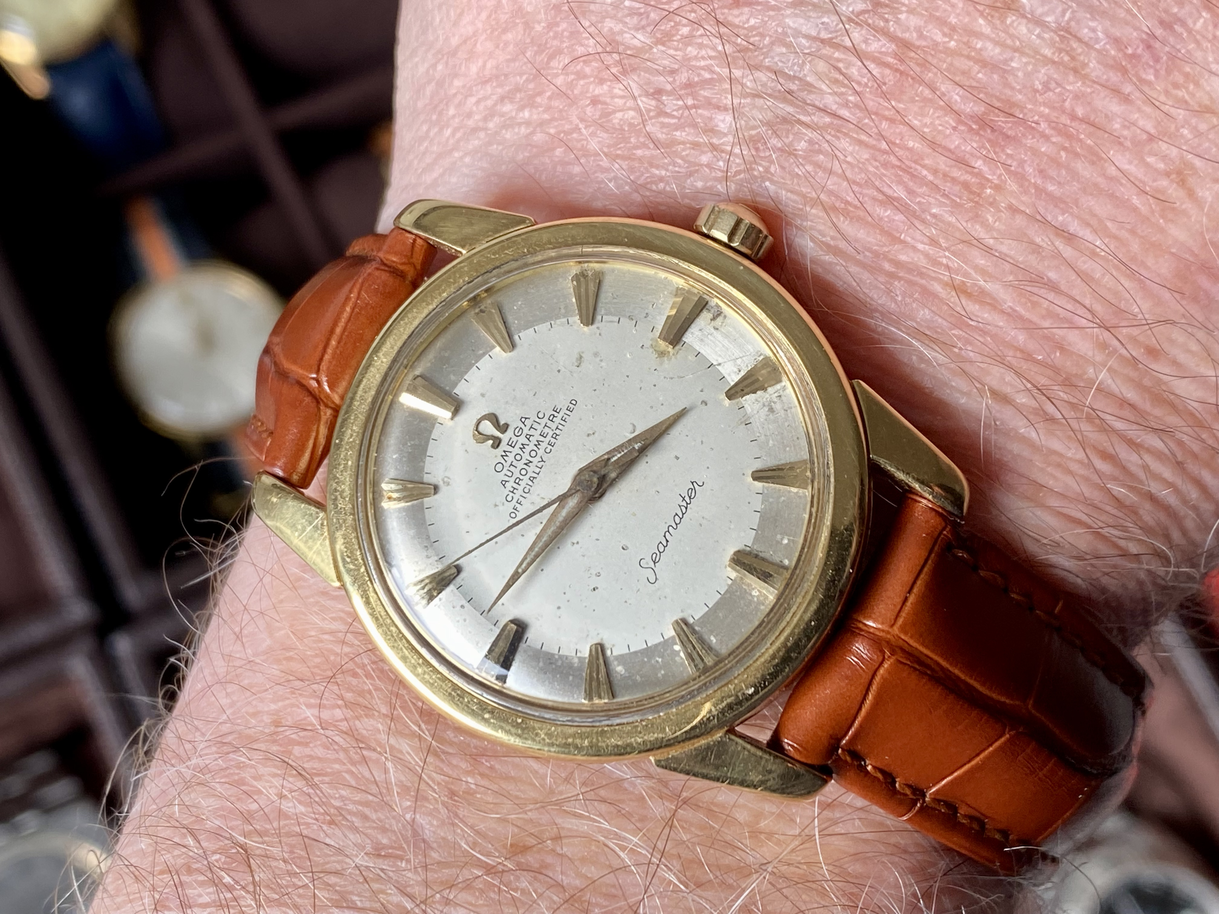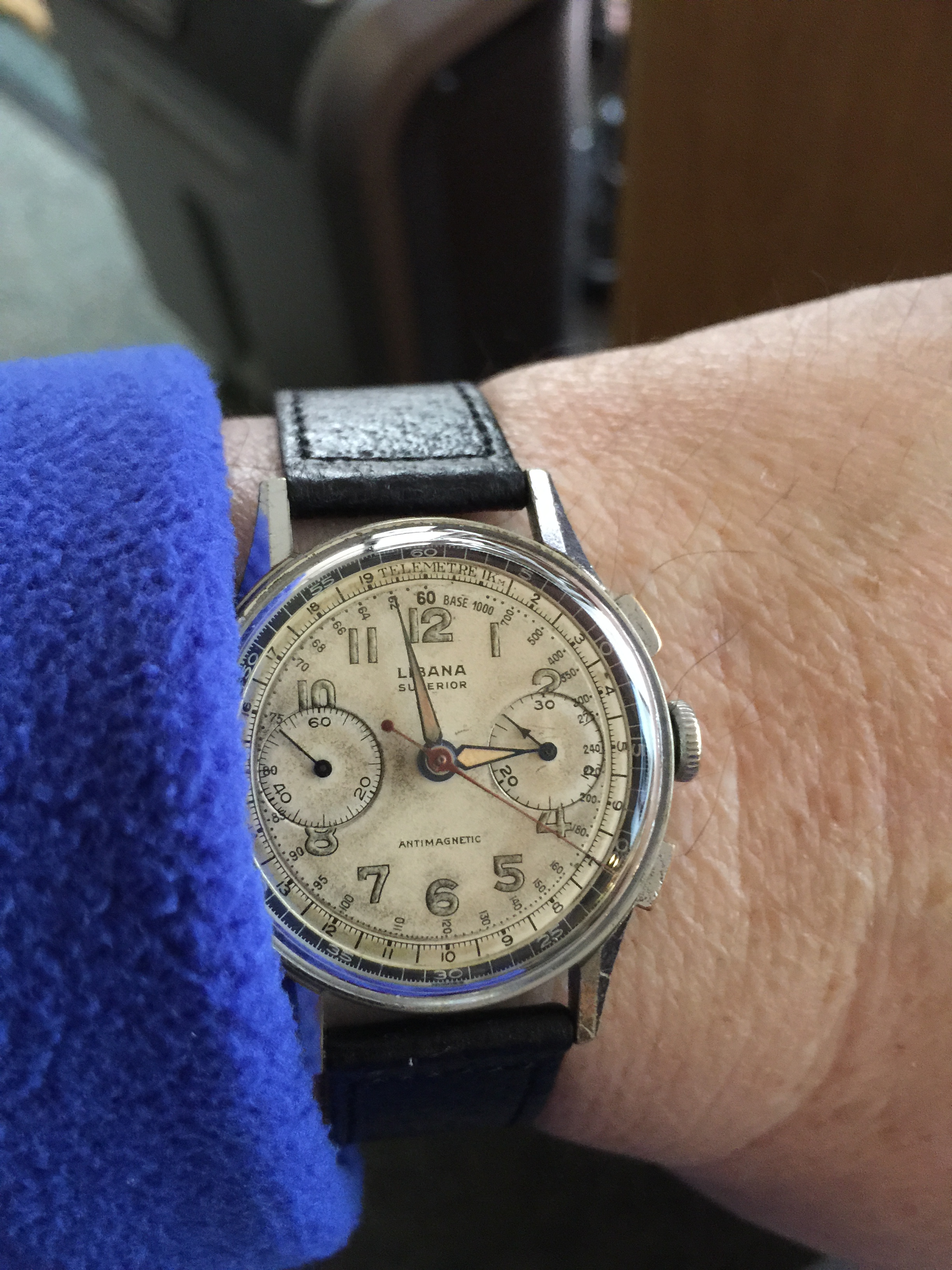 Wearing this one today. I don’t remember the last time I wore it. We’re headed away for some trailering, early next Tuesday, and I chose this one to wear. Mid to late 1950s, bumper automatic, chrome case. I’ll try not to wreck it.