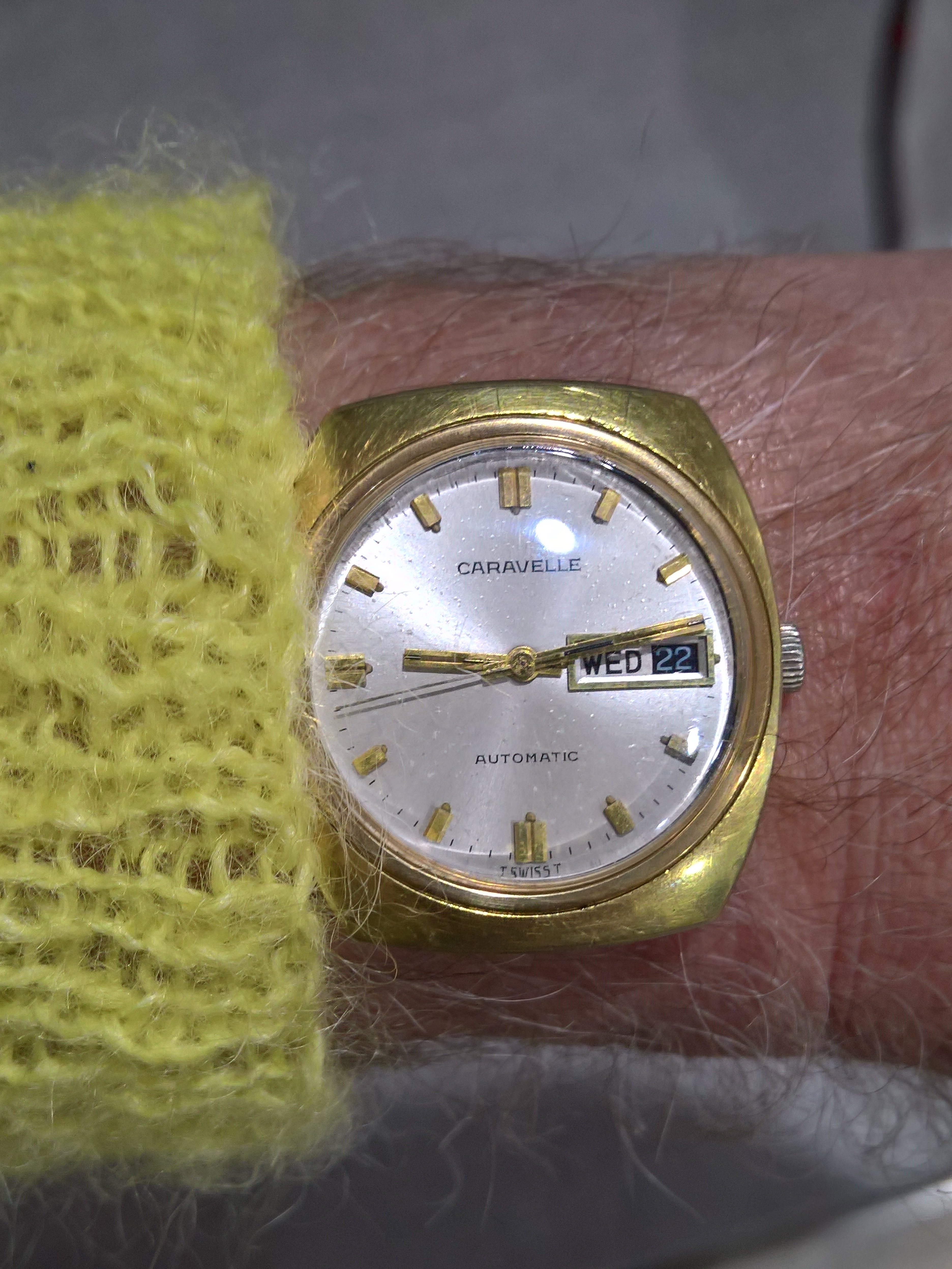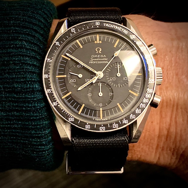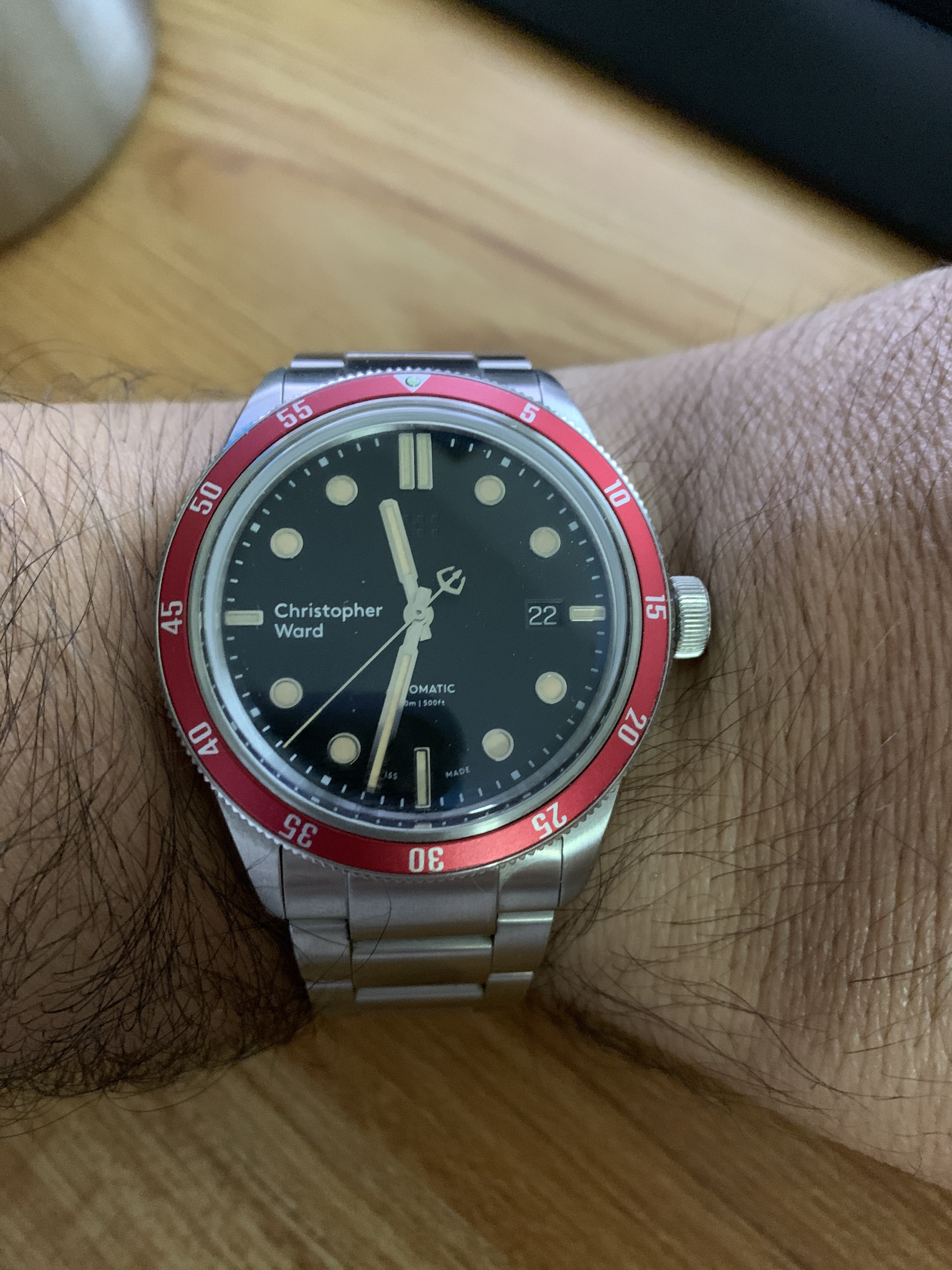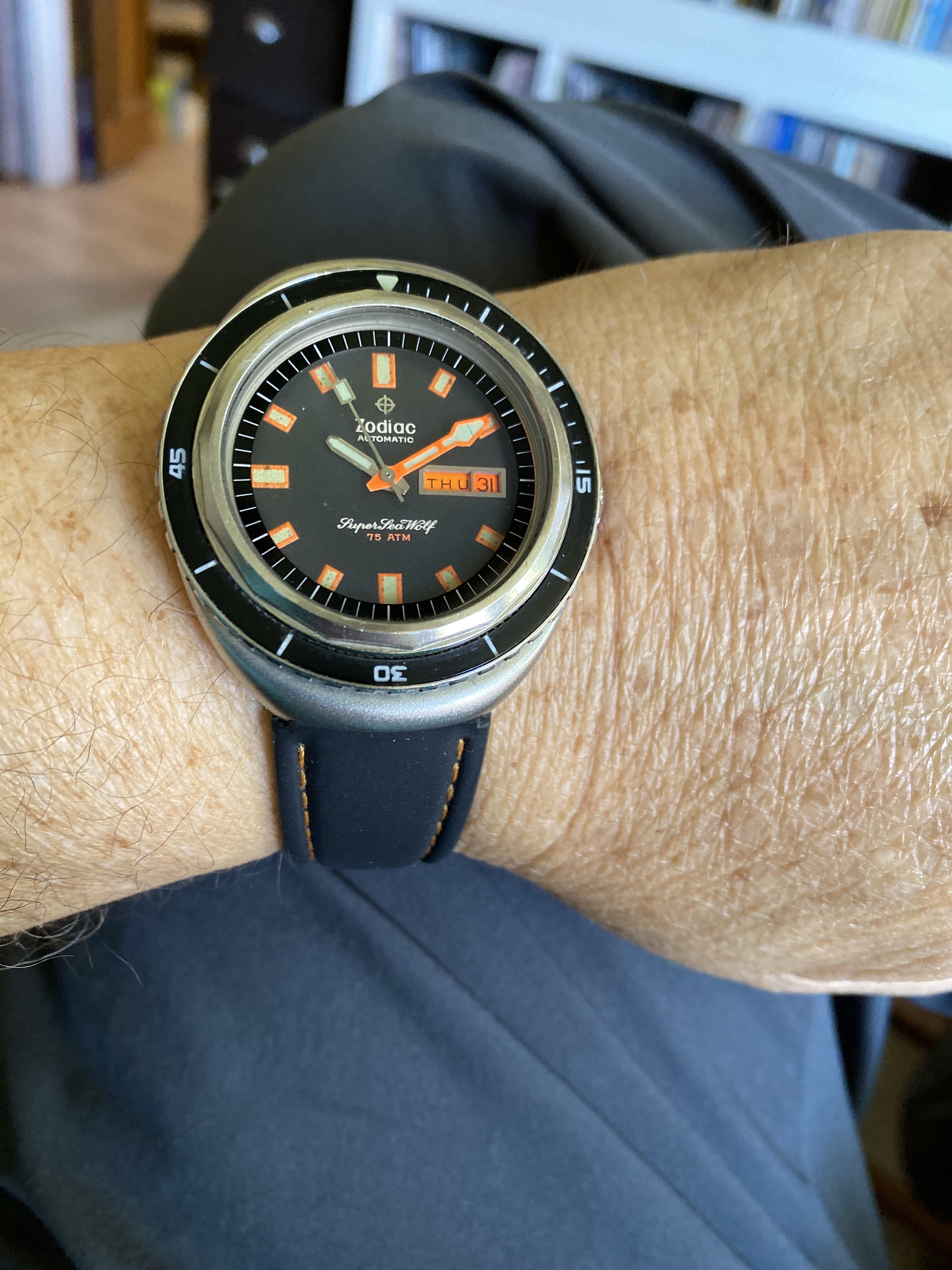 Couldnt wait to try it on my wrist hence no strap, still have to decide what I will fit to it but had to see what it looked like on my wrist with my newly knitted mohair Jersey that my wife has just finished for me.