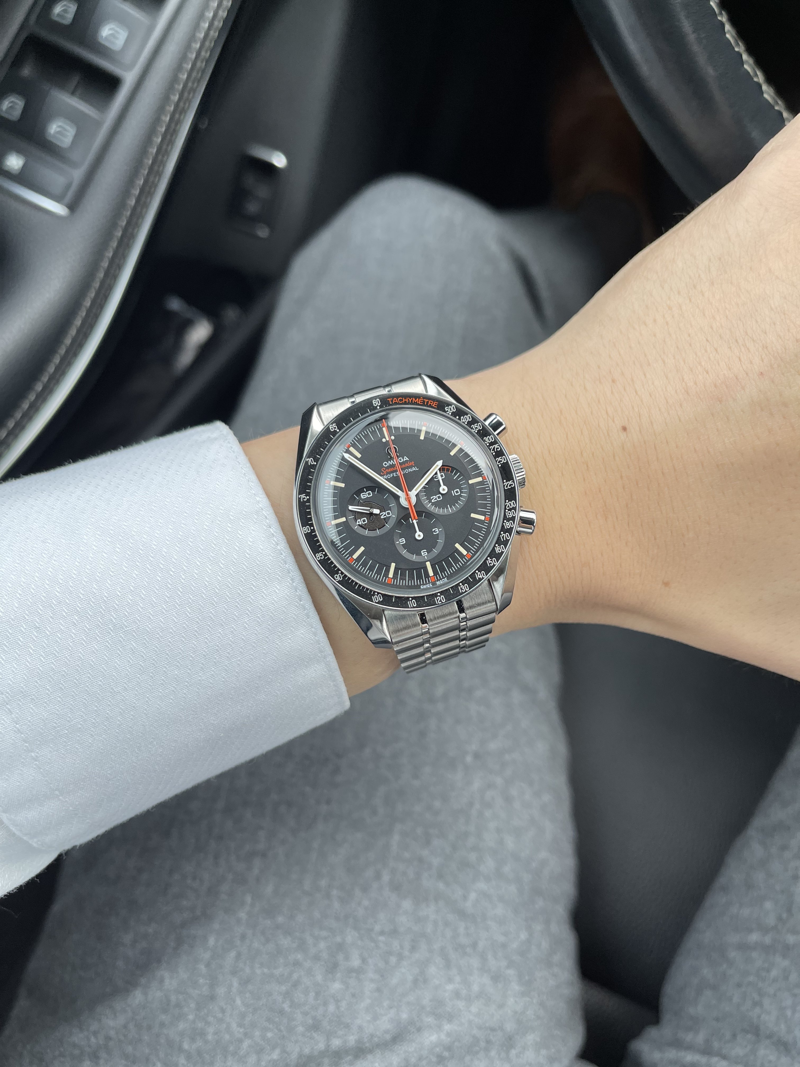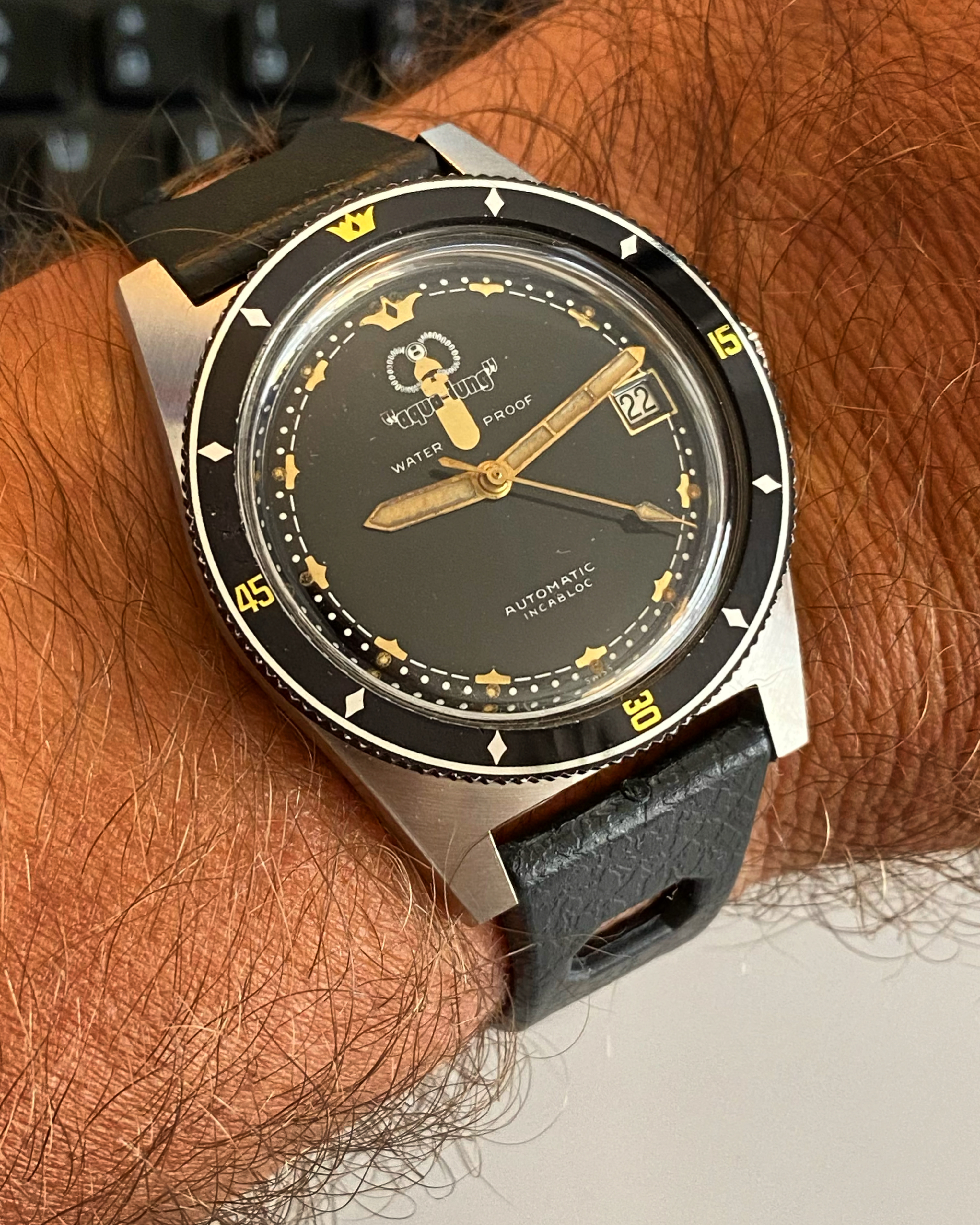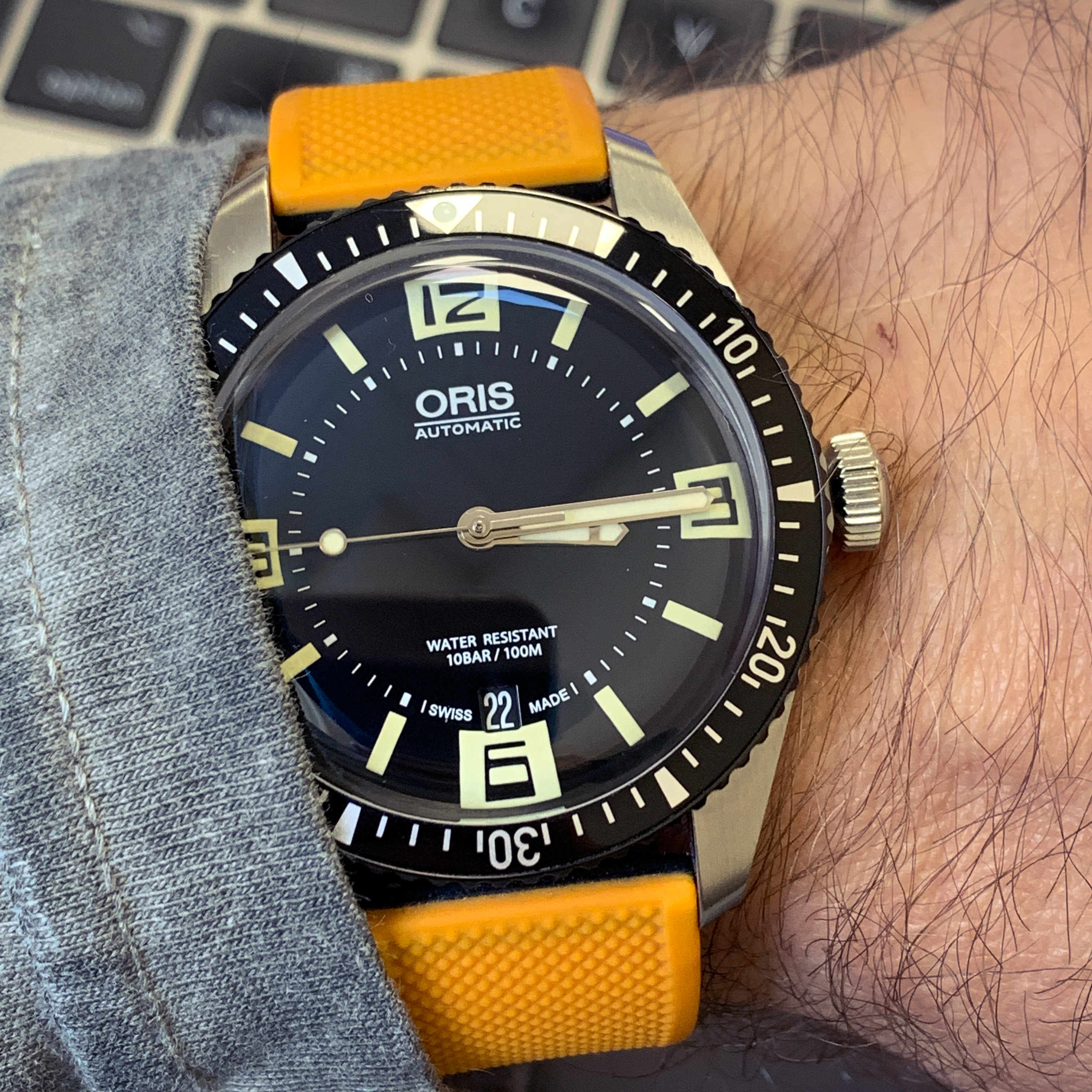 Couldnt wait to try it on my wrist hence no strap, still have to decide what I will fit to it but had to see what it looked like on my wrist with my newly knitted mohair Jersey that my wife has just finished for me.