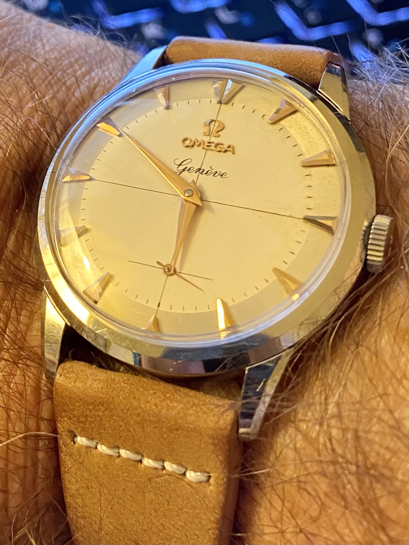 Posts 9,596 Likes 53,107 gbesq ·Sep 24, 2021 Vintage Geneve this morning. Wish that Omega still made these.