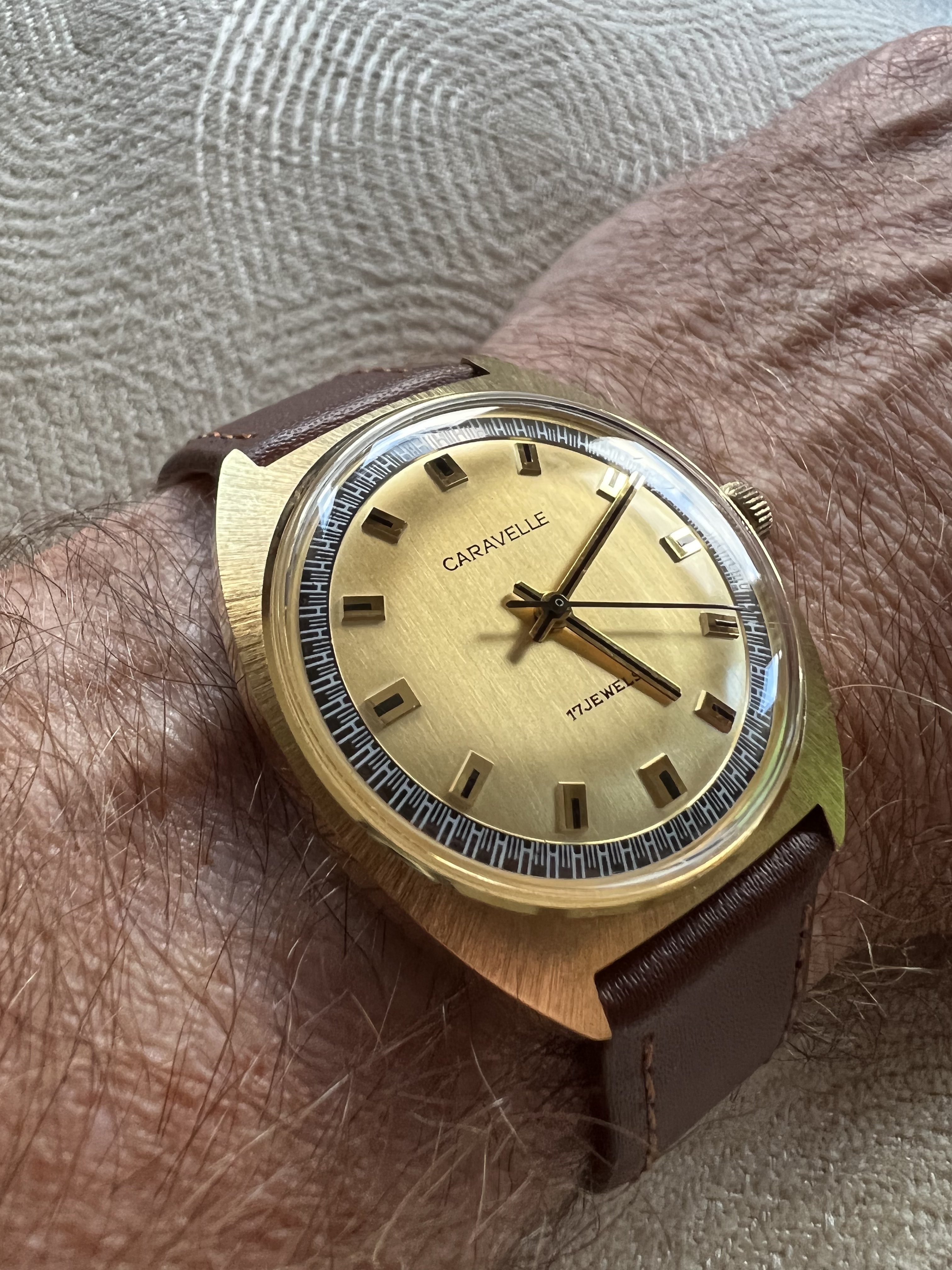 It’s a beautiful Caravelle from 1974 manual wind movement…great watch …I call these type watches vintage on a budget. I think this company were part of the Bulova watch company..you can find some great example’s for not a lot of money at all..