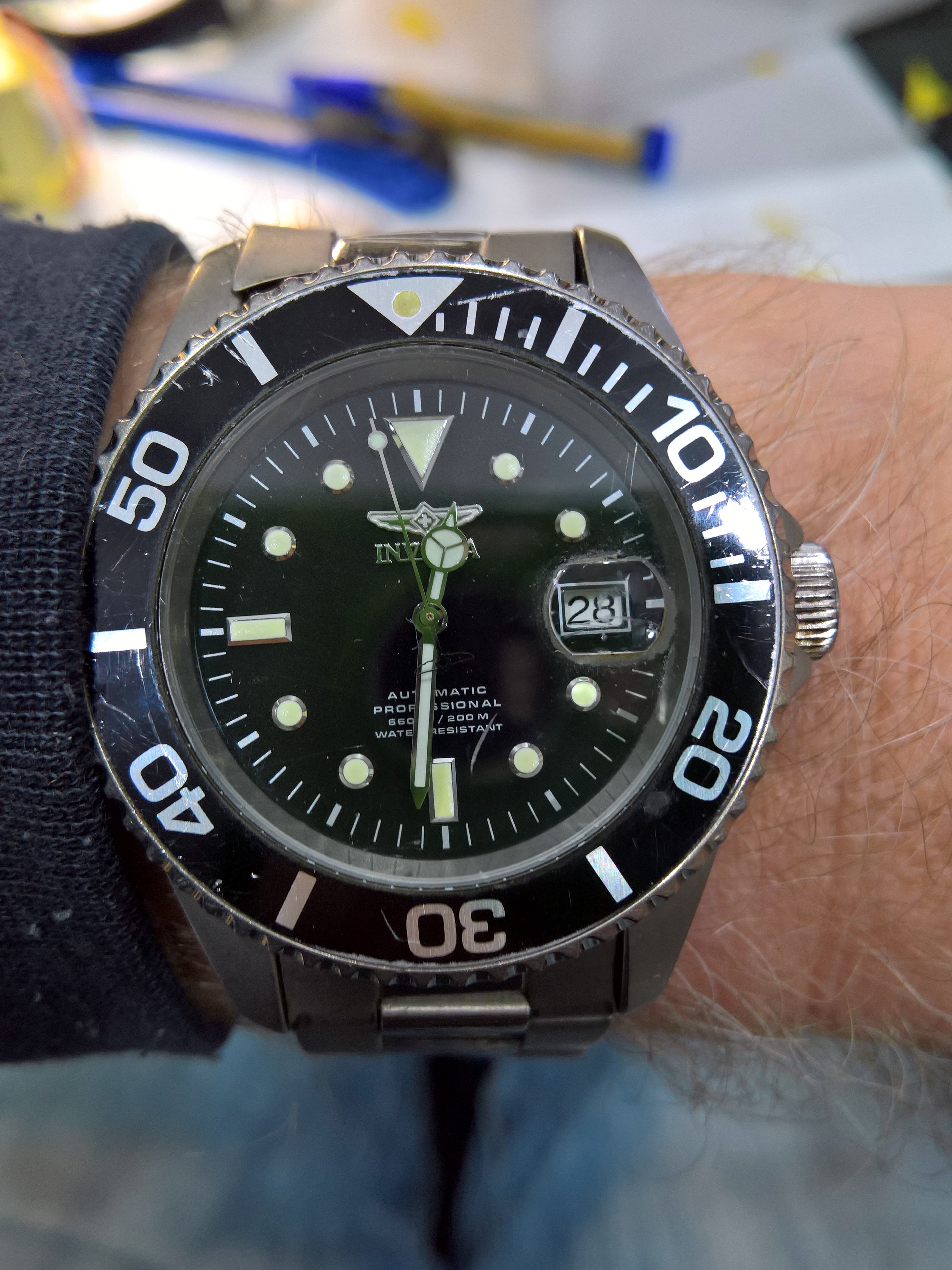Also back from my WM this morning after a very minor repair was this new to me Invicta Titanium automatic pro diver, so I guess that's my wearing watch today