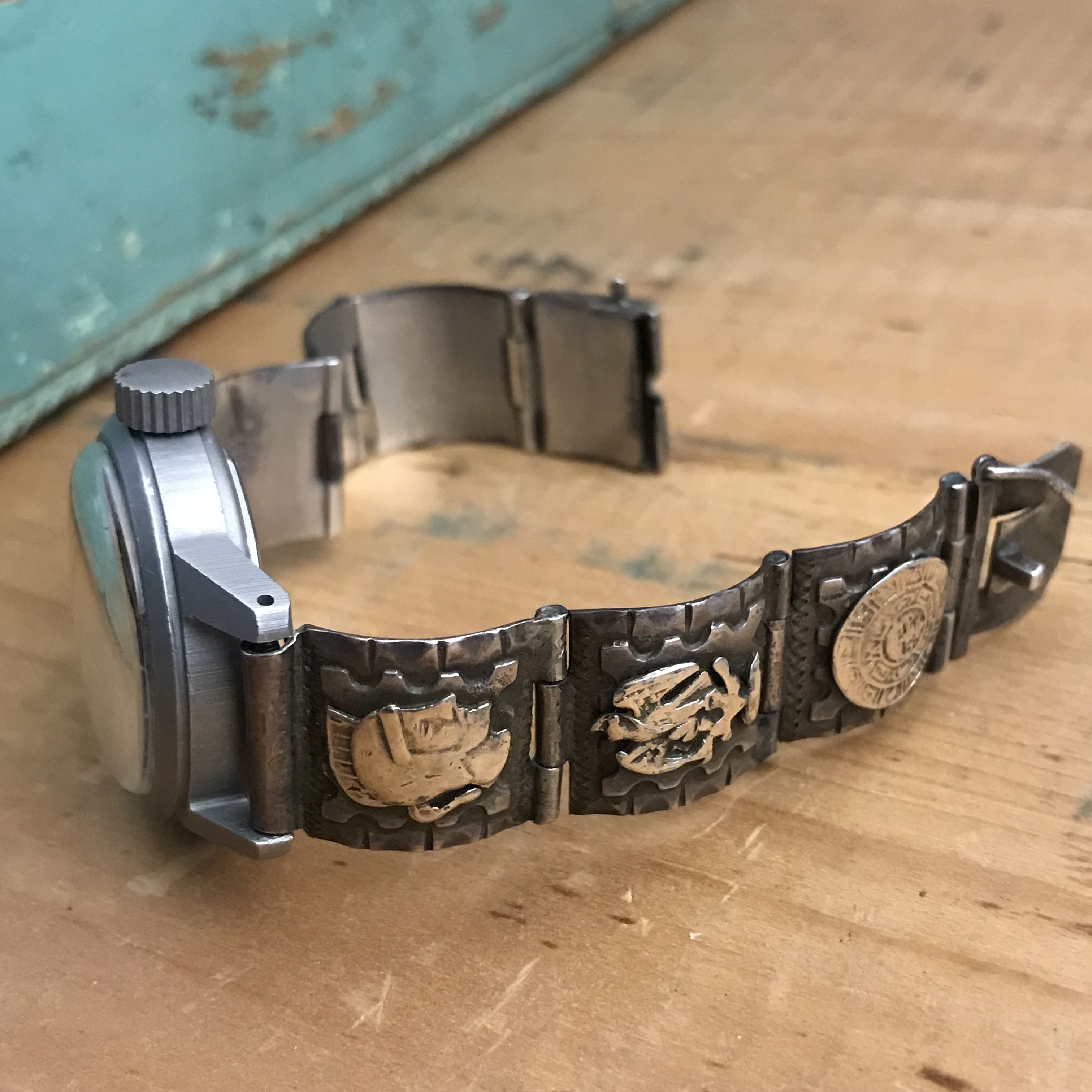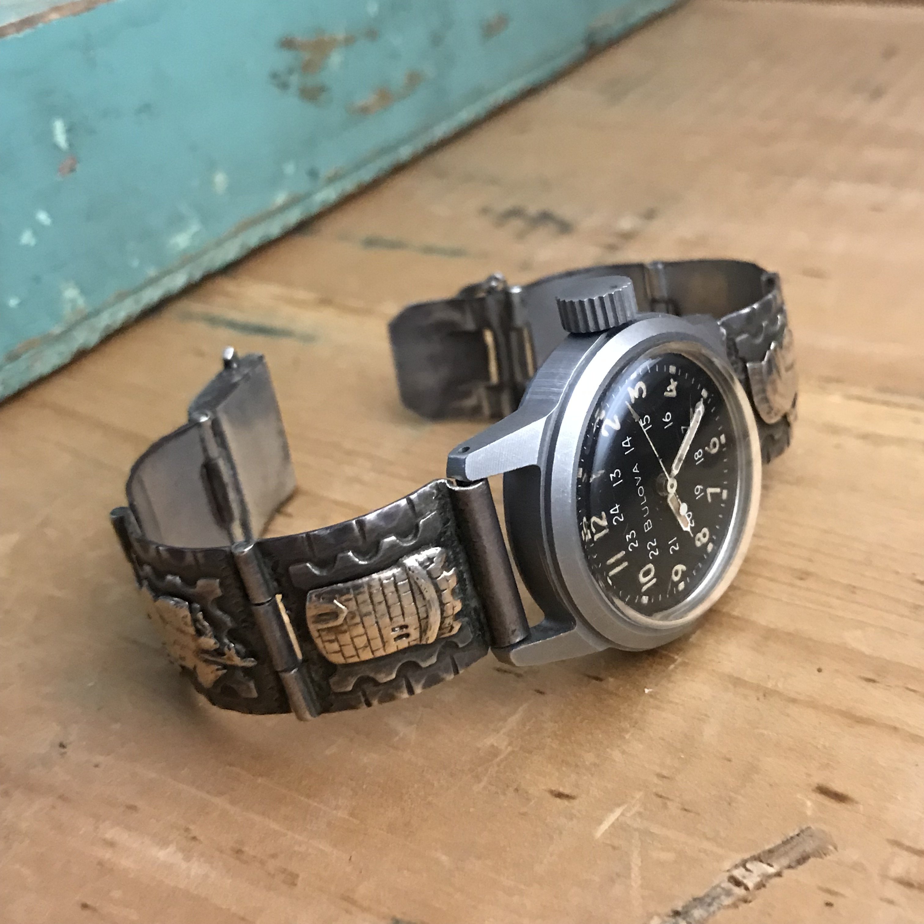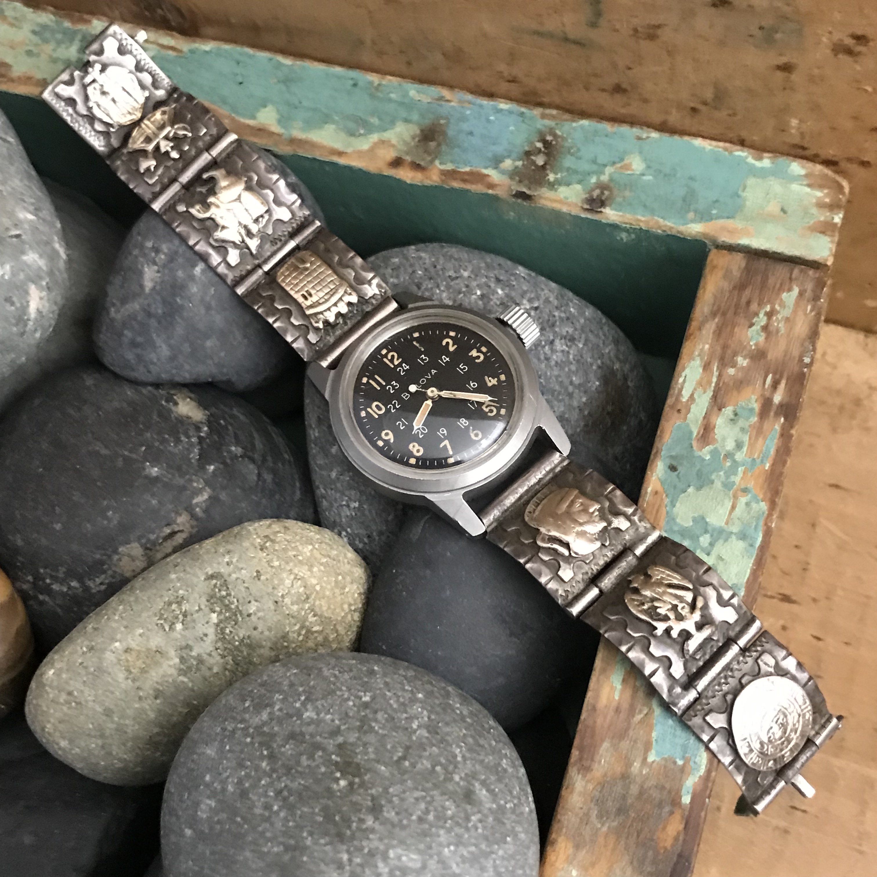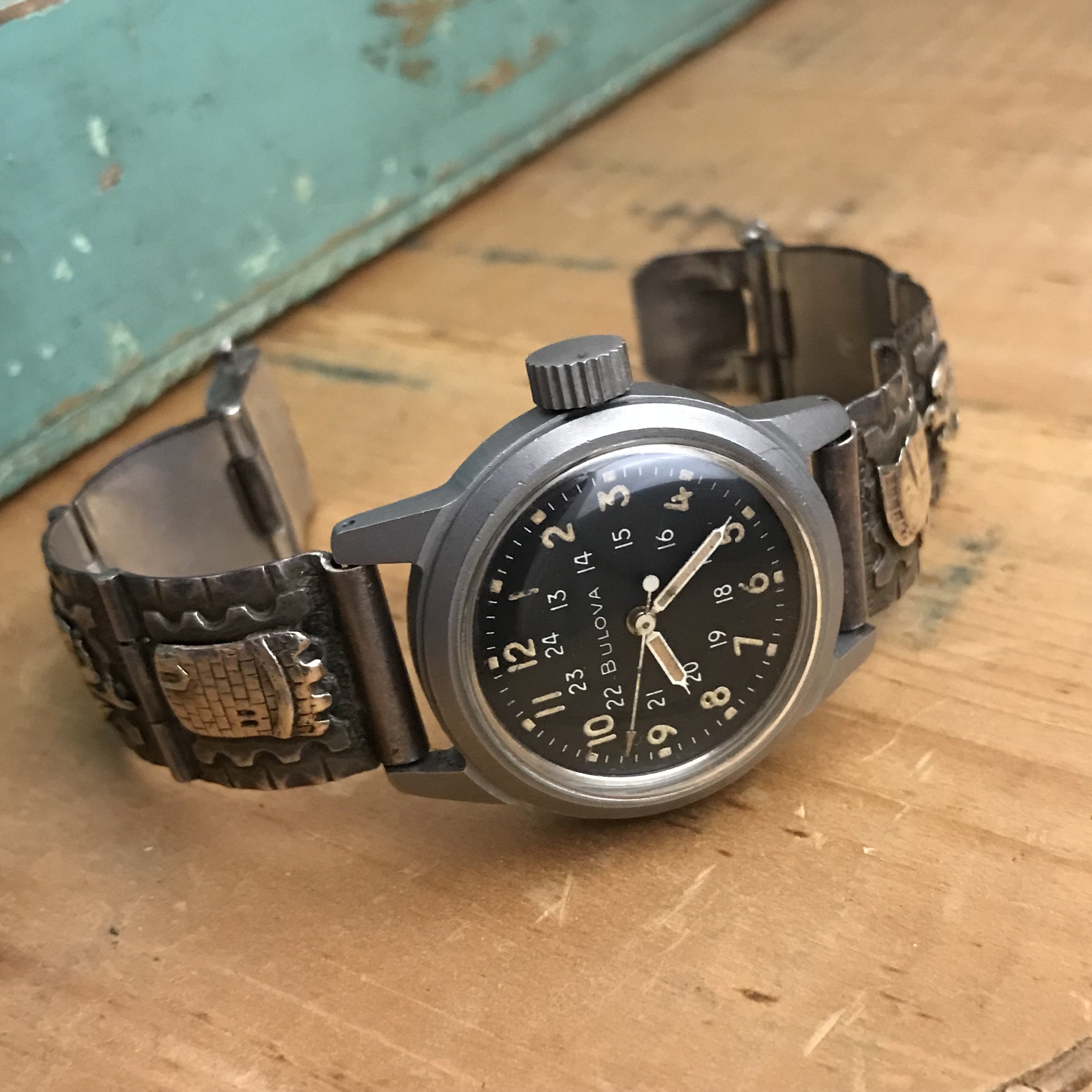 this bulova mil--w-3818a came my way from the estate of a naval officer in san diego, it had this mexican sterling & gold bracelet attached so that's how it's on my wrist today.