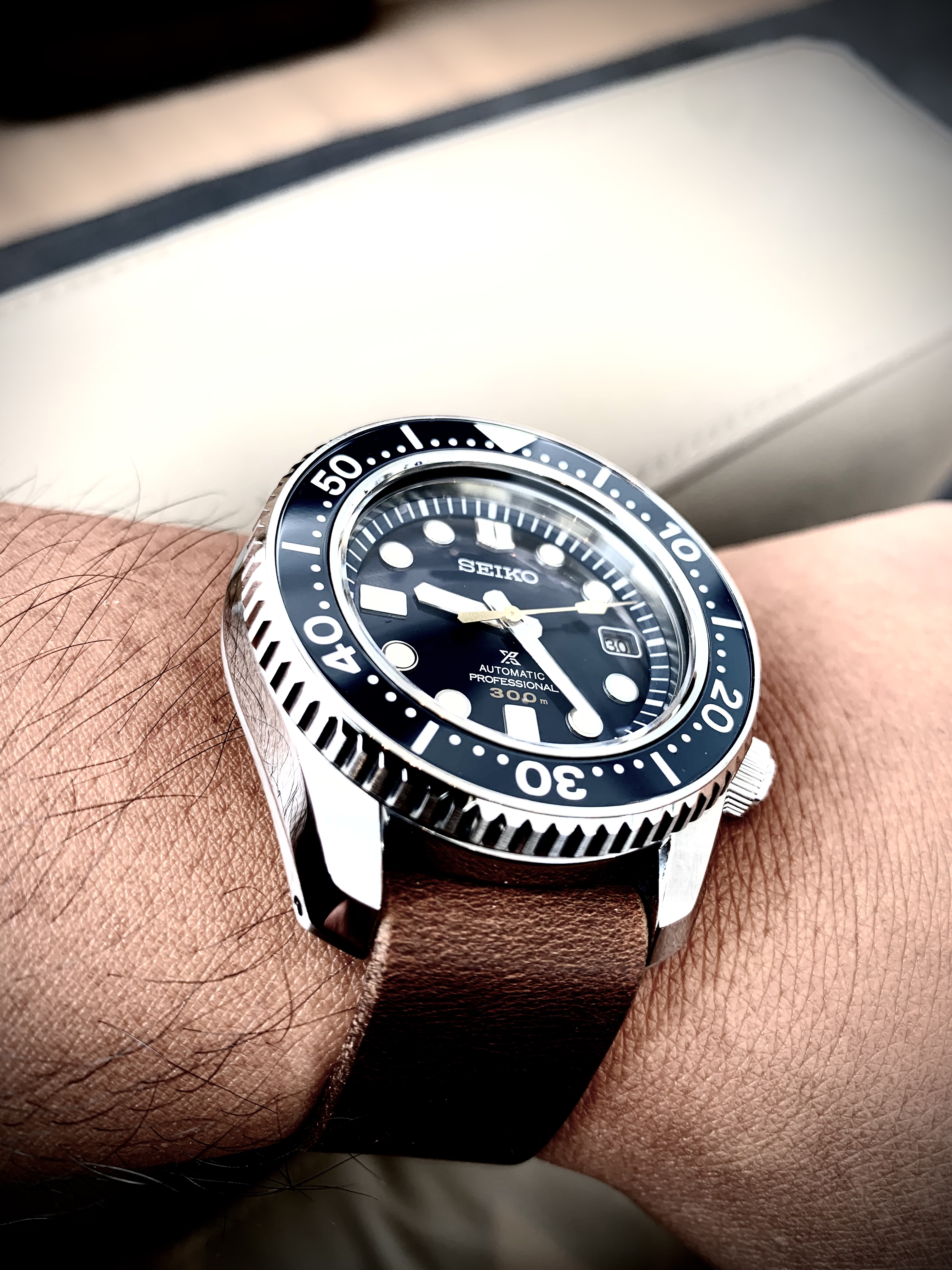Testing out a new acquisition: A first-generation T.12 with the rare 'divers dial' so-called because of the high-visibility radium markers at 3-6-9-12. This skindiver (circa 1958) was rated for 12 atmos of underwater pressure, or a depth range of about 120m (400ft), and would have competed with the early Eterna Kontiki and Certina DS Divers with similar dials