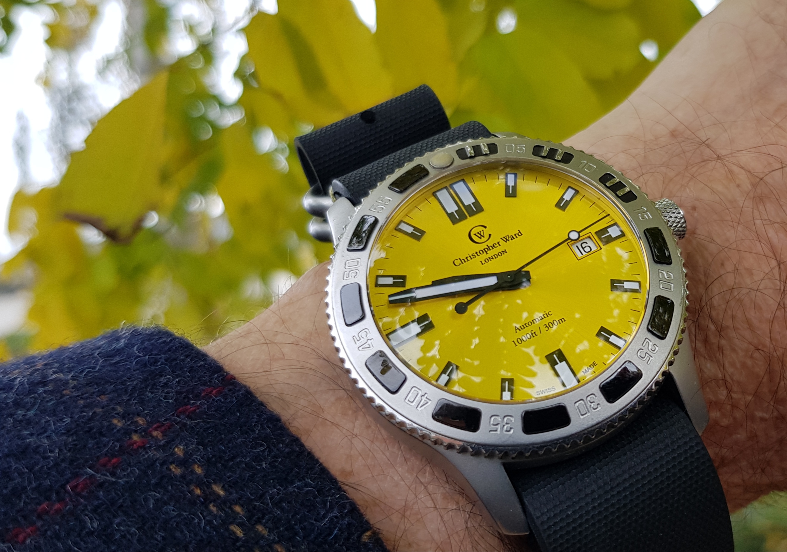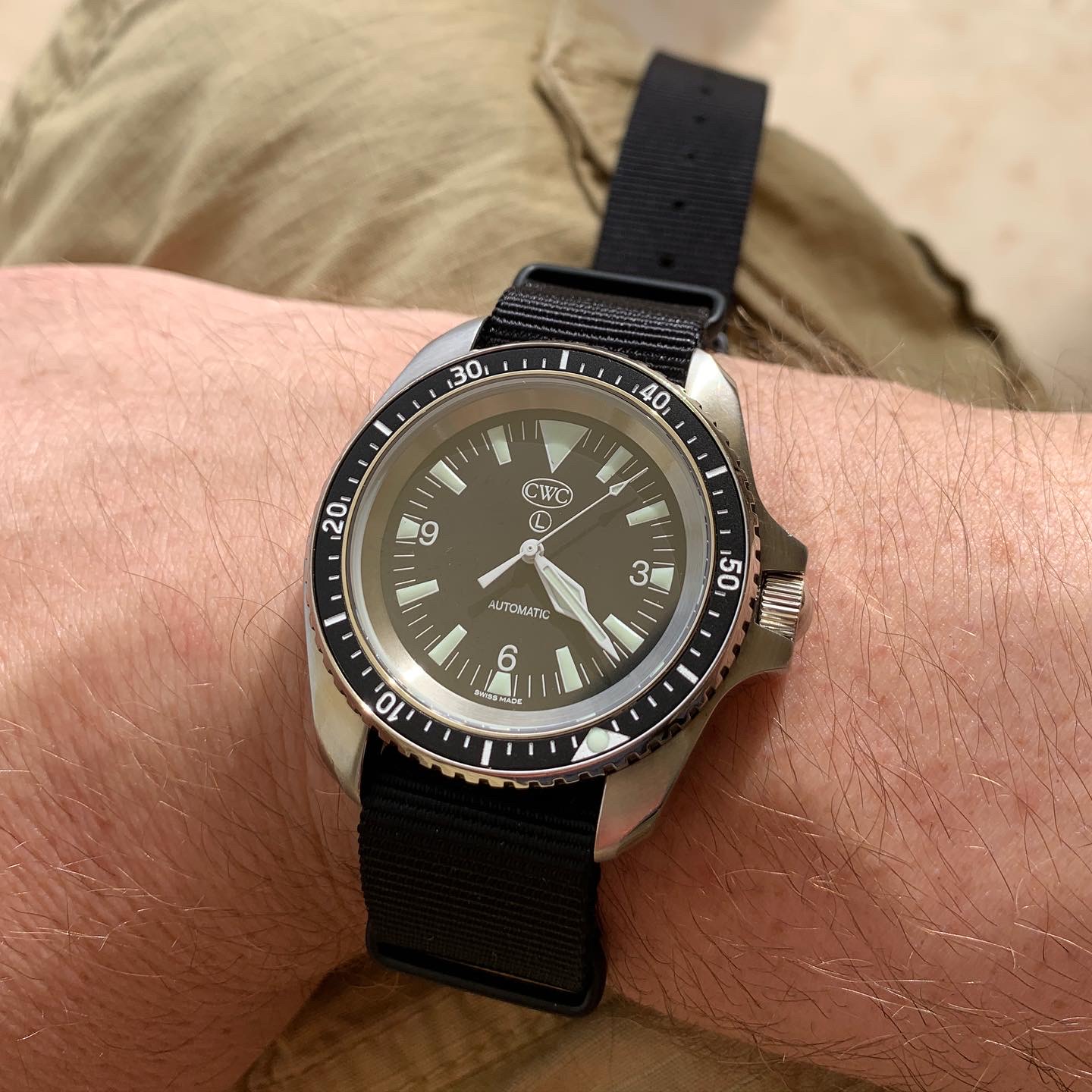 On the right a CWC RN Auto Diver MK2, on a double length NATO, again, for winter wetsuit compatibility.