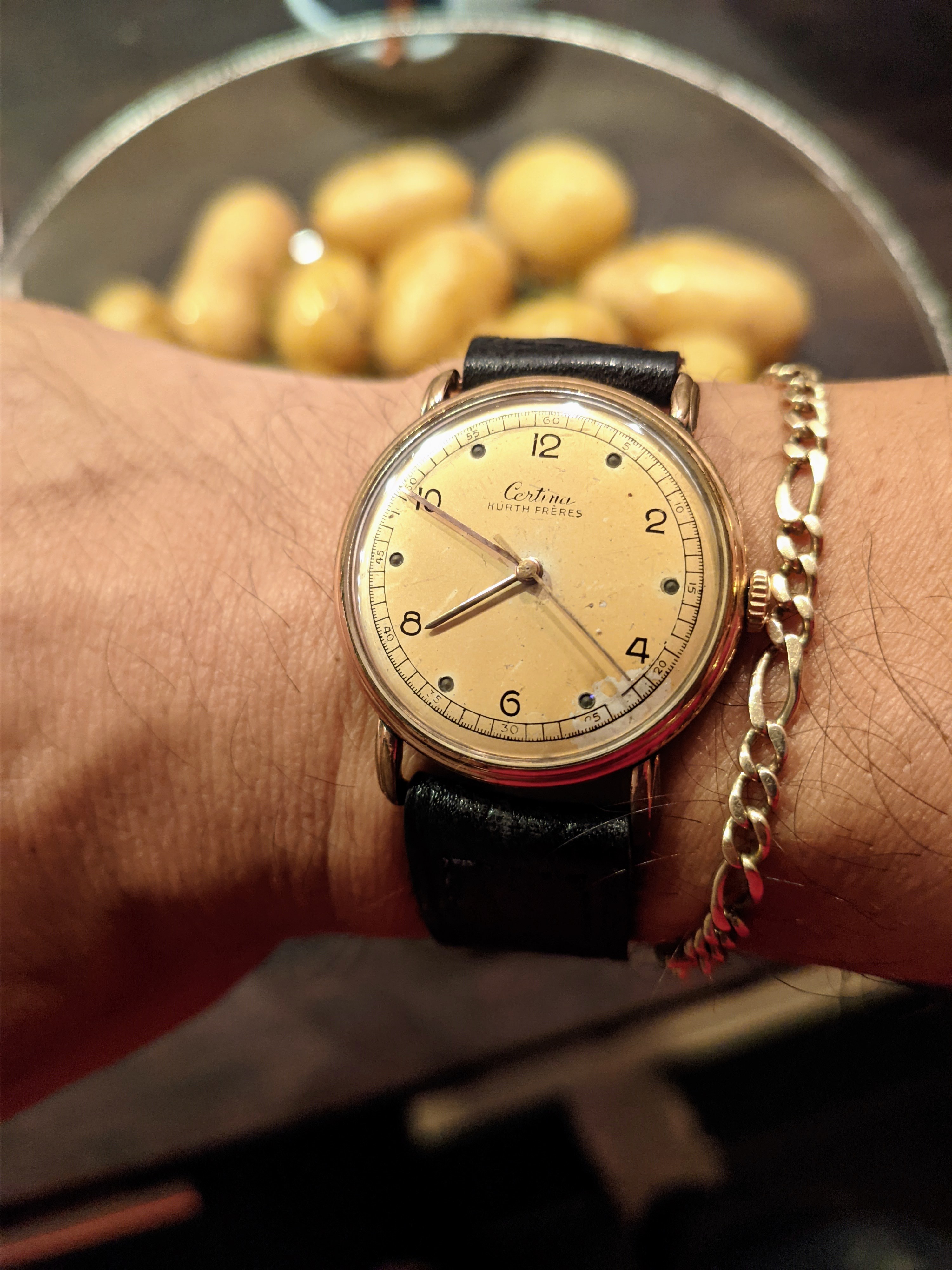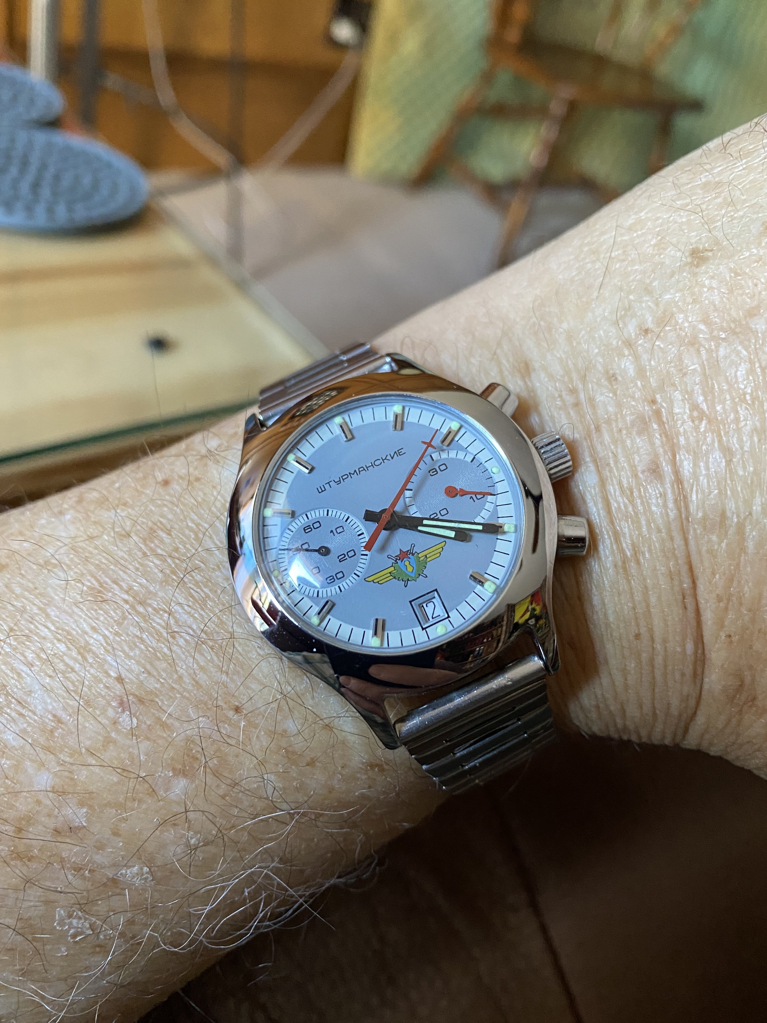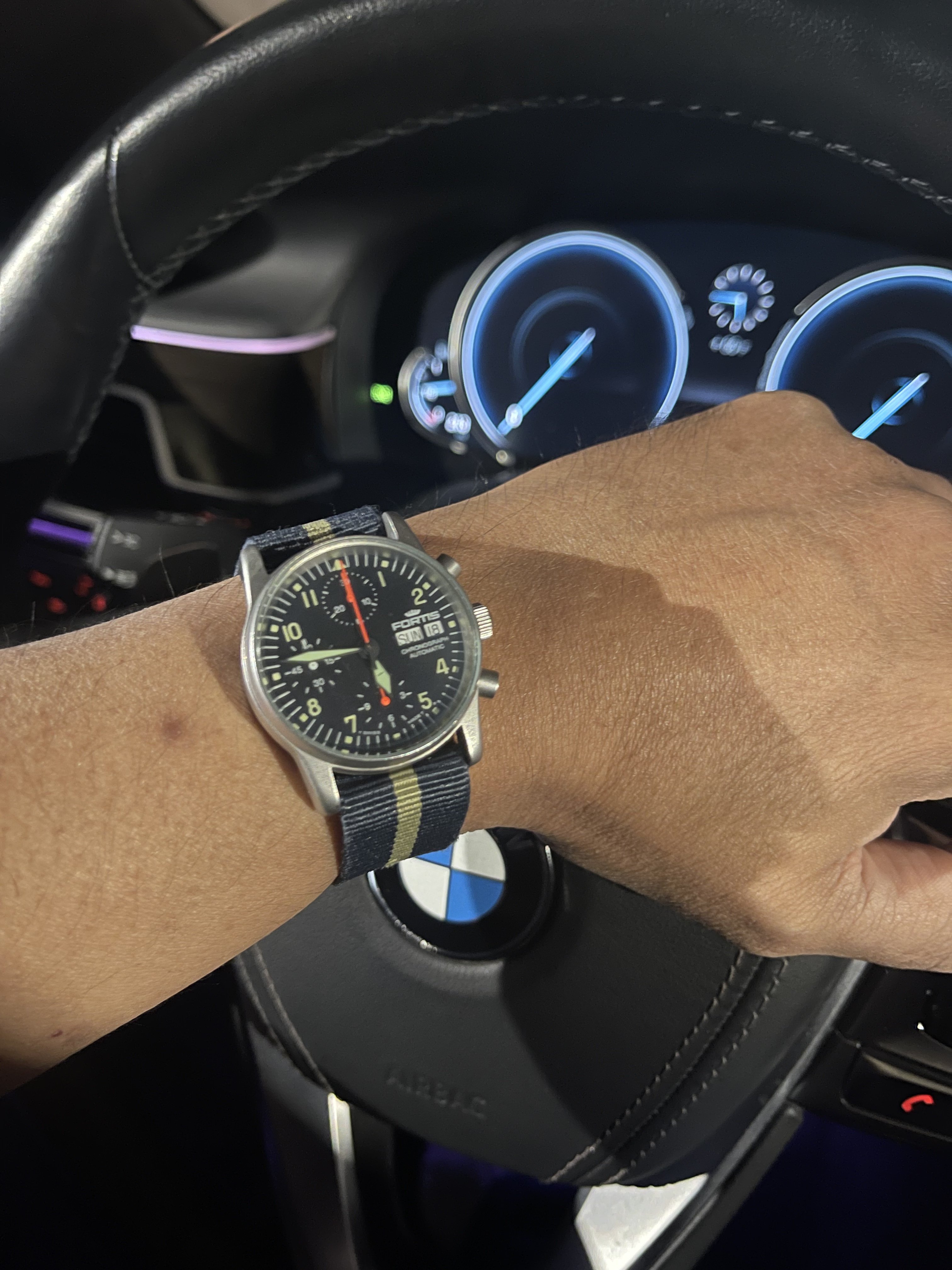 This one. My 32-year old Rolex Oyster Date- Just, calibre 3135. Finished servicing this three days ago, and replacing the mainspring. I didn’t touch the regulators. Set to time, and dialling it in begins. This is the sixth time I have serviced this one in 32 years. Dialling this watch in is never a challenge. Right off the bench, it is 3 seconds slow in three days. I’ll wear it for a week and then decide if I want to regulate it.