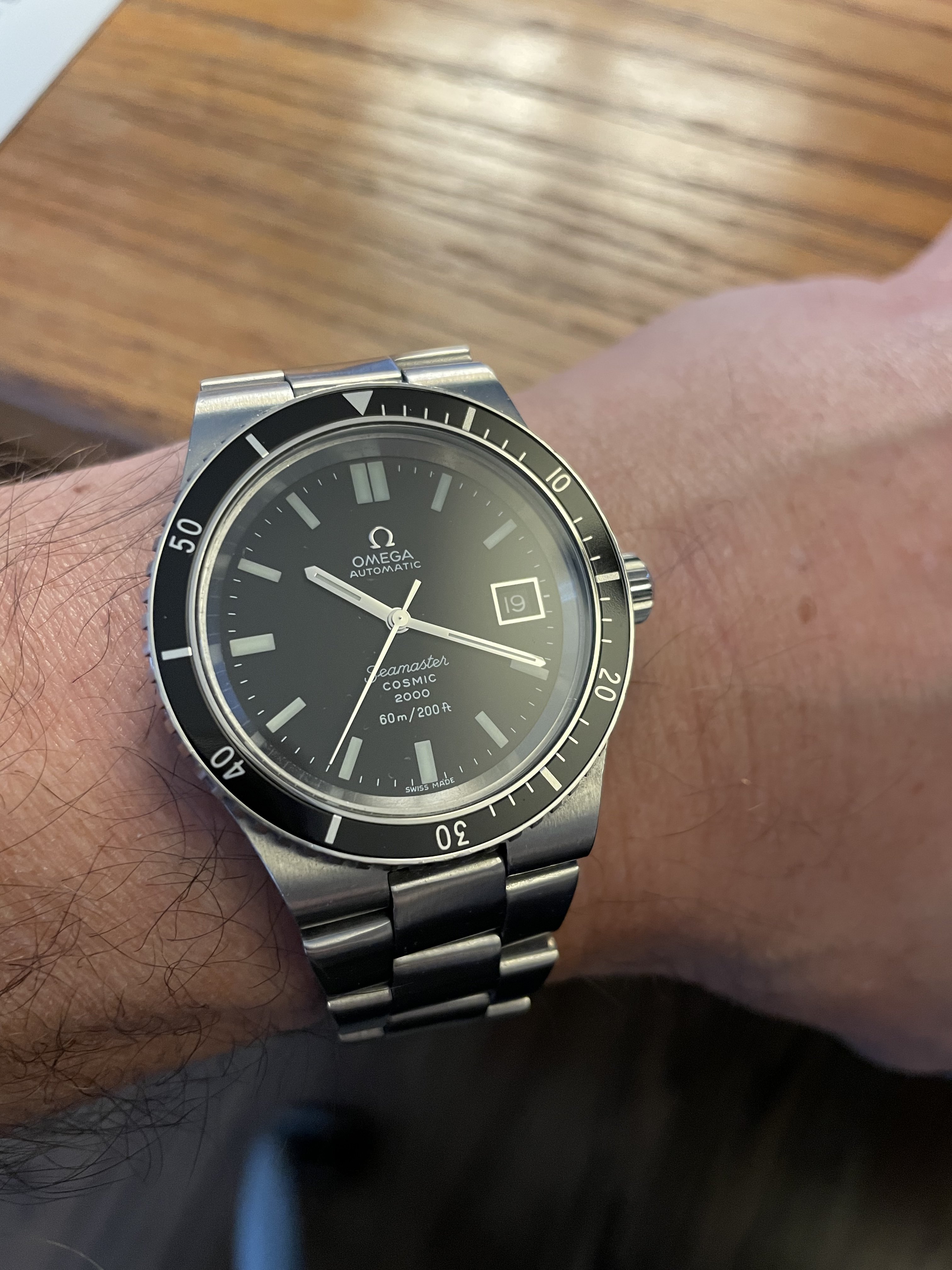 Posts 1,182 Likes 15,818 Mpnunes ·Oct 19, 2021 Omega Cosmic Diver finally back on wrist after a bracelet snafu. Great to have it back!
