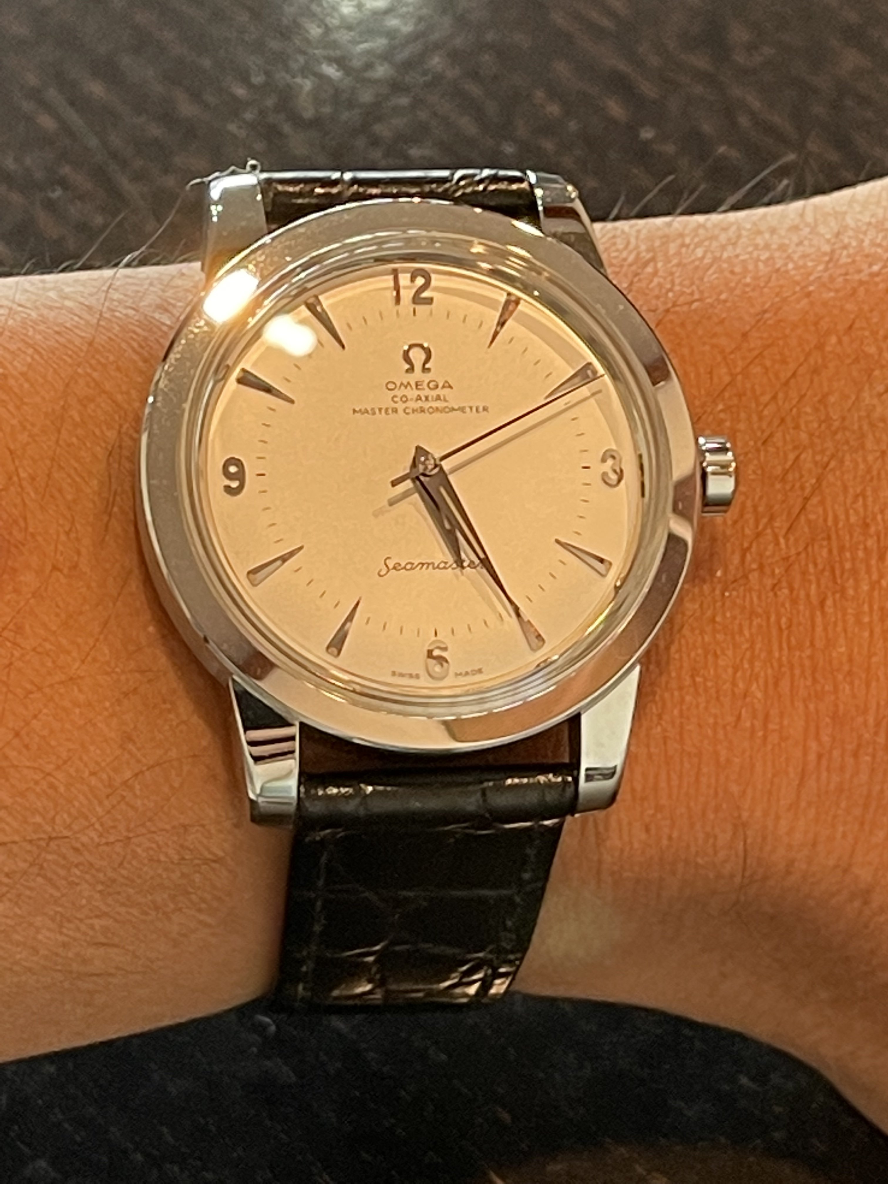 "Winning" this at a local auction house a couple of days ago. Thought it might be a nice Christmas gift for my wife - but if she does not like it - I can always keep it for myself... A 1998 (tritium), 38mm, Cartier Pasha, full set. Gerald Genta design. Will get a service before it is wrapped for Christmas. It has a very good quality bracelet but I foresee it ending up on a nice leather strap.