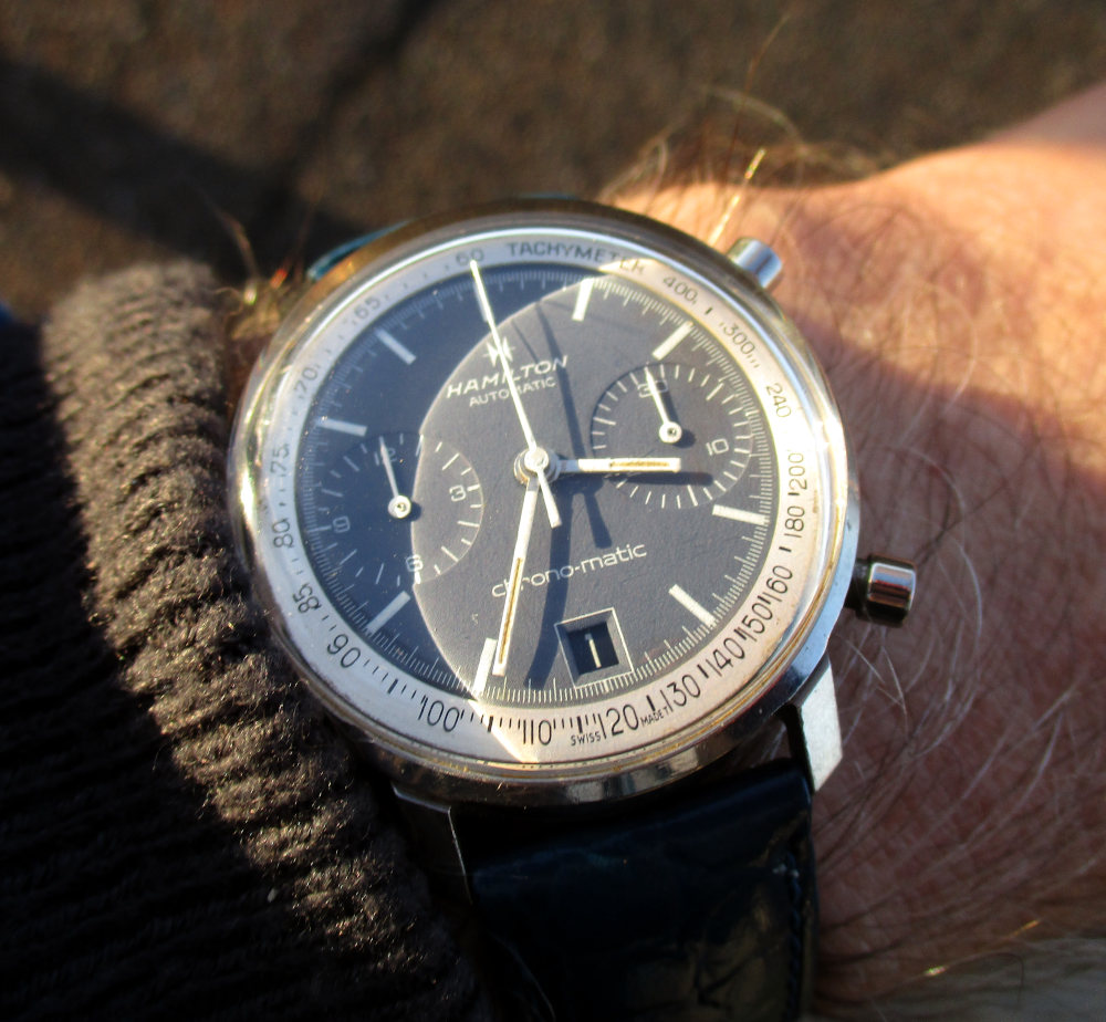 I also have an “Everest”. A Hamilton Everest Electric, from 1958. Don’t wear it much. Designed by Richard Arbib who worked with Harley Earl of General Motors. Together, they put the fins on the 1948 Cadillac. Arbib had a penchant for unusual design, and that is why Hamilton hired him to design their far out Electric Hamilton’s of the mid 1950s. Another of his designs was the Ventura.