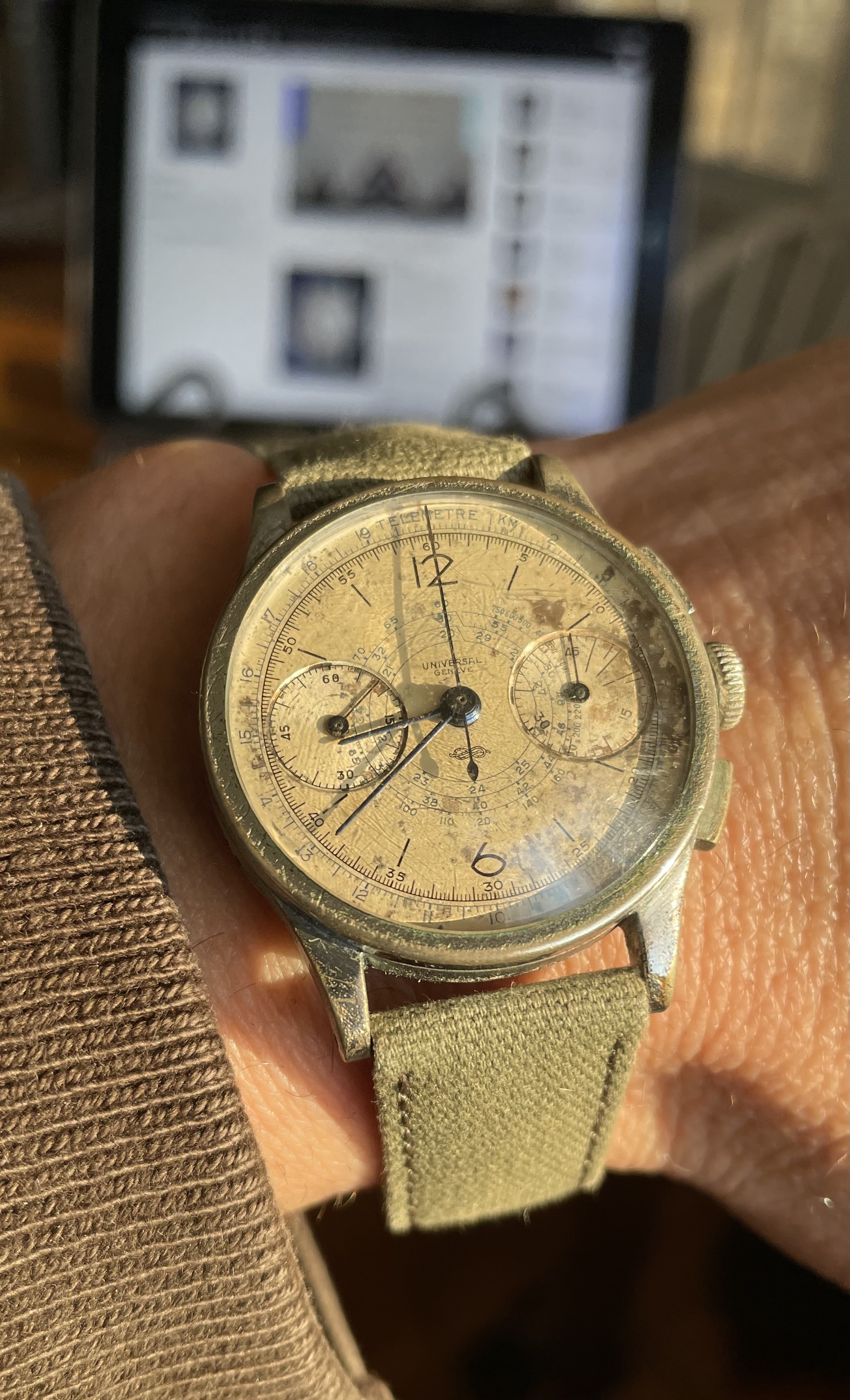 Recent pick-up from a local antique auction in Cape Town. Based on some preliminary research, I believe it’s an Omega CK 730 with a calibre T17 movement, though I haven’t yet opened the back. Mrs K has already staked a claim, so I don’t expect it will spend much time on my wrist.