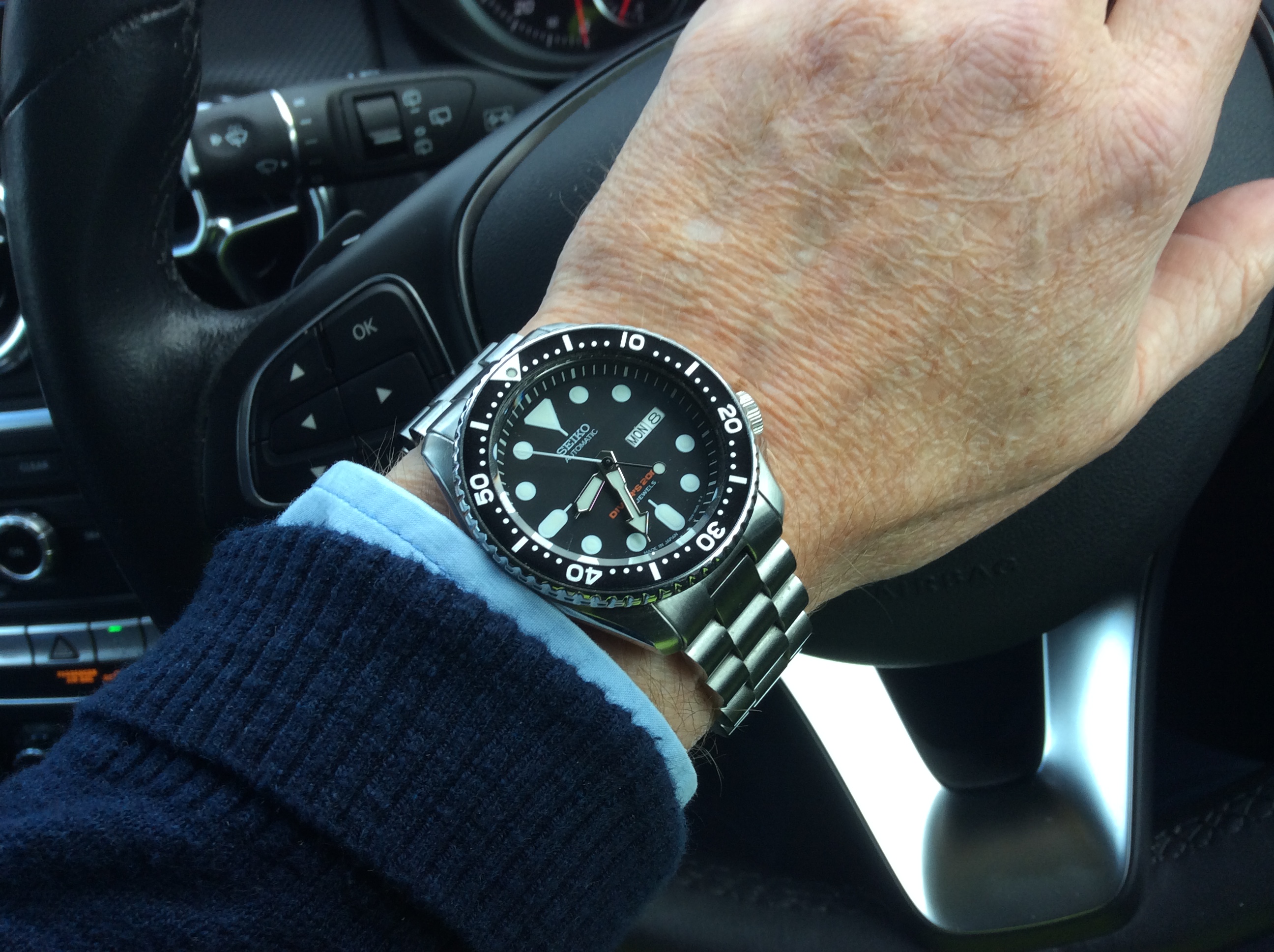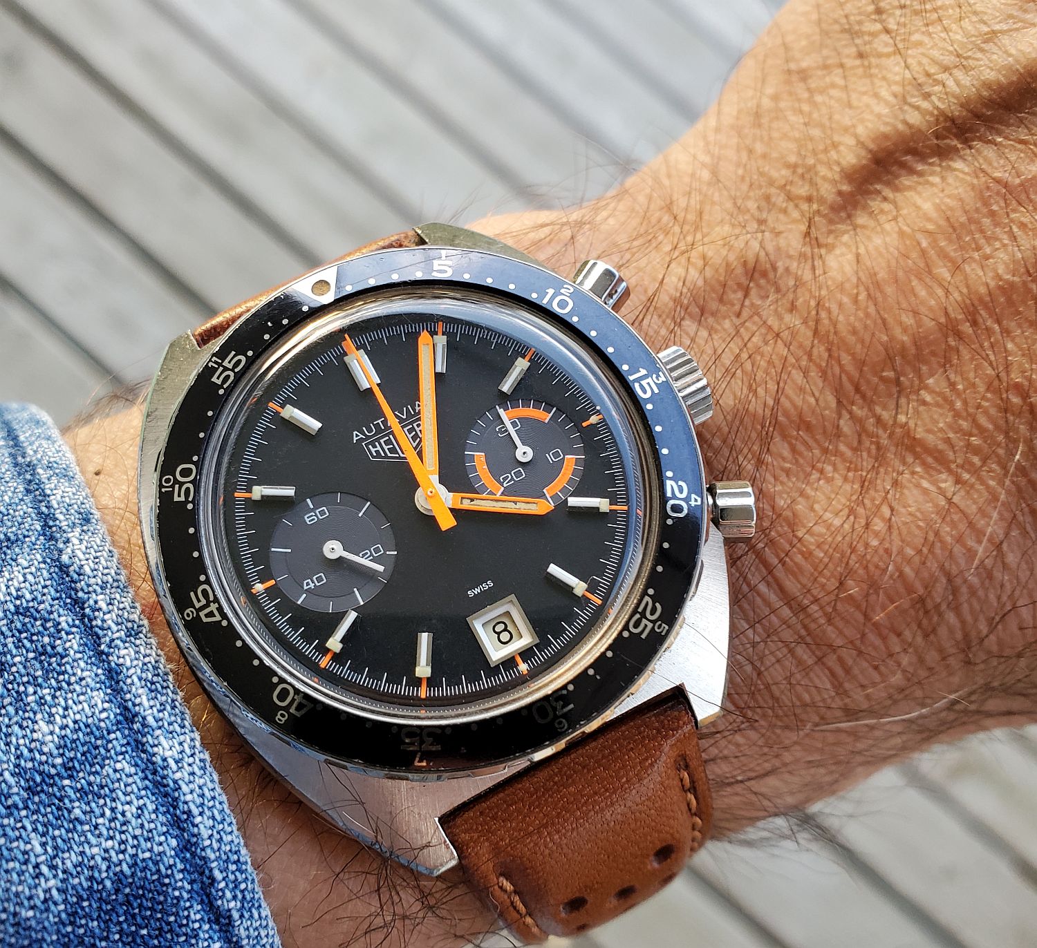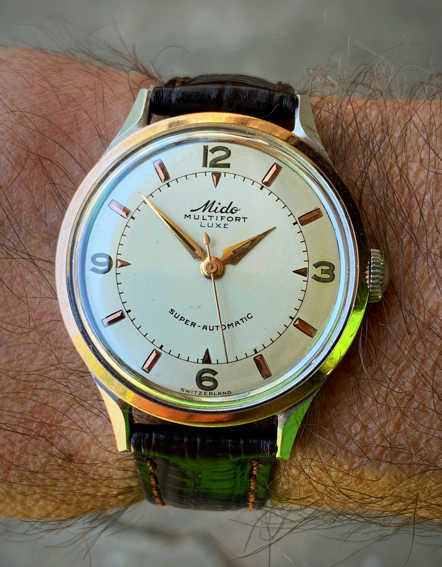 Still on my wrist. My 65 year old Gruen 23-jewel “Autowind” in a gold shell over steel case, German-made Durowe movement. Offered this for sale many years ago, and I don’t remember if I didn’t try hard enough, or whether nobody was interested. This was before internet days. Yes! THAT long ago. I’m glad nobody bought it. I rather like it, and it is a good runner.