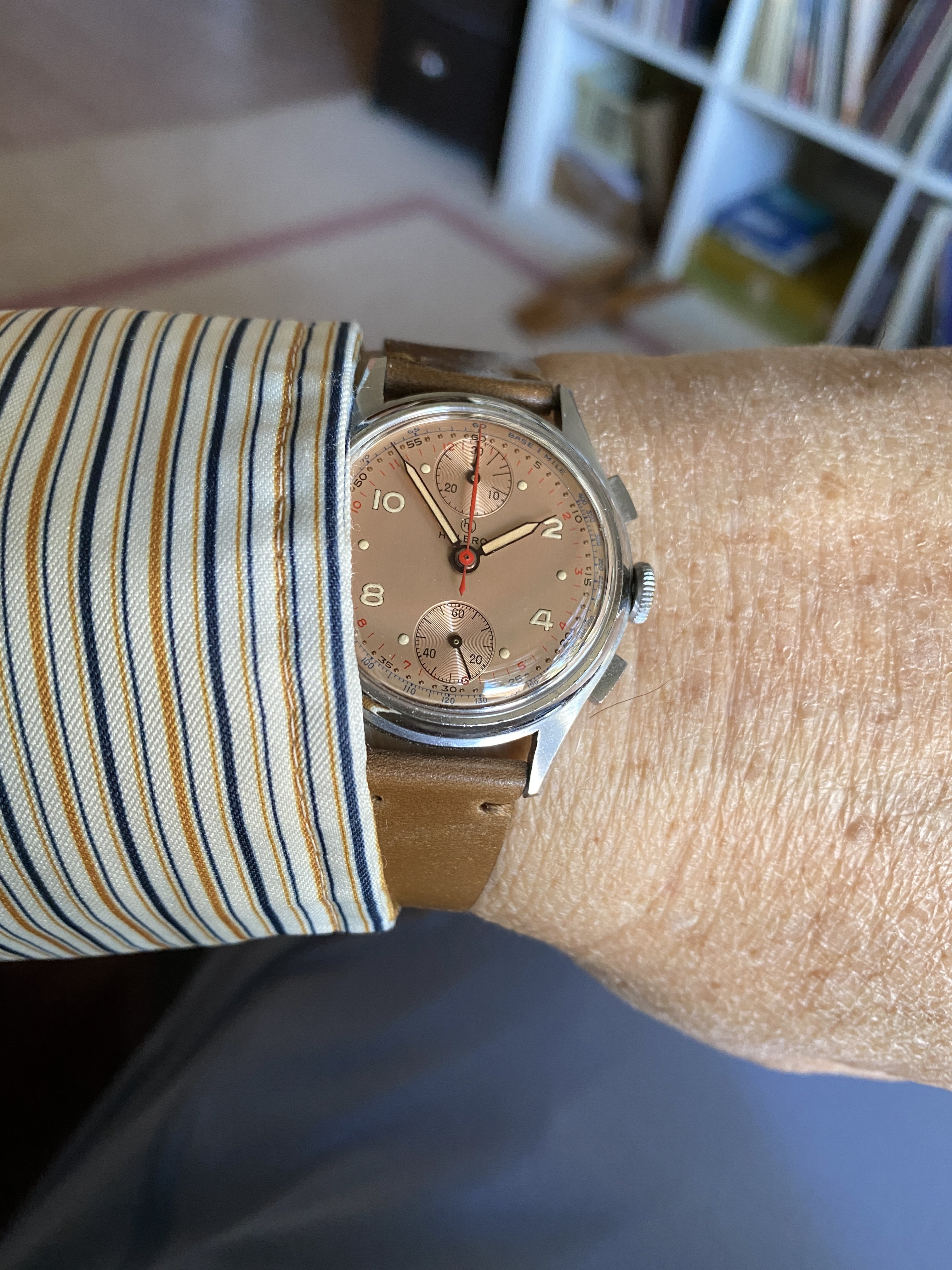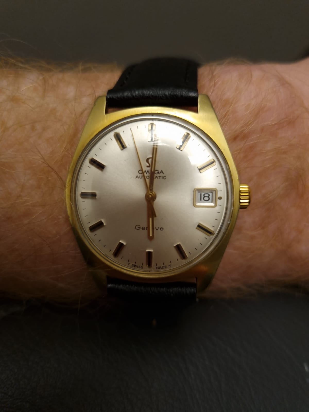 Beautiful Geneve. The early cursive Geneves are some of my favoritre Omega watches. Classic, beautiful designs. It's really a shame that Omega transitioned the Geneve to an entry level model and then abandoned it altogether. It's a lot easier to find a vintage pie pan Constellation in good shape than it is to find a 1950's Geneve in similar condition.