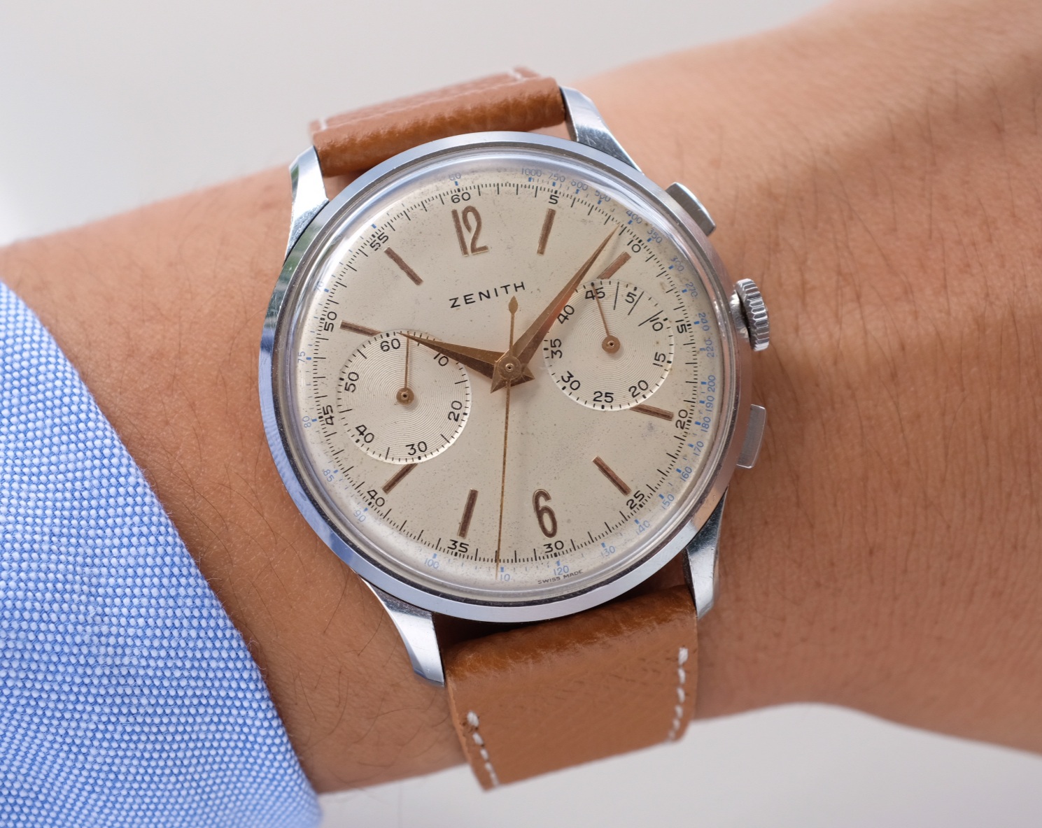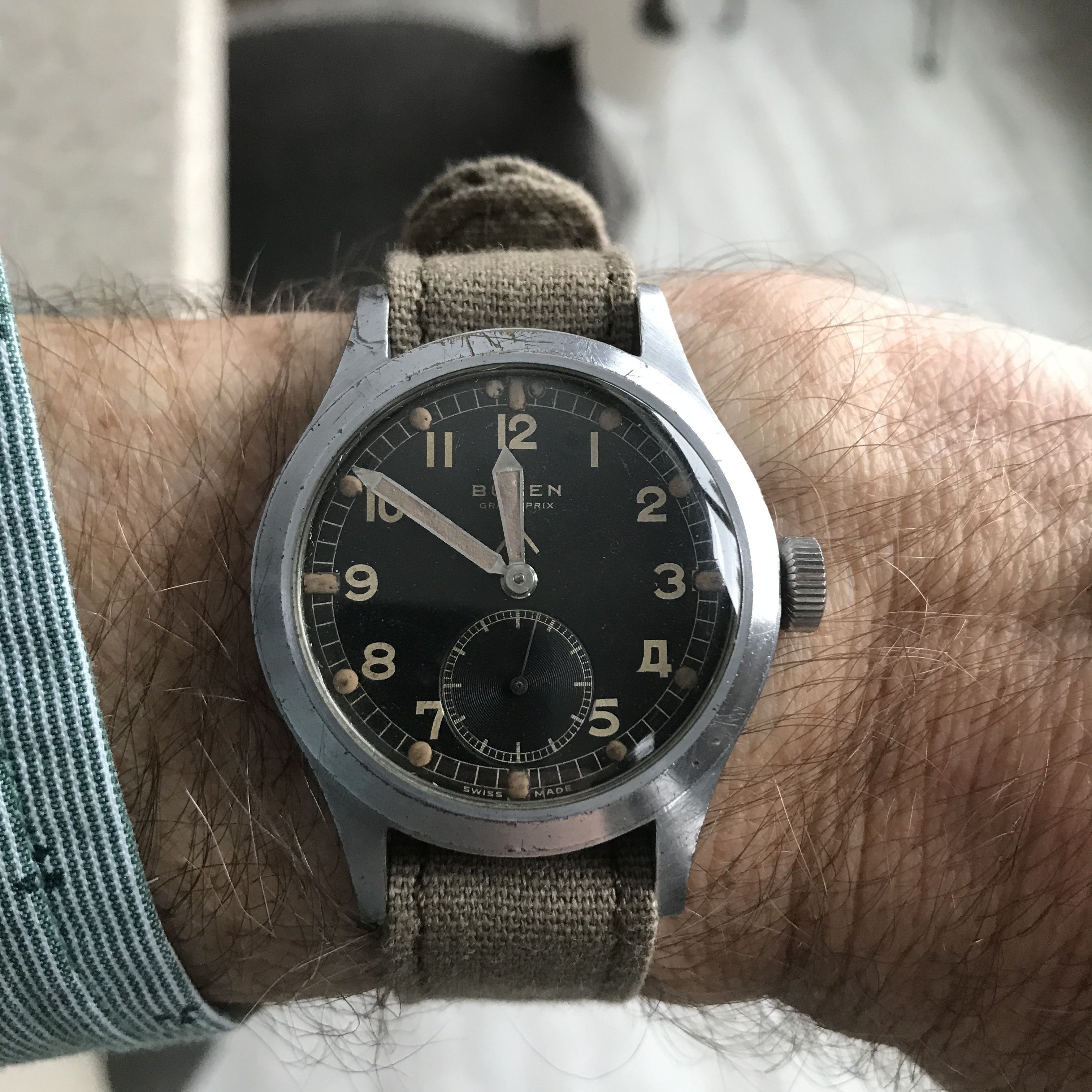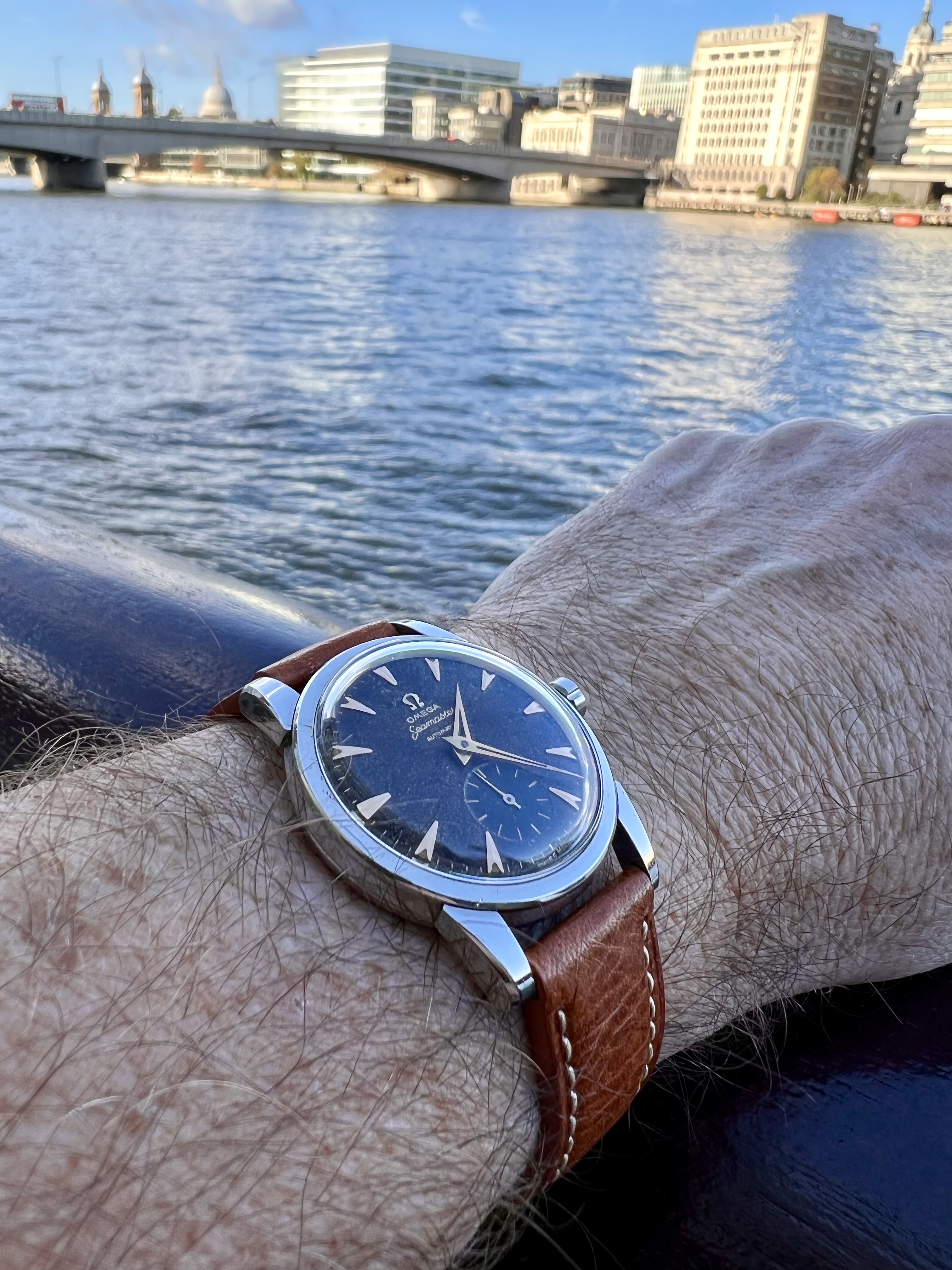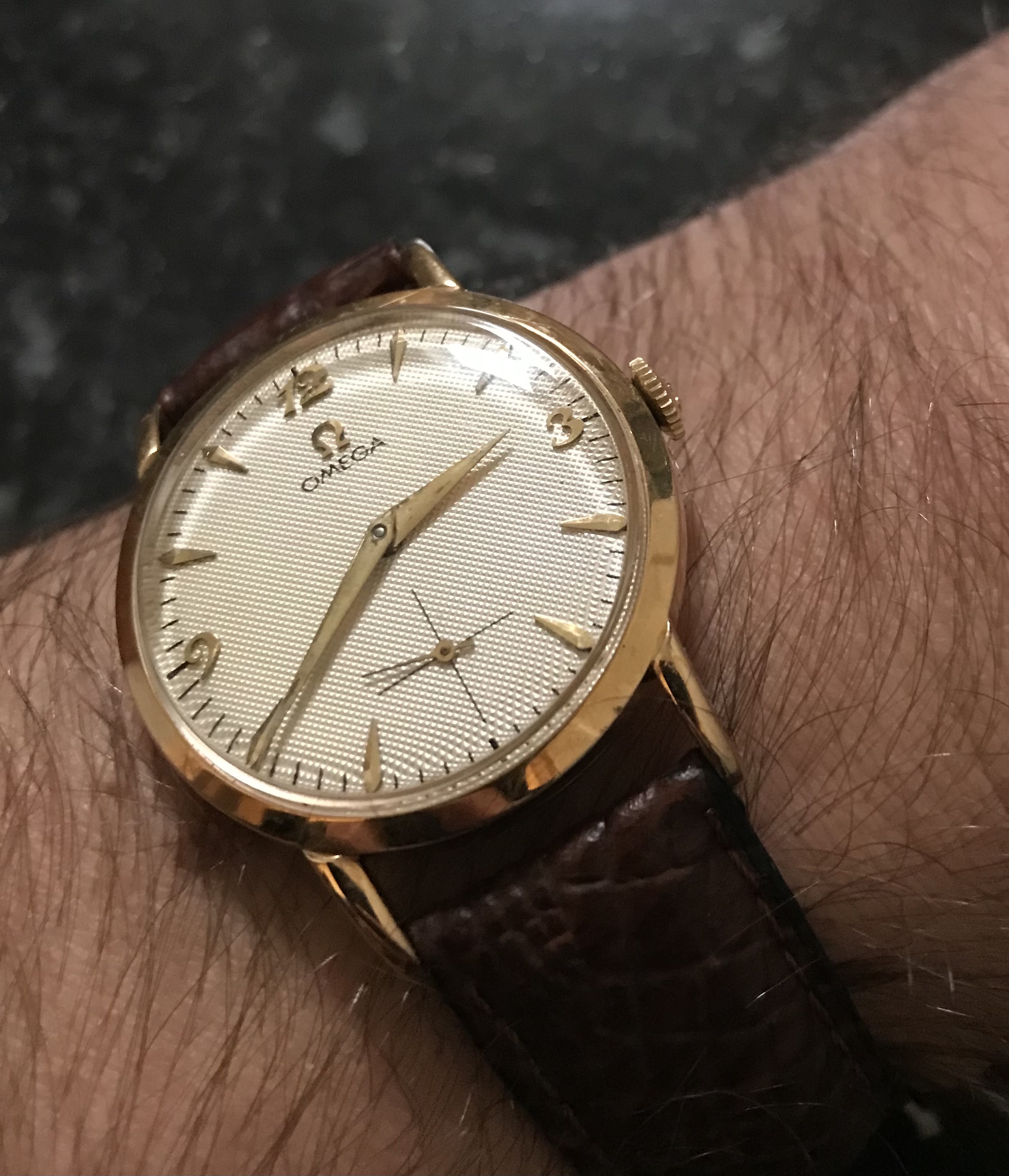 Posts 890 Likes 1,707 paddymoran ·Nov 17, 2021 1955 Omega manual movement - lovely gold and linen combo but just too small at 32mm. Think my son would prefer his Garmin 😀