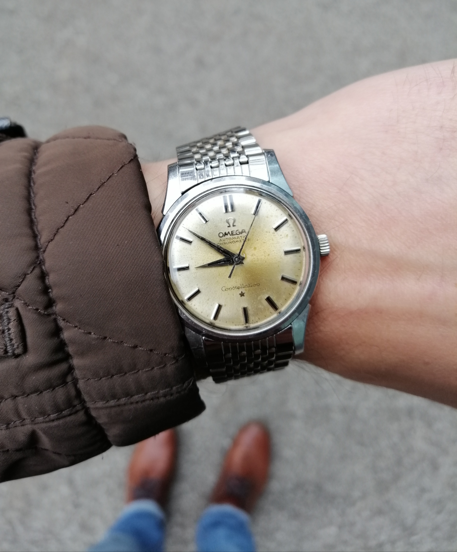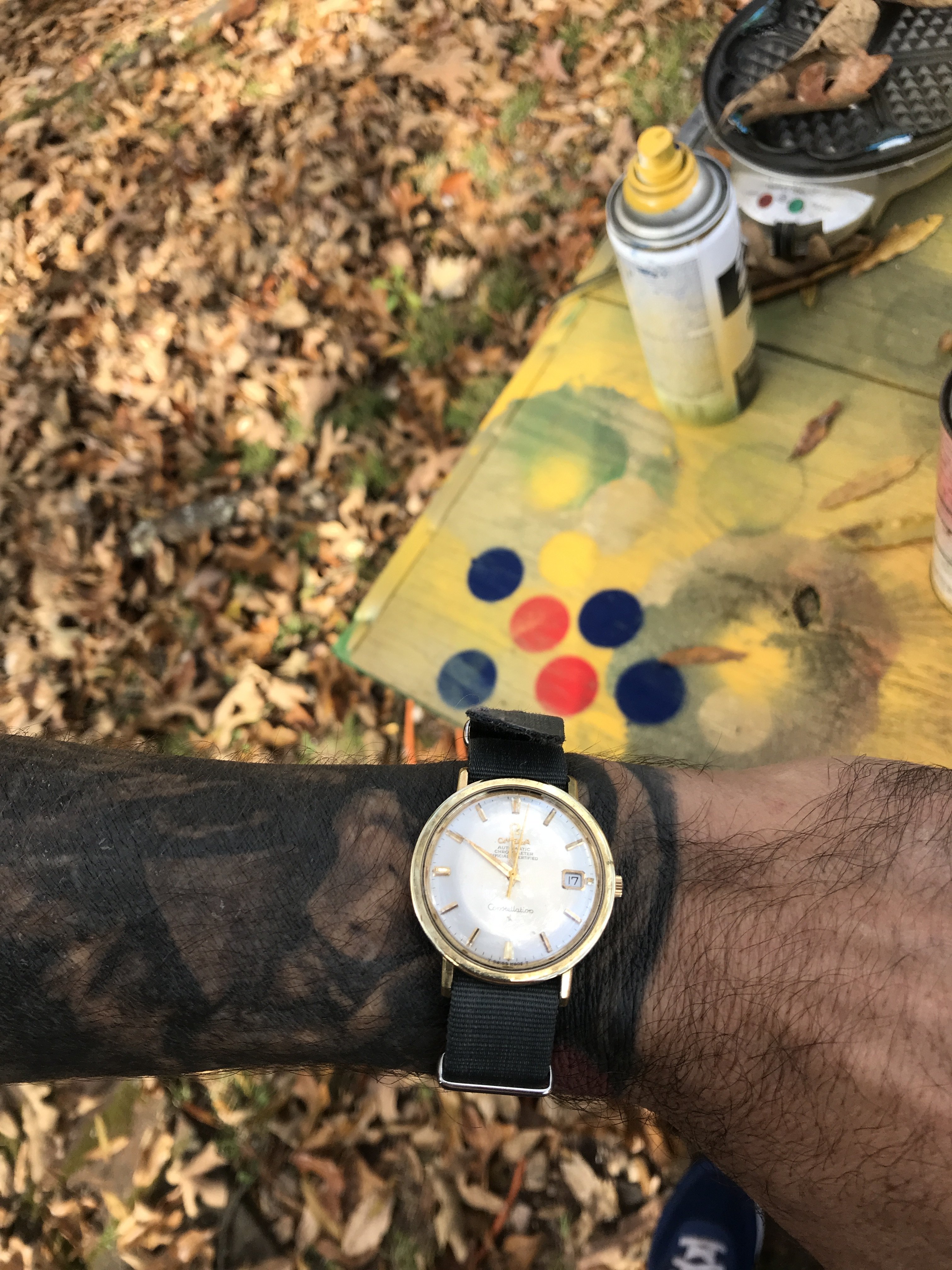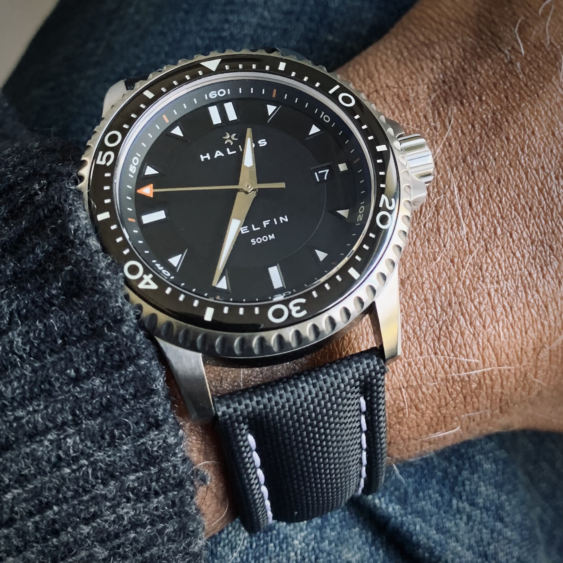 I don’t wear this one that often because I’ve had trouble matching it with a strap I like. I think this brown leather with orange stitching may just be okay.