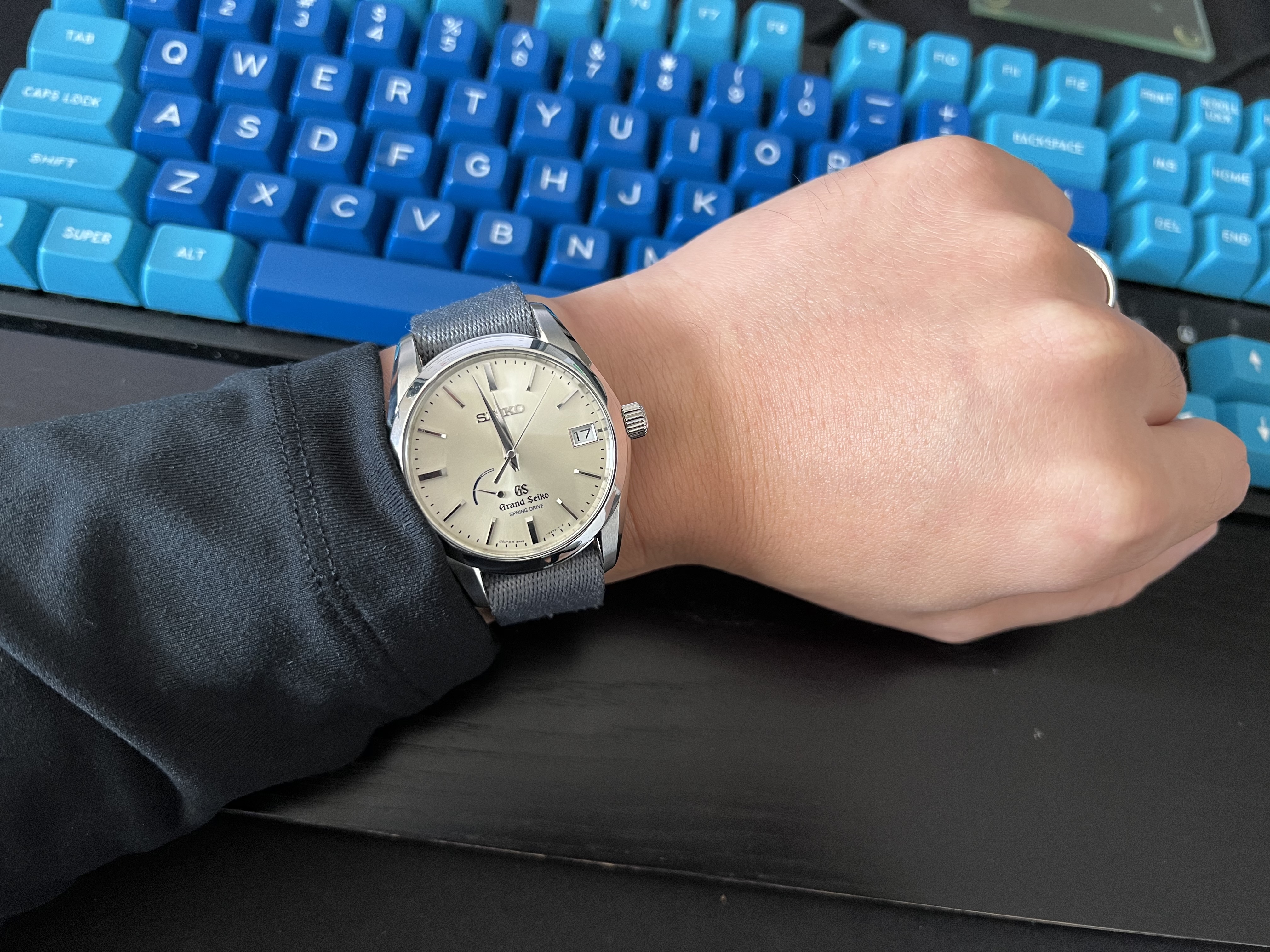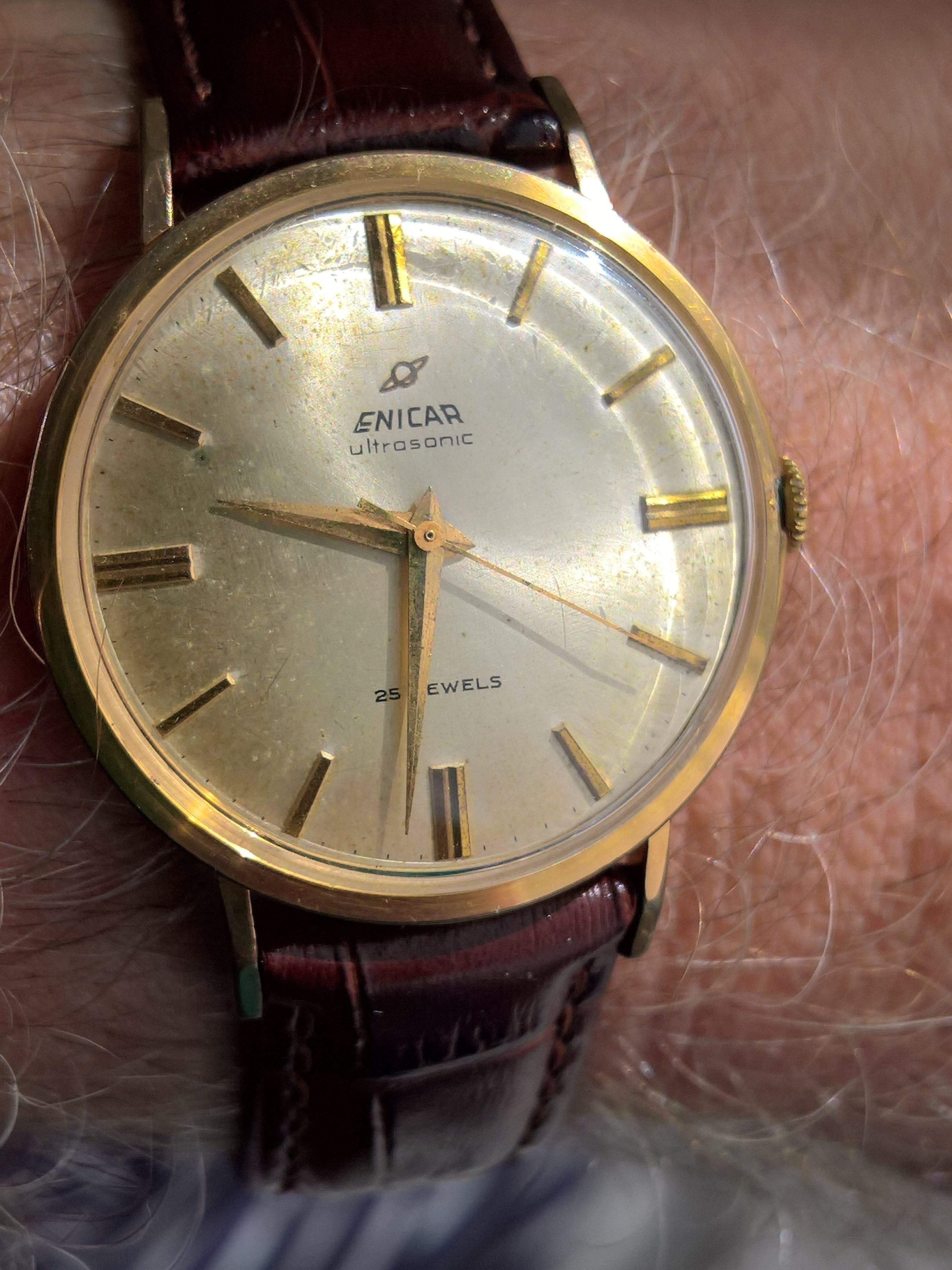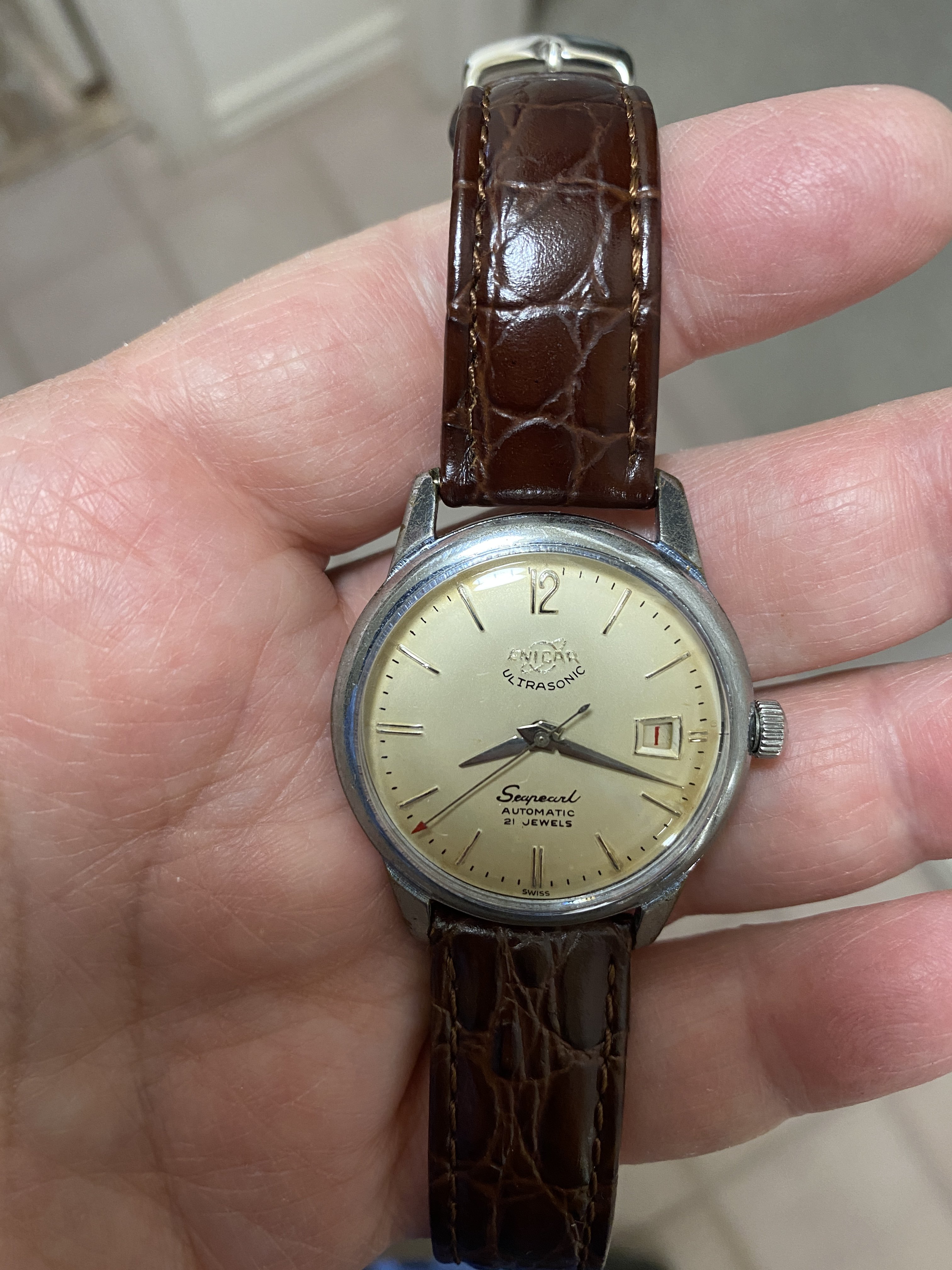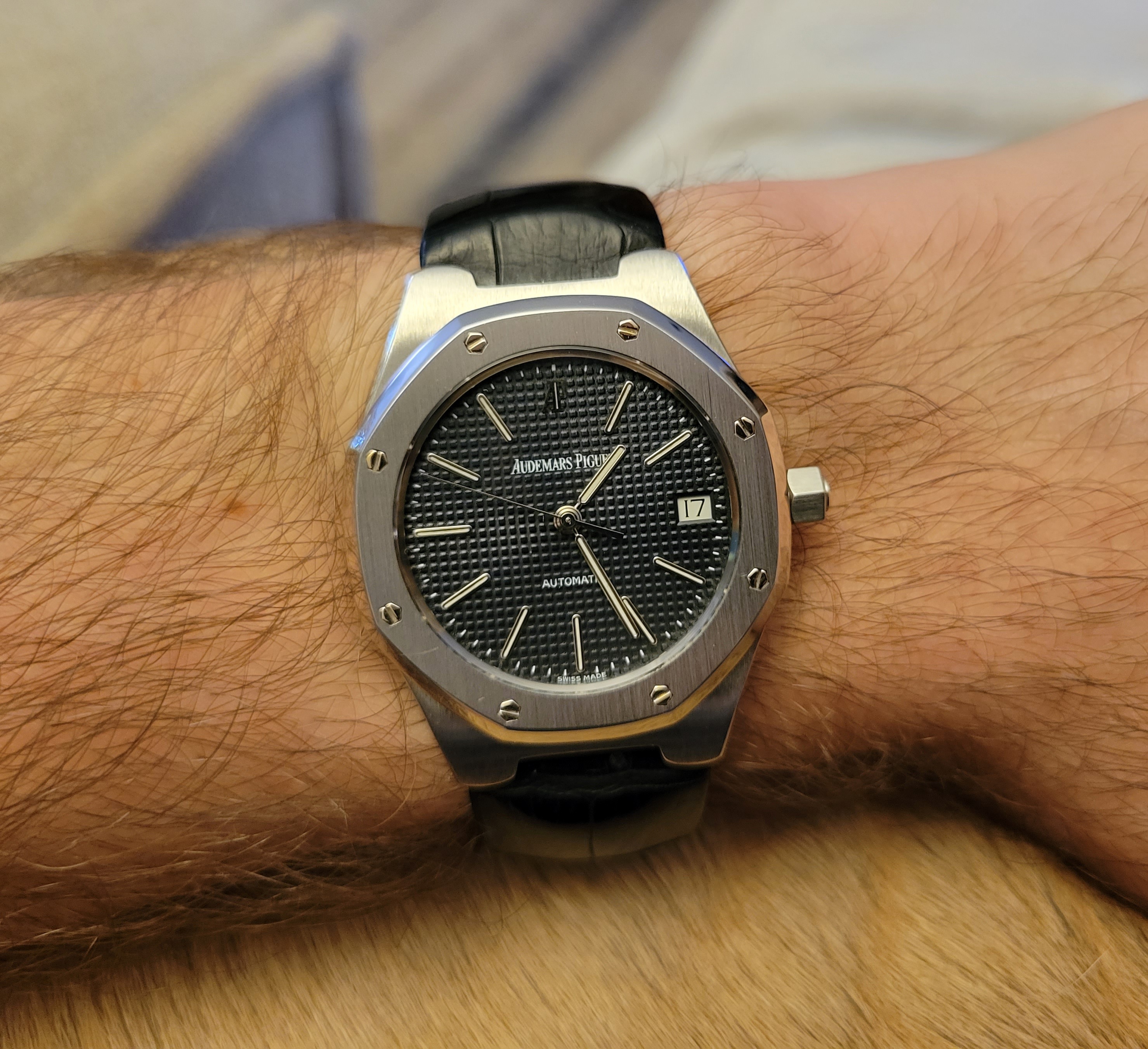 I don’t wear this one that often because I’ve had trouble matching it with a strap I like. I think this brown leather with orange stitching may just be okay.