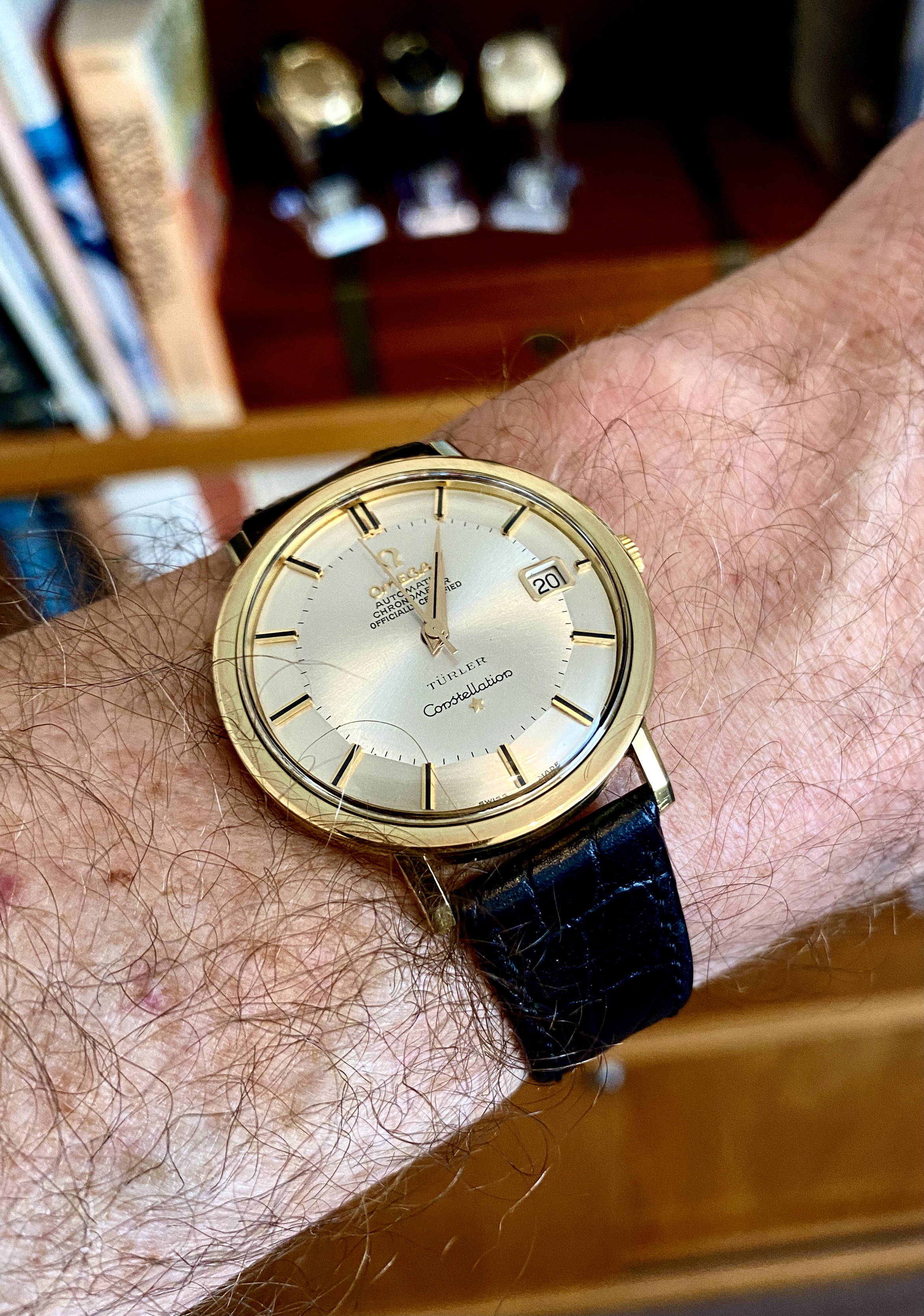 I am giving this old thing a run today - 1963 vintage 36mm gold capped case 168004-63 SC in excellent condition. I have not worn it for a long time, and am enjoying it sitting on my wrist instead of my daily beater.