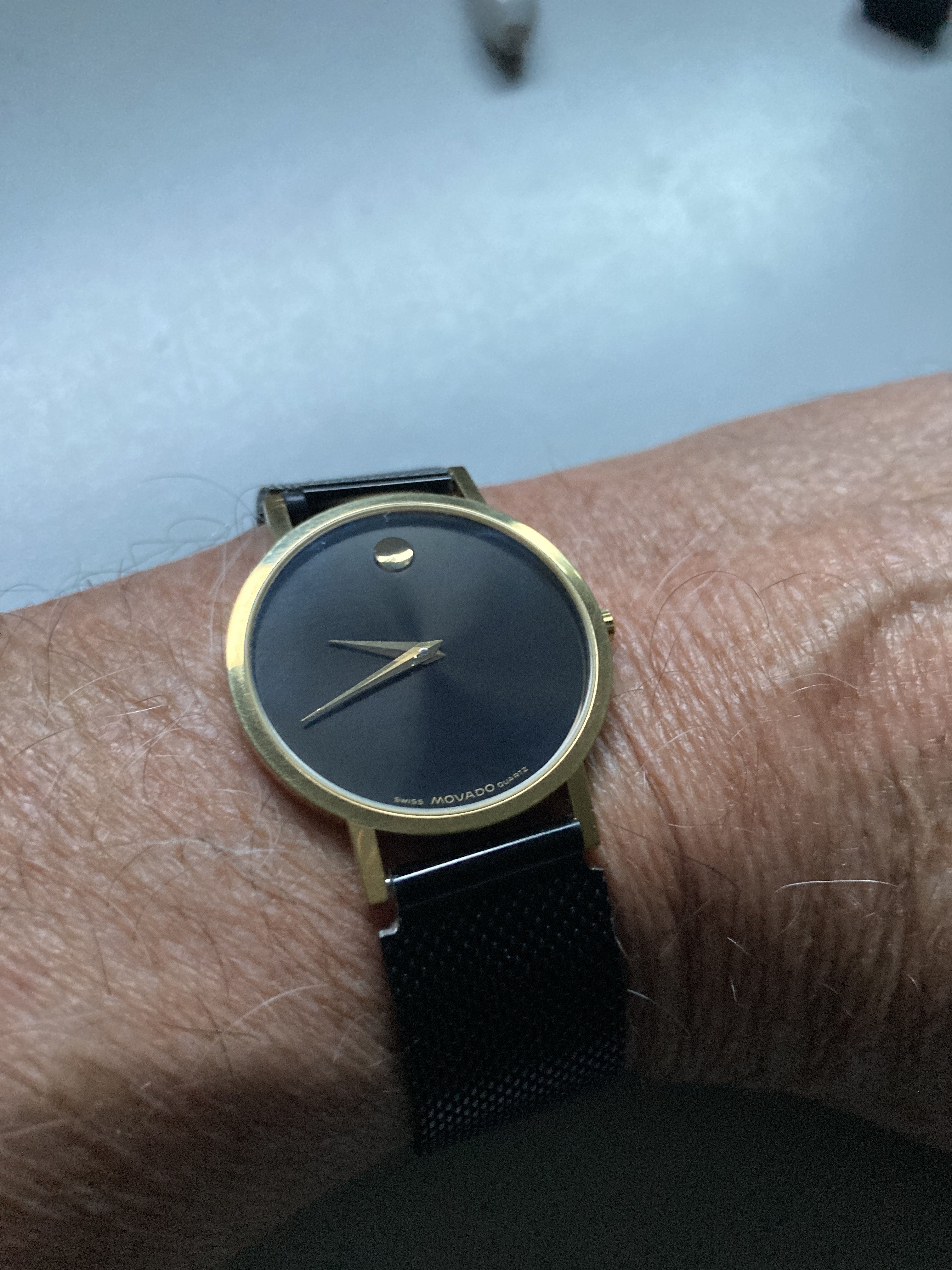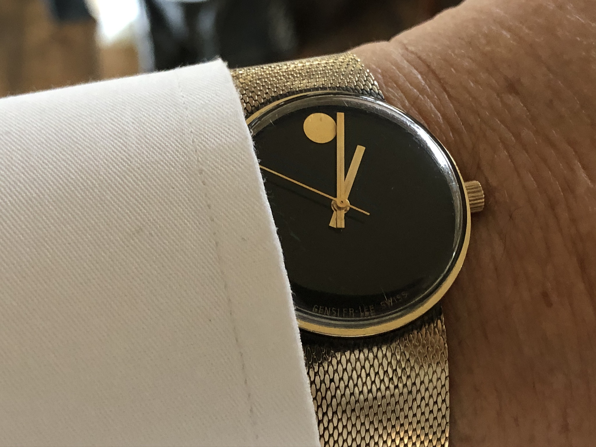 “Movado museum watch” fun facts: what has commonly come to be known as the “Movado museum watch” - i.e., plain black dial with a single gold disc marker at 12:00 representing the sun at high noon - was designed by American industrial designer Nathan George Horwitt in 1947; Horwitt created four prototypes using Vacheron & Constantin-LeCoultre watches as their base; the cases, disc marker and hands of the prototypes were “silver” colored, rather than the more commonly seen “gold”; Horwitt shopped his design around to numerous watch manufacturers hoping for a licensing agreement, but found no takers; in 1948, Movado began producing watches based on Horwitt’s design, but without licensing the design; Horwitt sued Movado; Movado settled the suit in 1975 for $29,000, approximately $125,000 in today’s money; three of the four prototypes created by Horwitt are in museums, the fourth is held by the family.