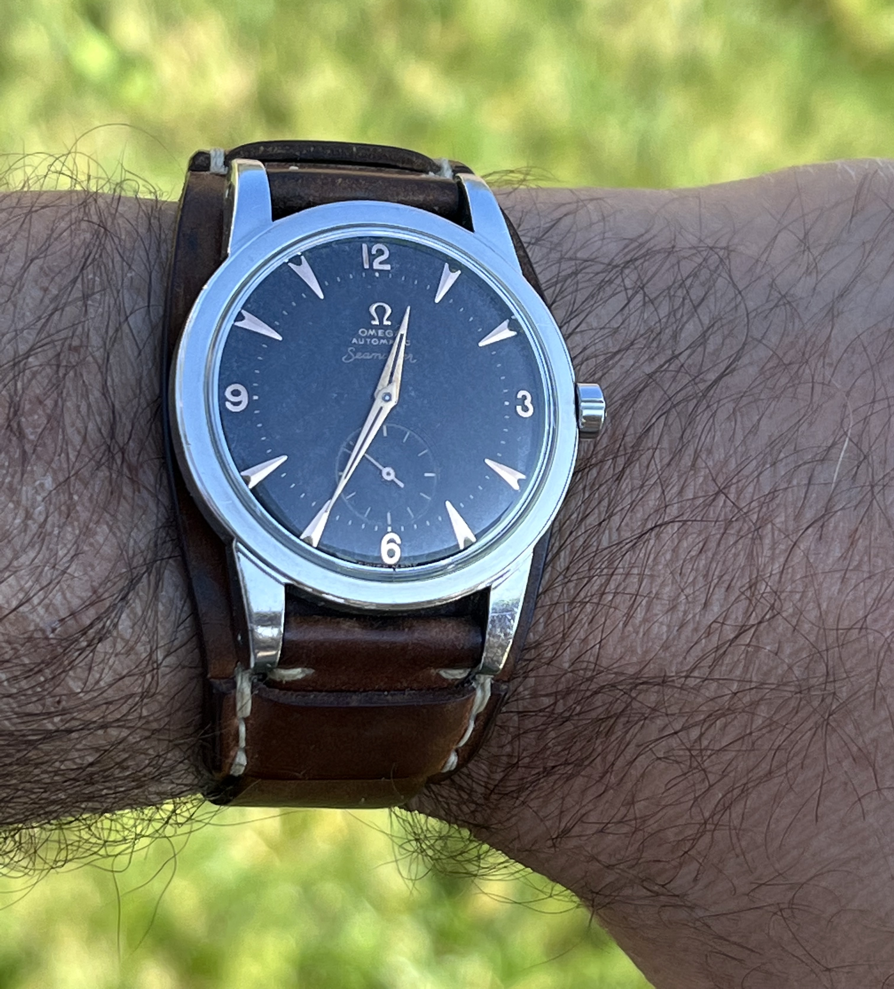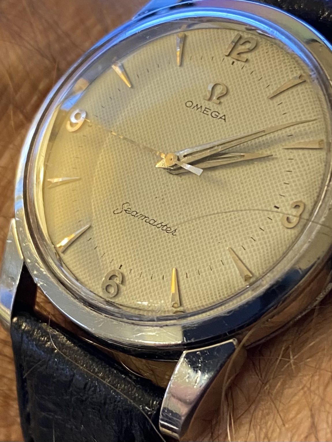 New arrival. 1956 Seamaster 2759/2761 with a really nice honeycomb dial. A big thank you to OF member MtV for his help in finding and assessing this one. The guy is a class act and knows his subject. As part of this rehab project, I’m looking for an authentic replacement second hand, hopefully NOS. Anyone have one to sell or know of a possible source? I also wouldn’t say no to a complete handset at the right price. 😀