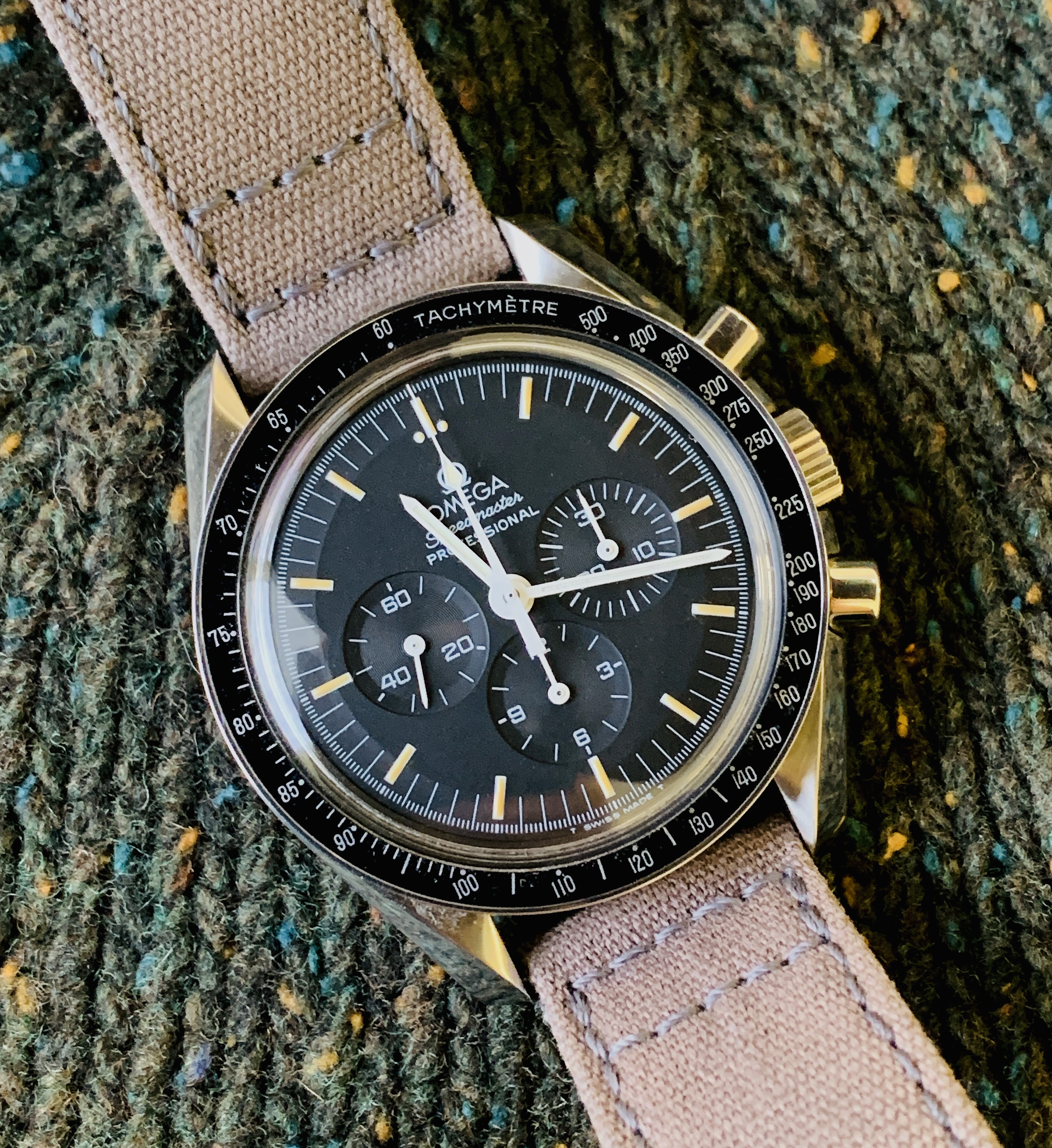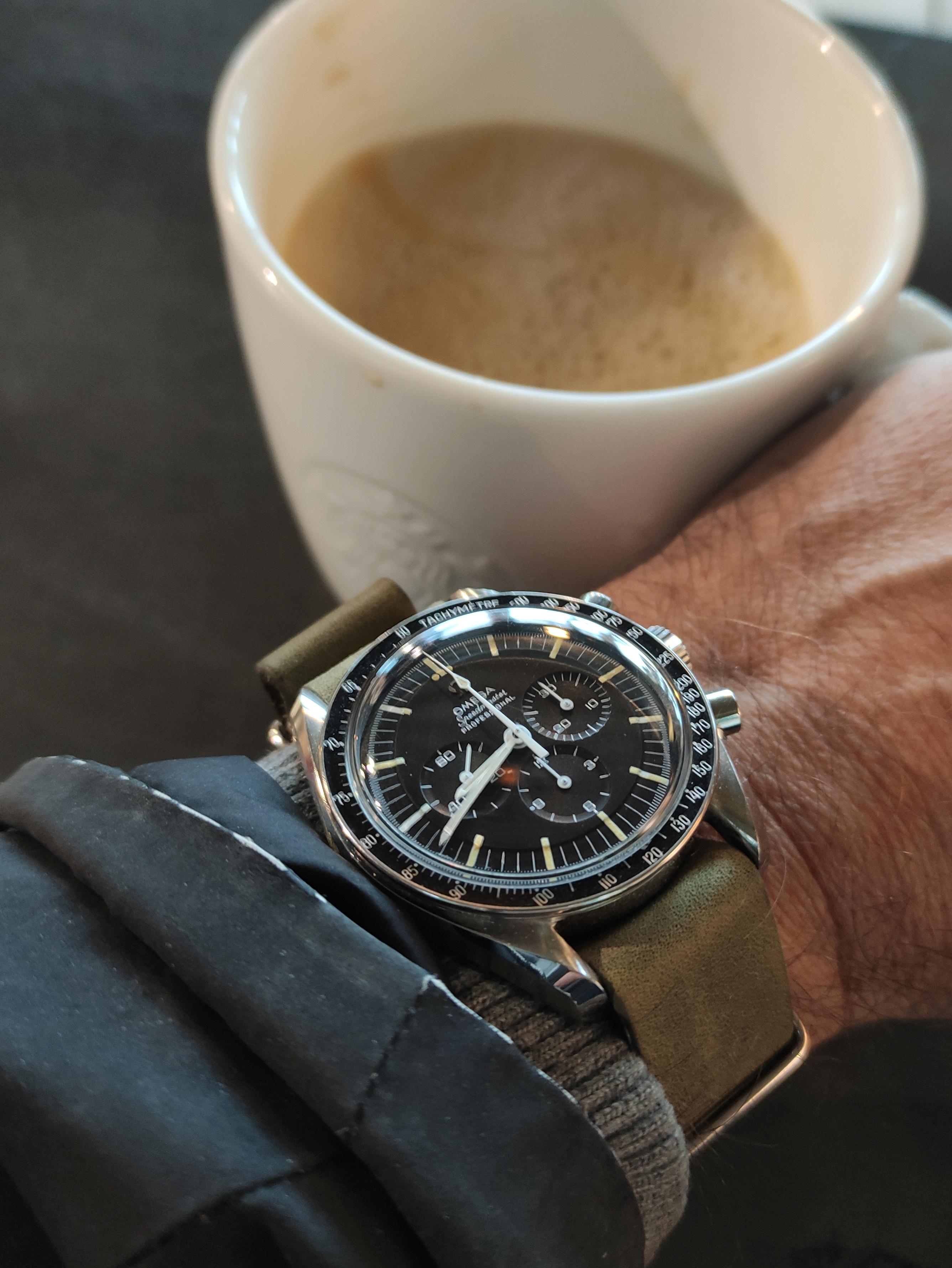 Posts 5,270 Likes 78,647 Barking mad 路Dec 1, 2021路Prolific Speedmaster Hoarder Picked this little gem up earlier today馃榾 Came on a Nato strap. I am not a fan of Nato straps, so a quick change was necessary. I think it is still within keeping of the genre and hasn't left my wrist since.. Morning coffee..