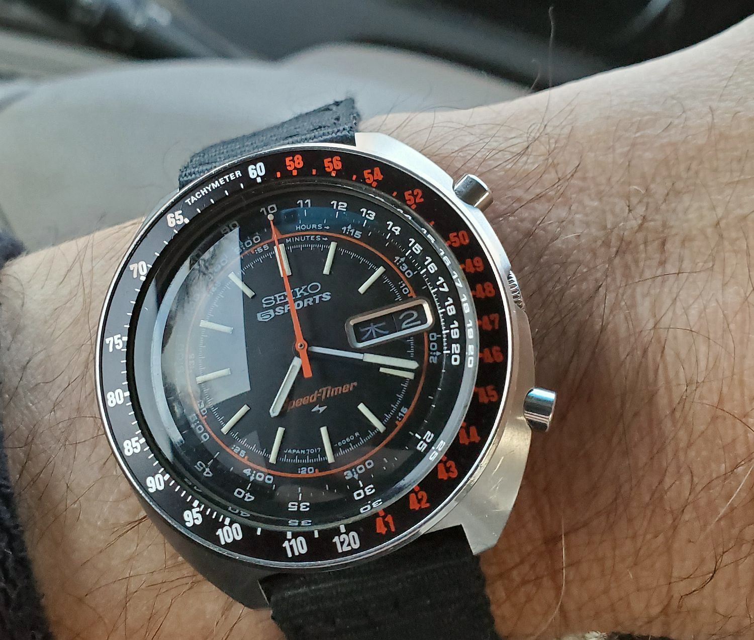 New vintage Seiko arrival here too! The 7071-6050 Rallymeter. My first Daini-Seikosha (as opposed to Suwa-Seikosha). With its inner rotating scale for calculating rally speeds/distances, and lack of a minute totalizer, it was a quirky alternative to the Suwa 6139/6138 chronographs. This one is from 1971, so 50 years old...YaY!